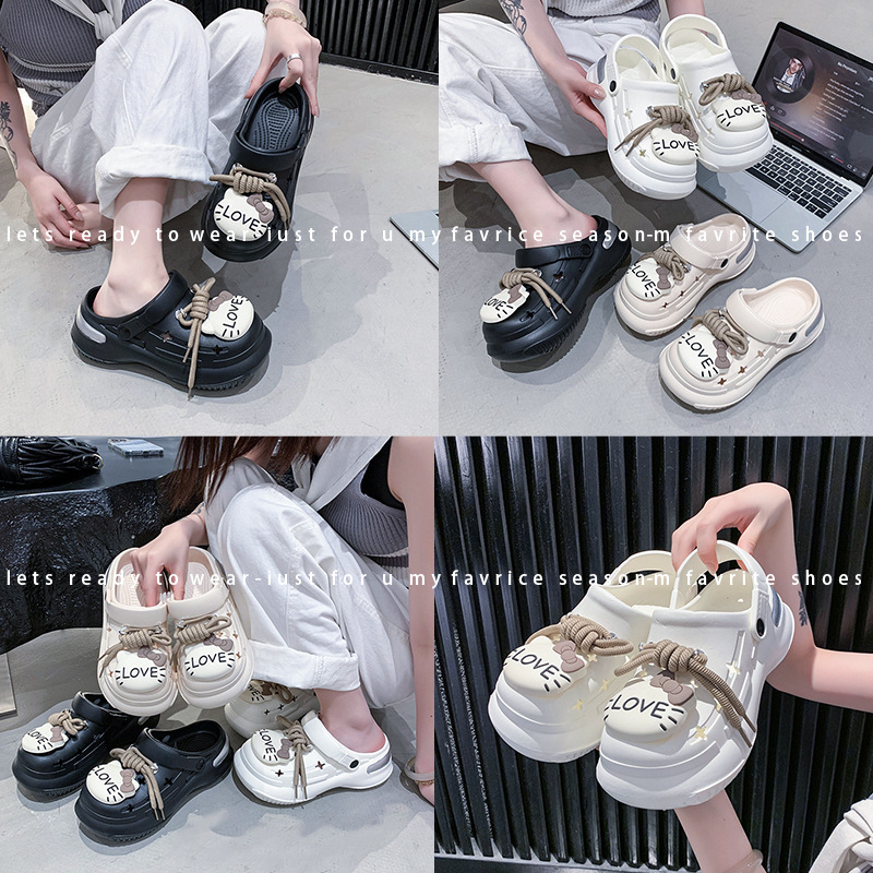 여성을위한 귀여운 두꺼운 밑창 에바 나막신 새로운 여름 캐주얼 미끄럼 방지 비치 발가락 슬리퍼 여성 도매스토어 가기