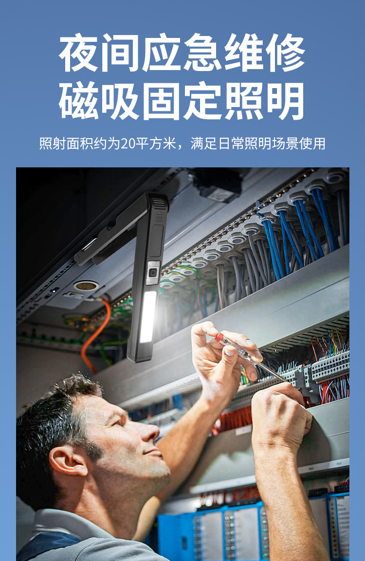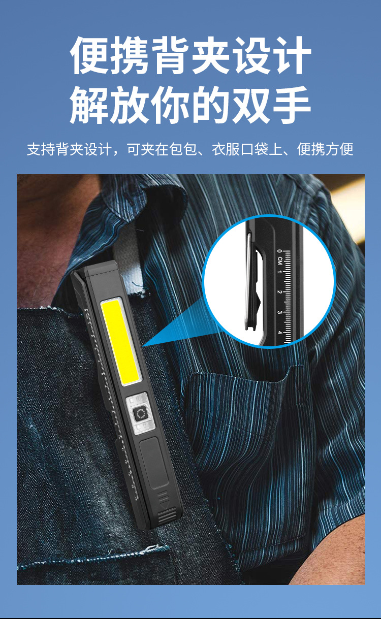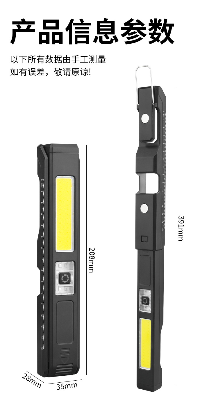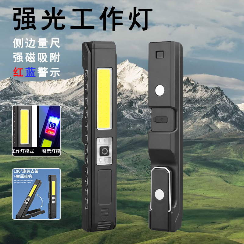 COB 다기능 작동 램프 자석 접히는 충전식 손전등 측정 통치자 빨간색과 파란색 경고등이있는 강한 빛 폭발성 빛스토어 가기