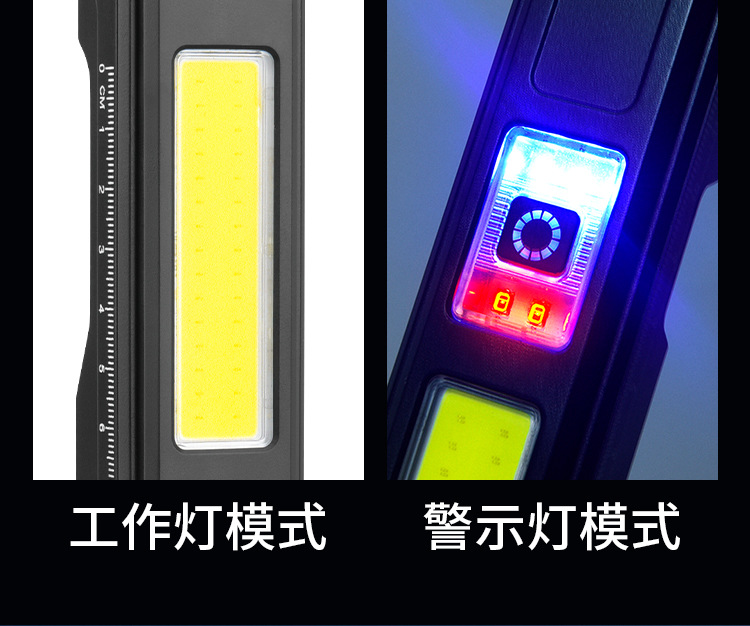 COB 다기능 작동 램프 자석 접히는 충전식 손전등 측정 통치자 빨간색과 파란색 경고등이있는 강한 빛 폭발성 빛