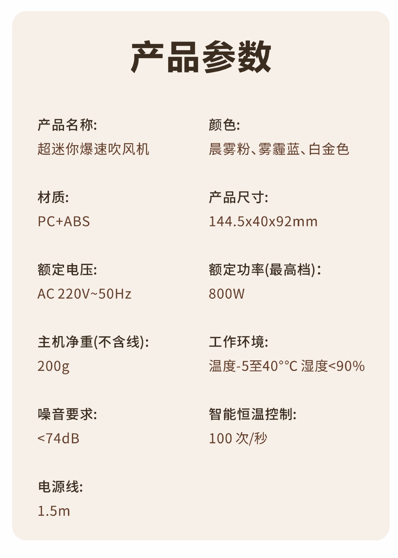 • 유럽 ​​표준: 미니 헤어드라이어 + 단일 에어 노즐