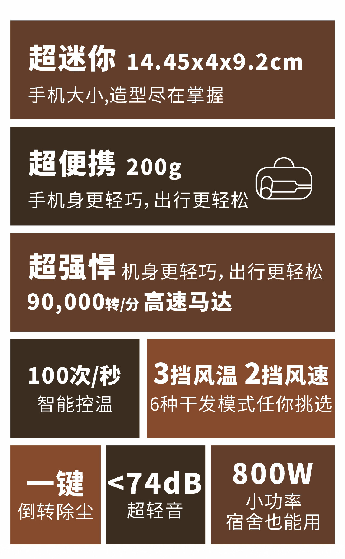 • 중간 크기: 미니 헤어드라이어 + 단일 에어 노즐