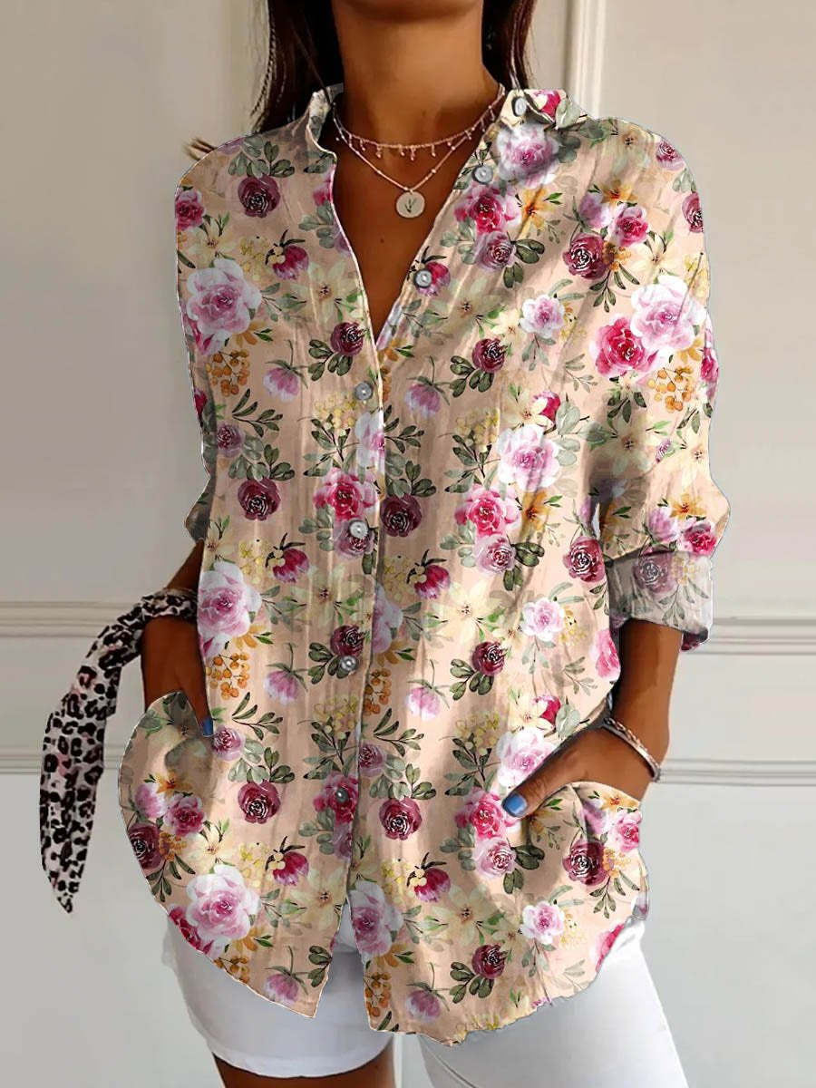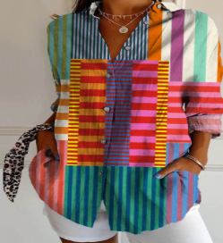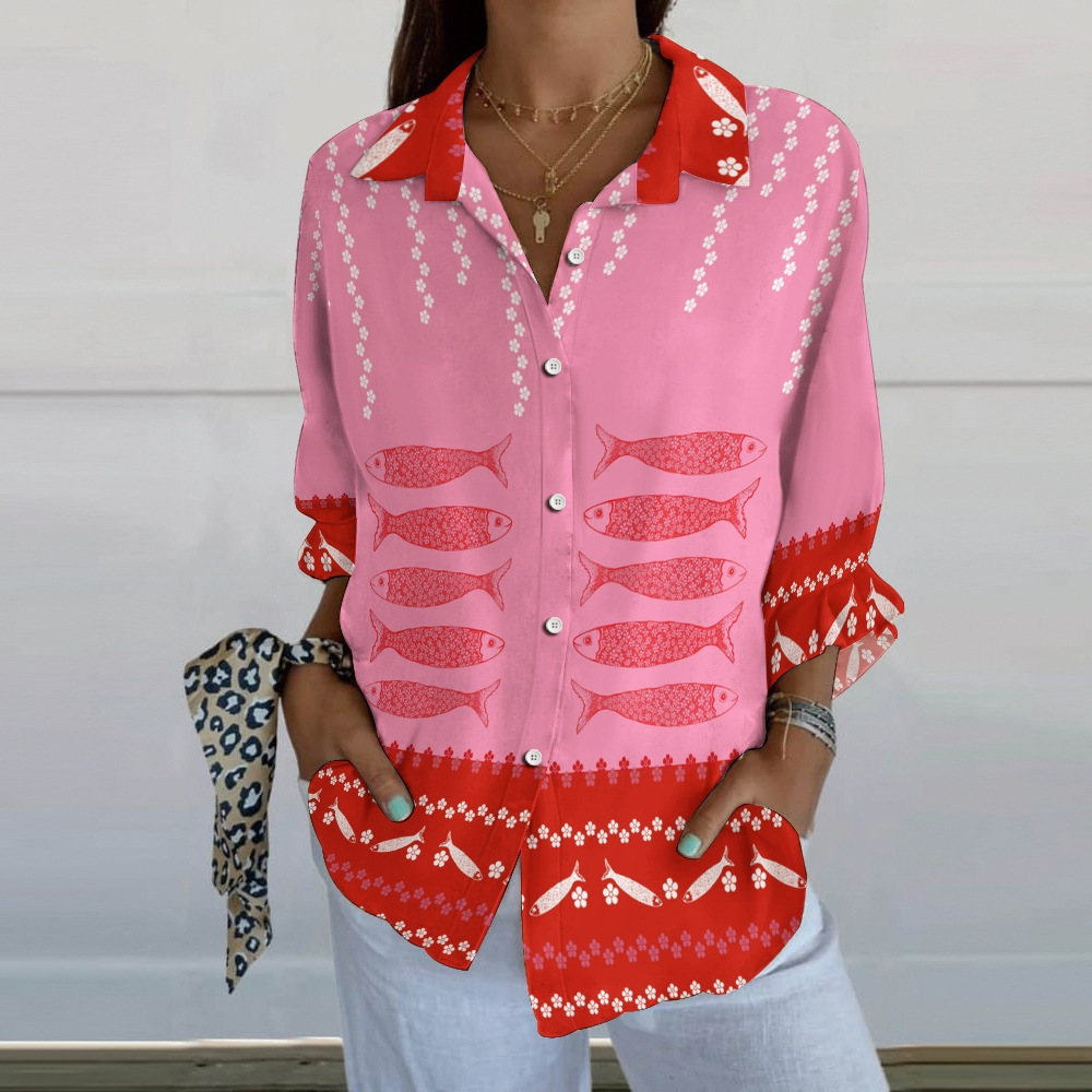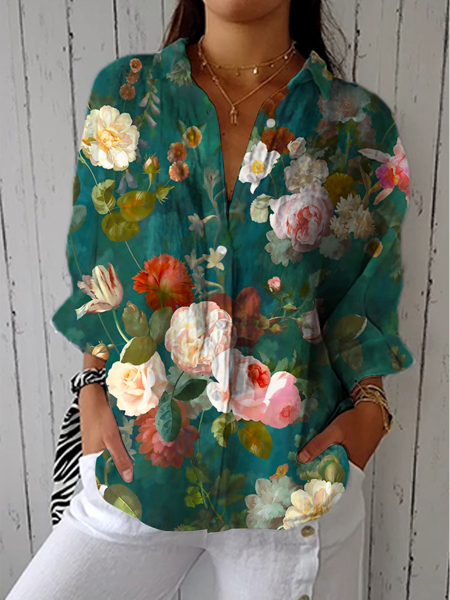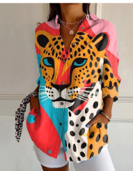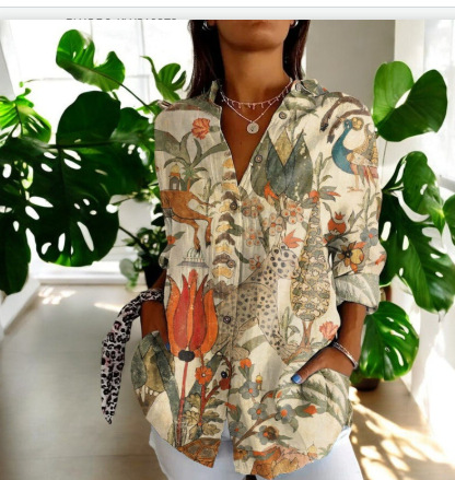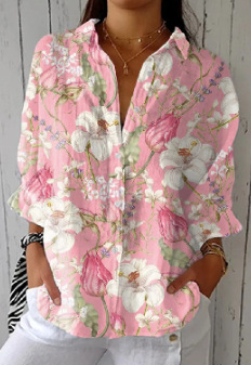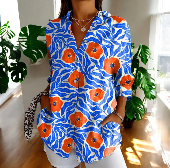 2025 새로운 여성 셔츠 여름 유럽과 미국의 트렌디 한 7부 소매 셔츠 꽃 패턴 3D 프린트 셔츠