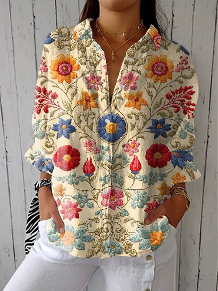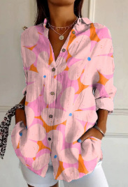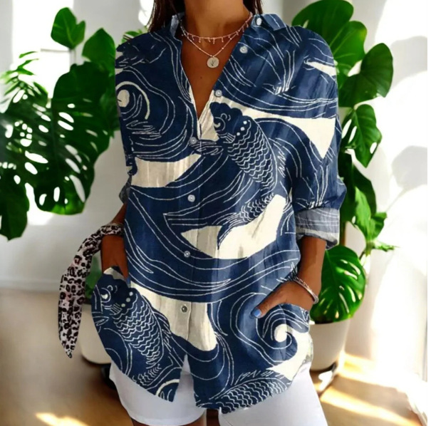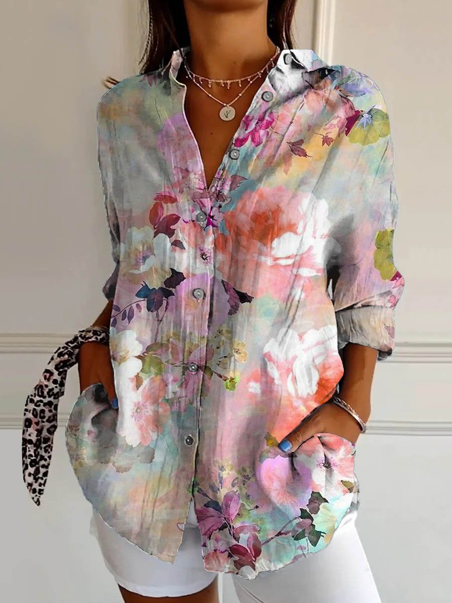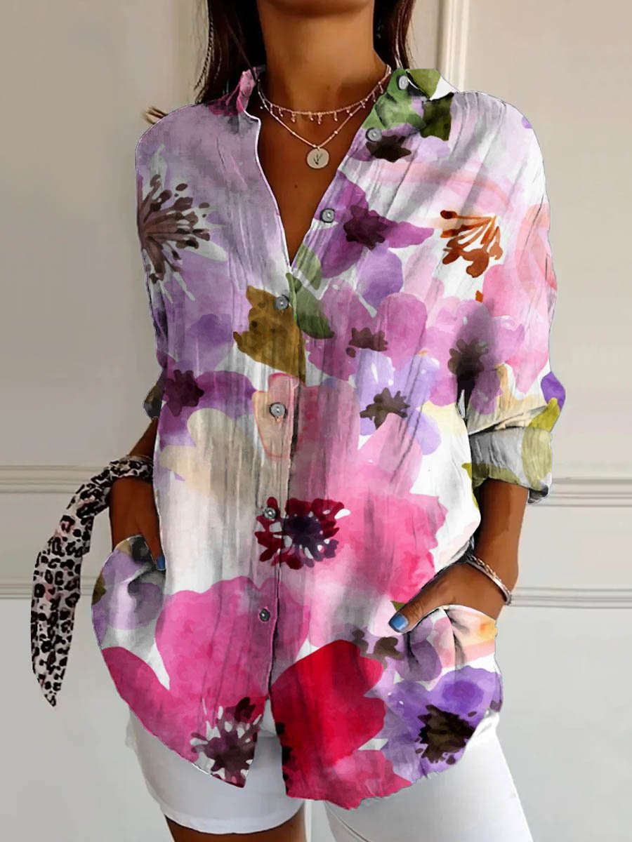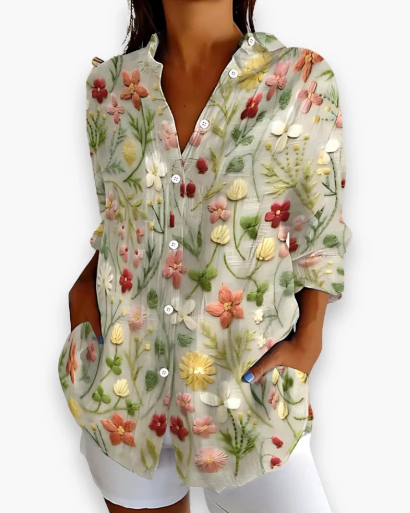 2025 새로운 여성 셔츠 여름 유럽과 미국의 트렌디 한 7부 소매 셔츠 꽃 패턴 3D 프린트 셔츠