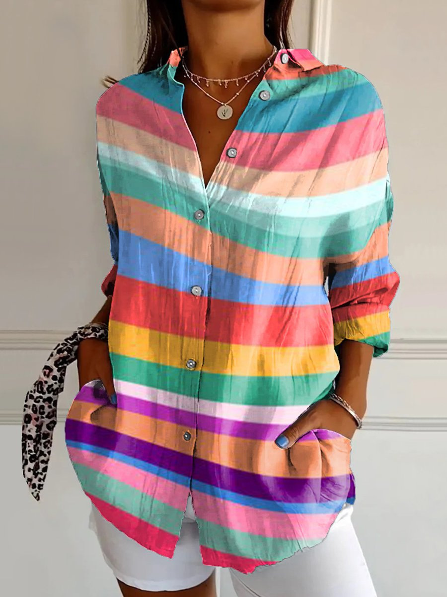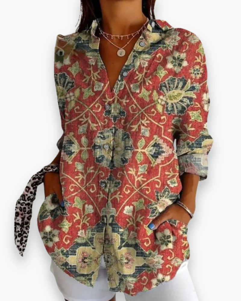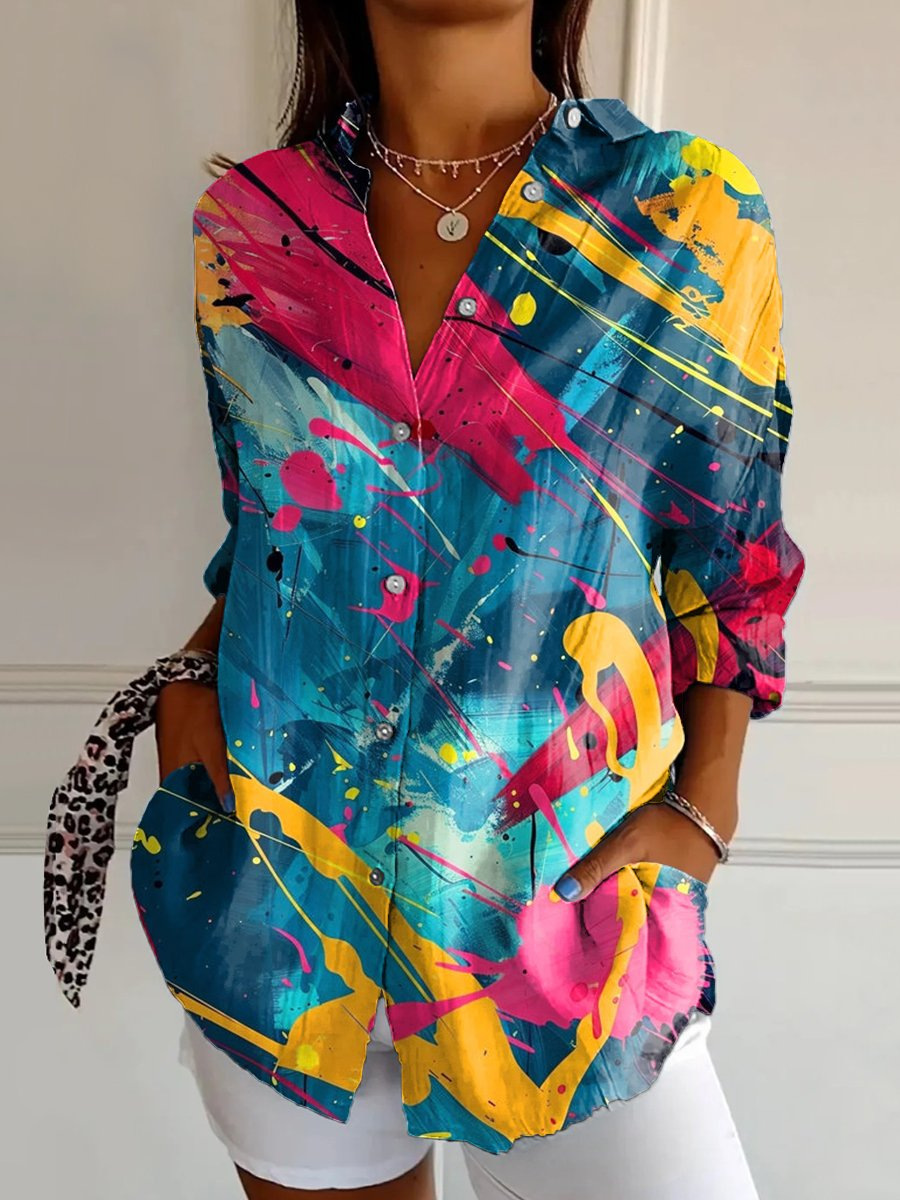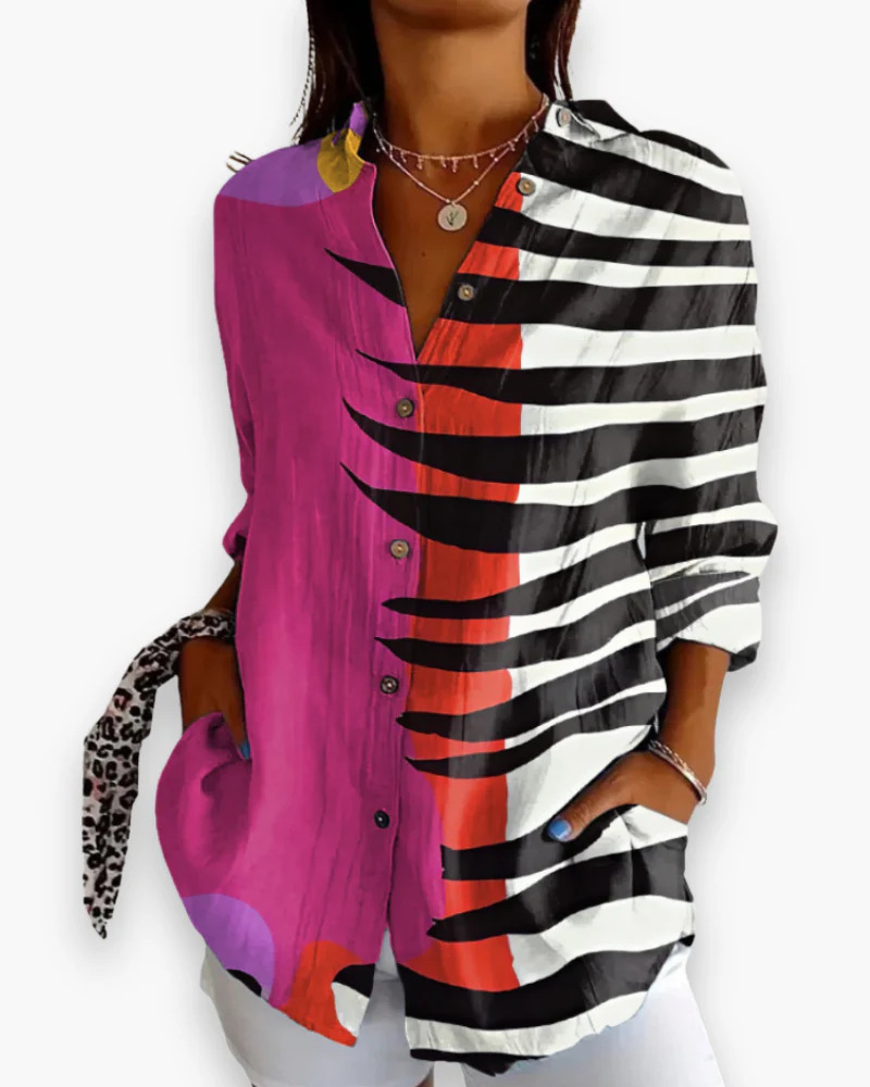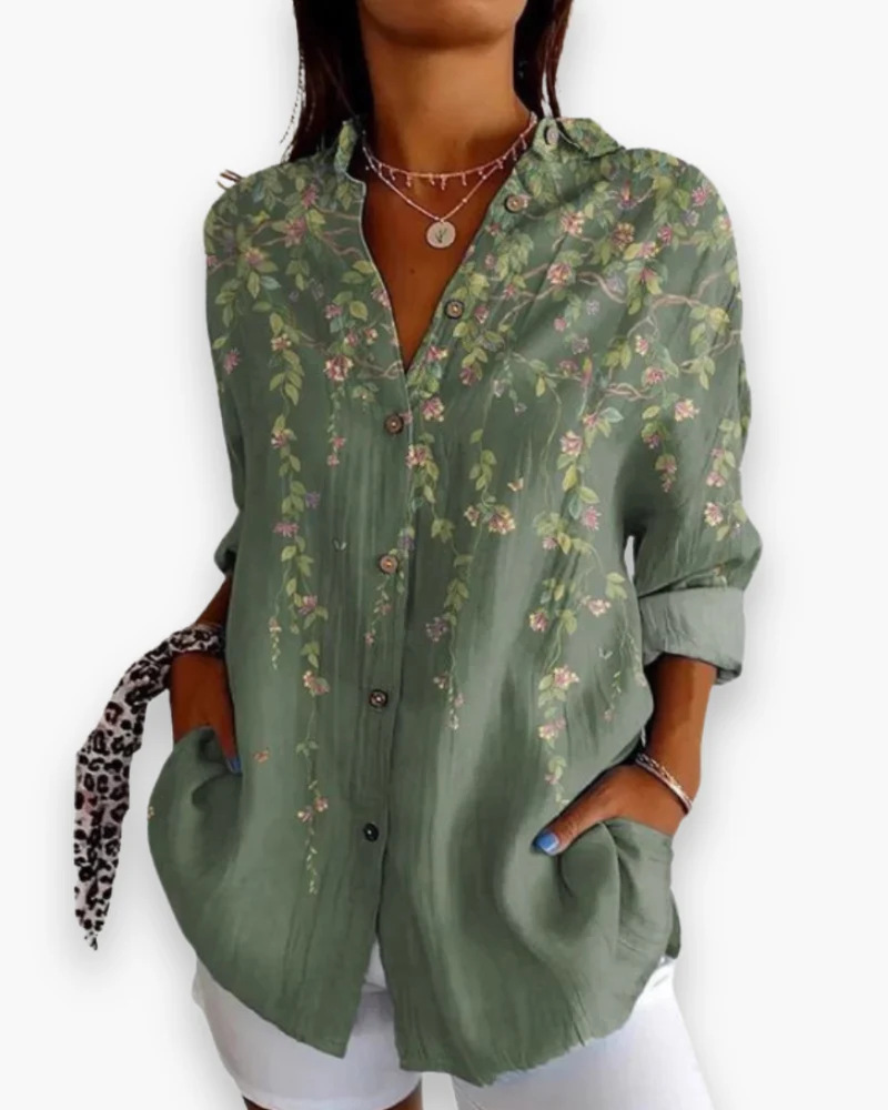 2025 새로운 여성 셔츠 여름 유럽과 미국의 트렌디 한 7부 소매 셔츠 꽃 패턴 3D 프린트 셔츠