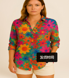 2025 새로운 여성 셔츠 여름 유럽과 미국의 트렌디 한 7부 소매 셔츠 꽃 패턴 3D 프린트 셔츠스토어 가기