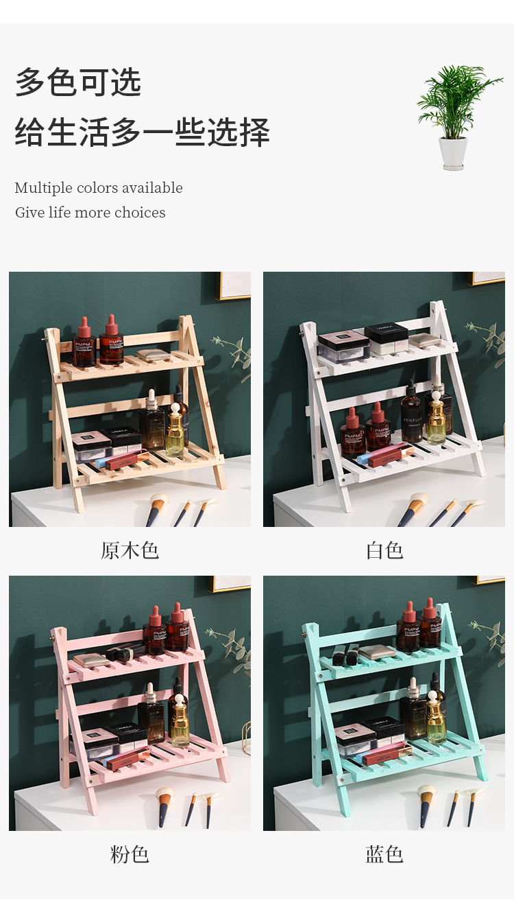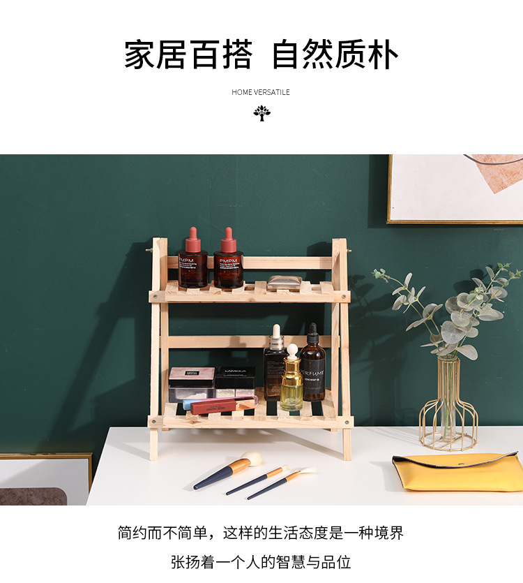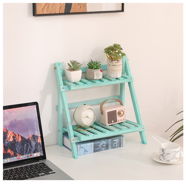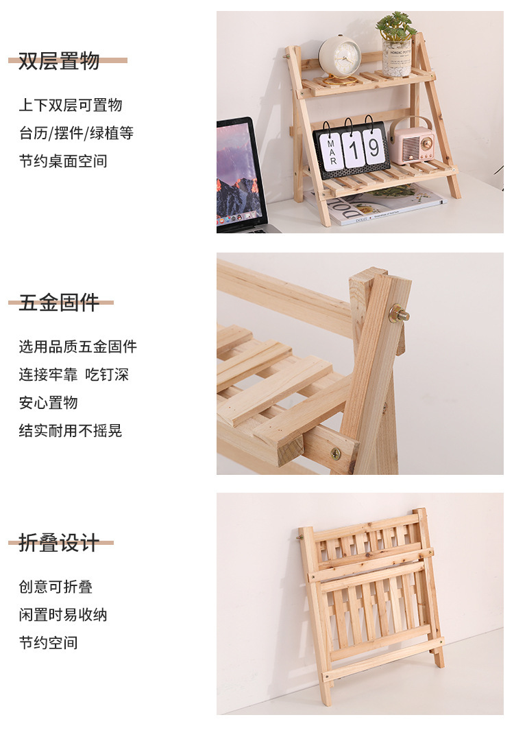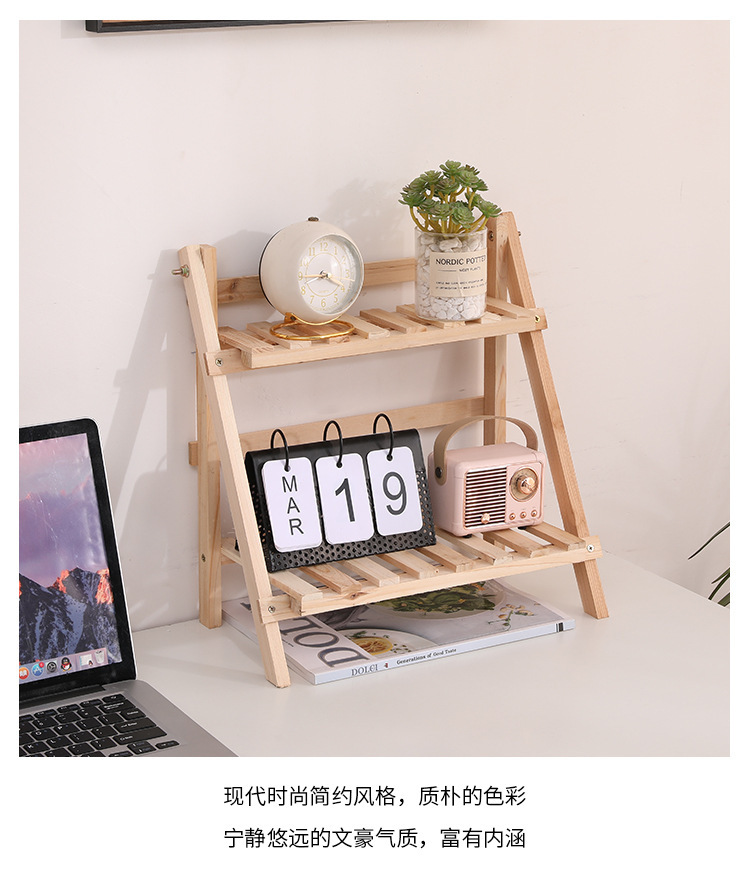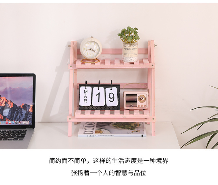 설치가 필요없는 단단한 나무 더블 레이어 데스크탑 스토리지 랙 기숙사 침실 장식 책상 스토리지 랙 정리 랙 다육 꽃 스탠드