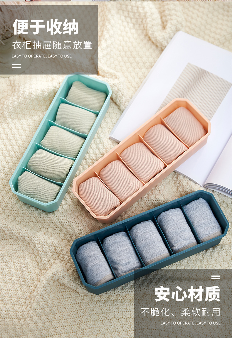 가정용 속옷 보관 상자 다기능 플라스틱 칸막이는 브래지어 및 속옷 정리 상자 양말 보관 상자와 함께 쌓을 수 있습니다.