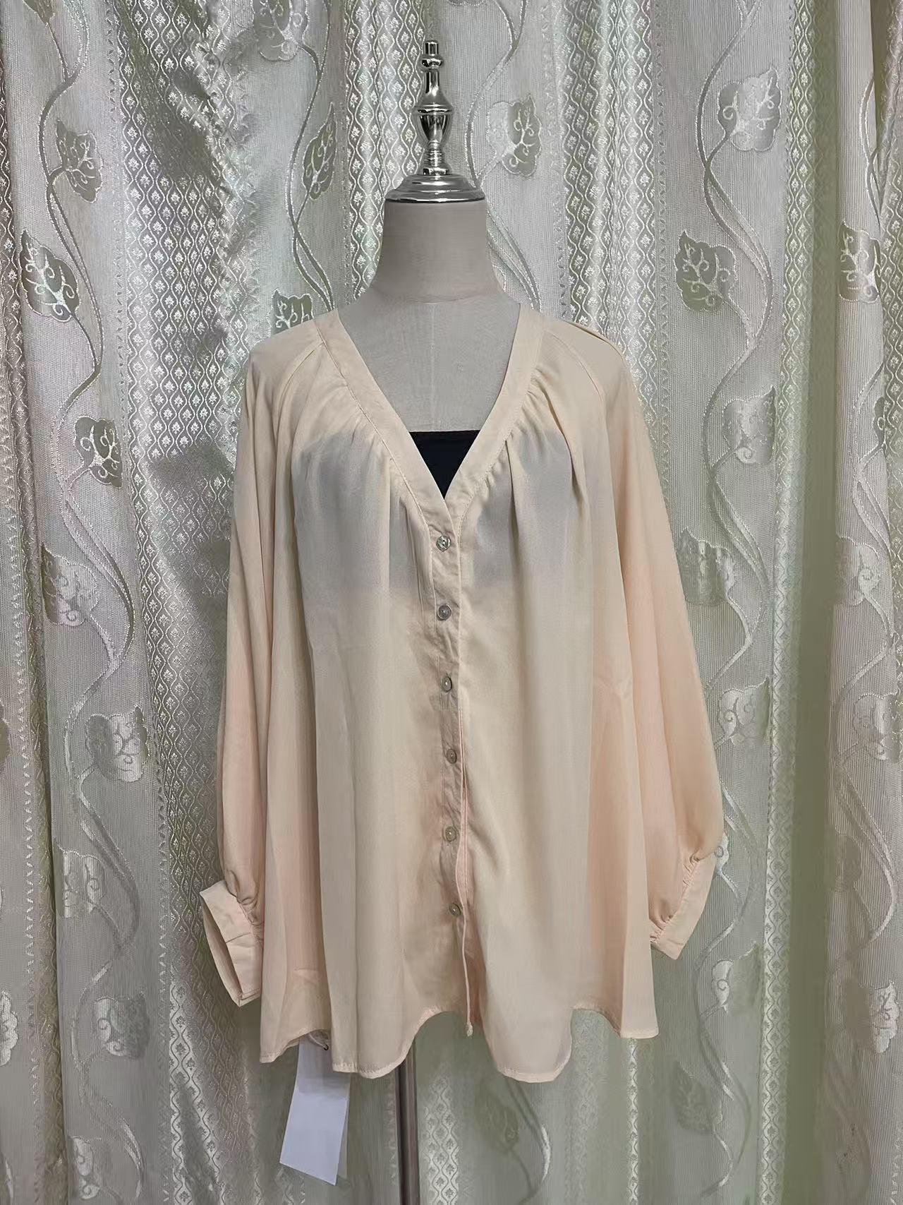 루스 같은 스타일 살구색 V 넥 디자인 감각 게으른 스타일 긴 소매 느슨한 선 보호 셔츠 카디건 코트 여성스토어 가기