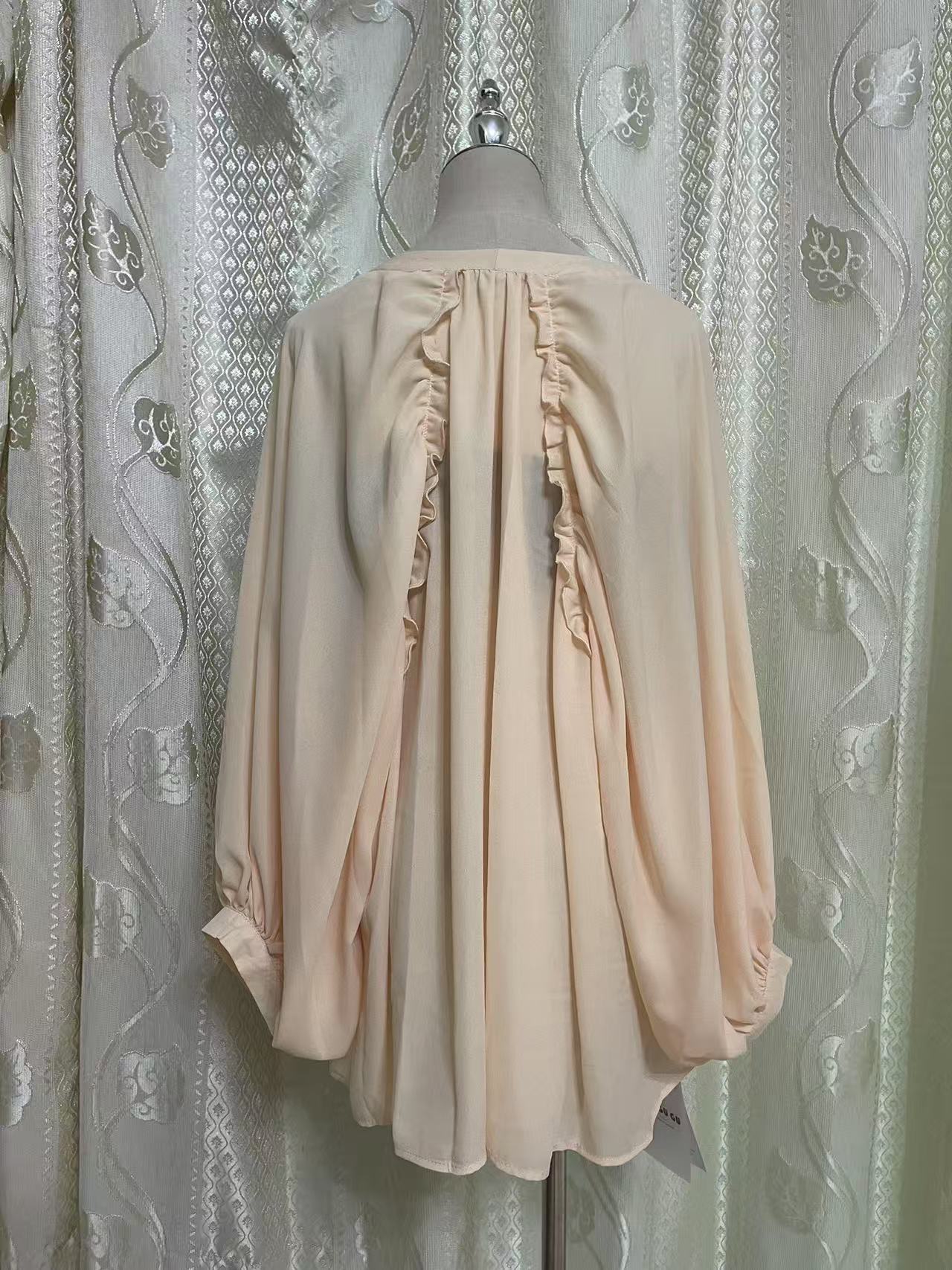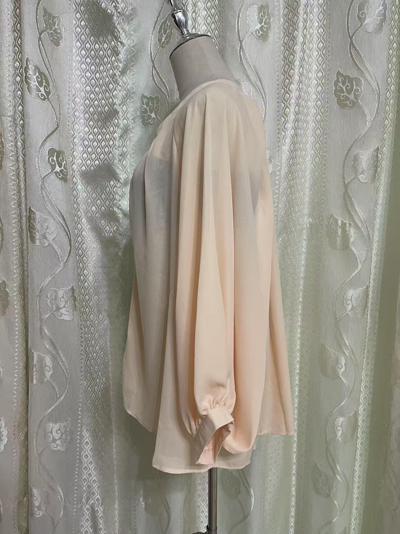 루스 같은 스타일 살구색 V 넥 디자인 감각 게으른 스타일 긴 소매 느슨한 선 보호 셔츠 카디건 코트 여성
