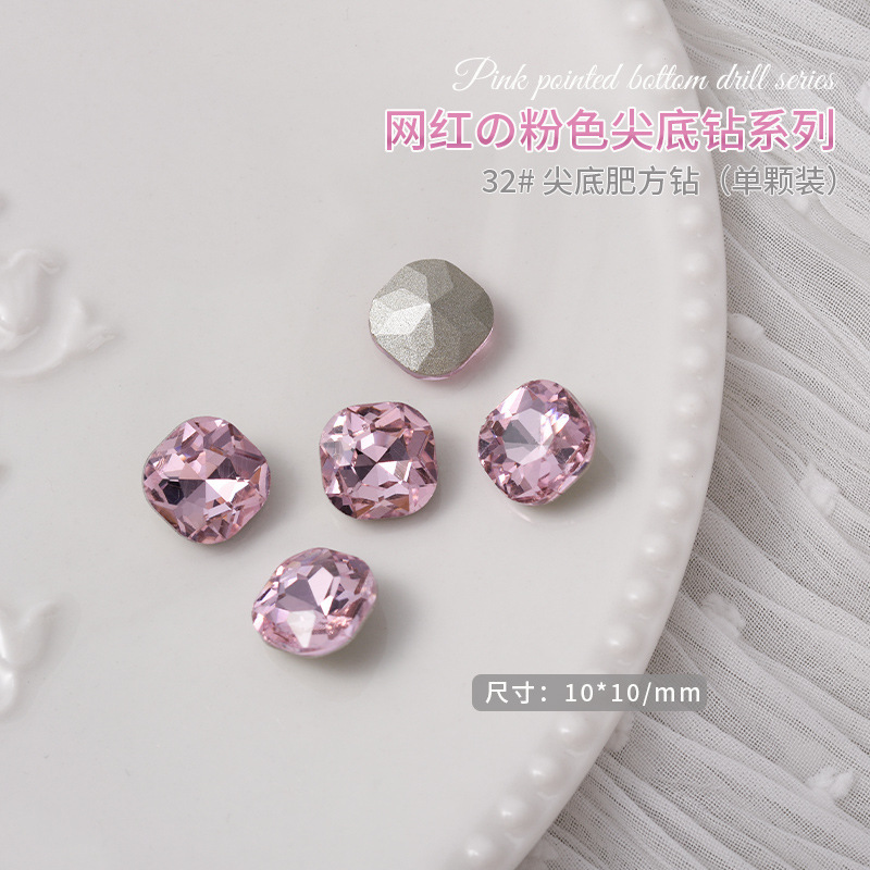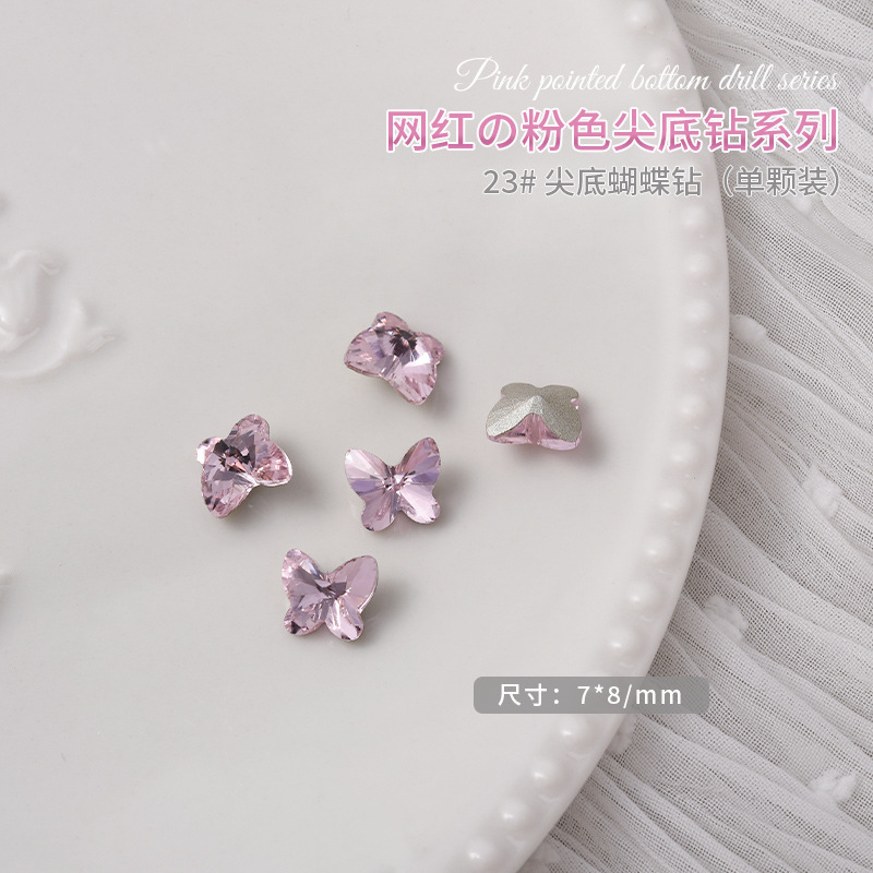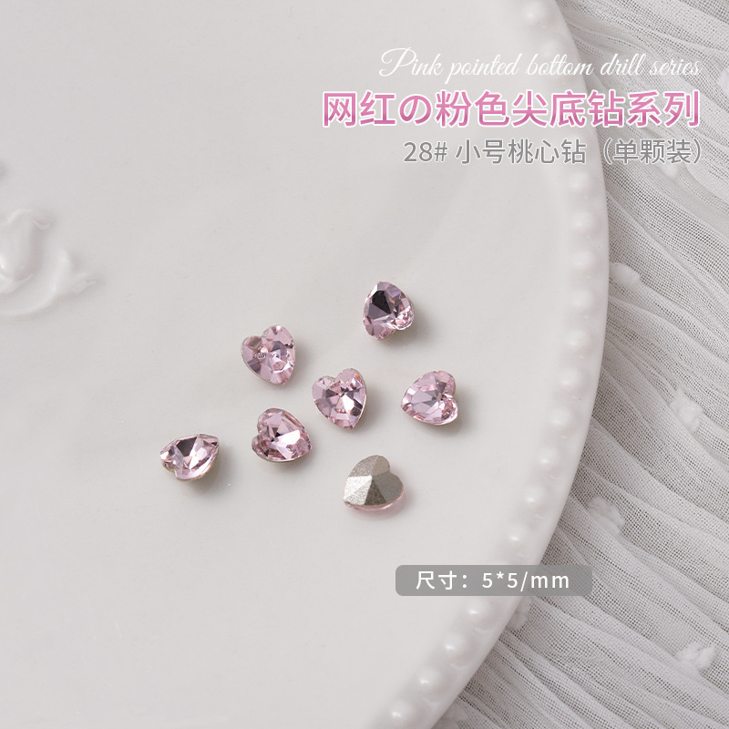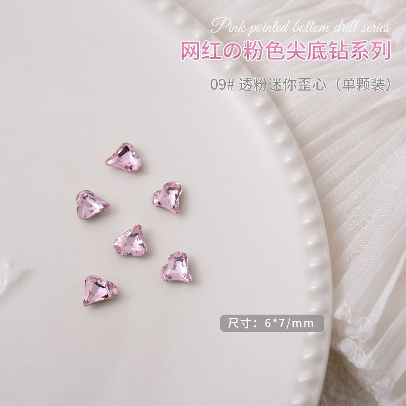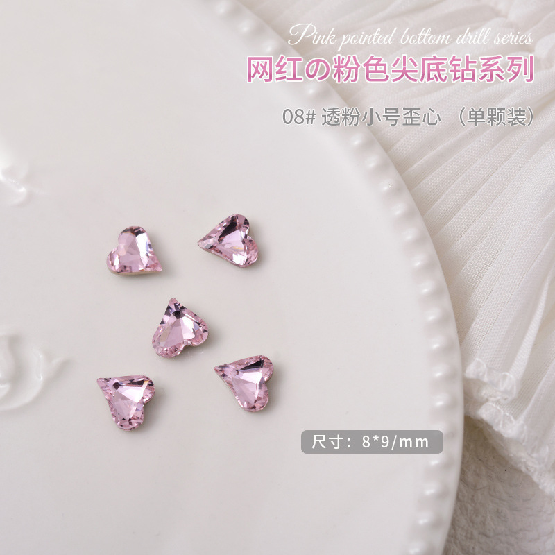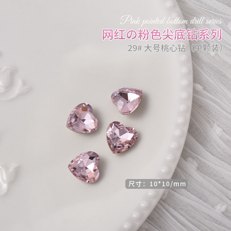 网红少女粉色尖底爱心钻指甲配饰超闪歪桃心多切面玻璃钻水晶饰品