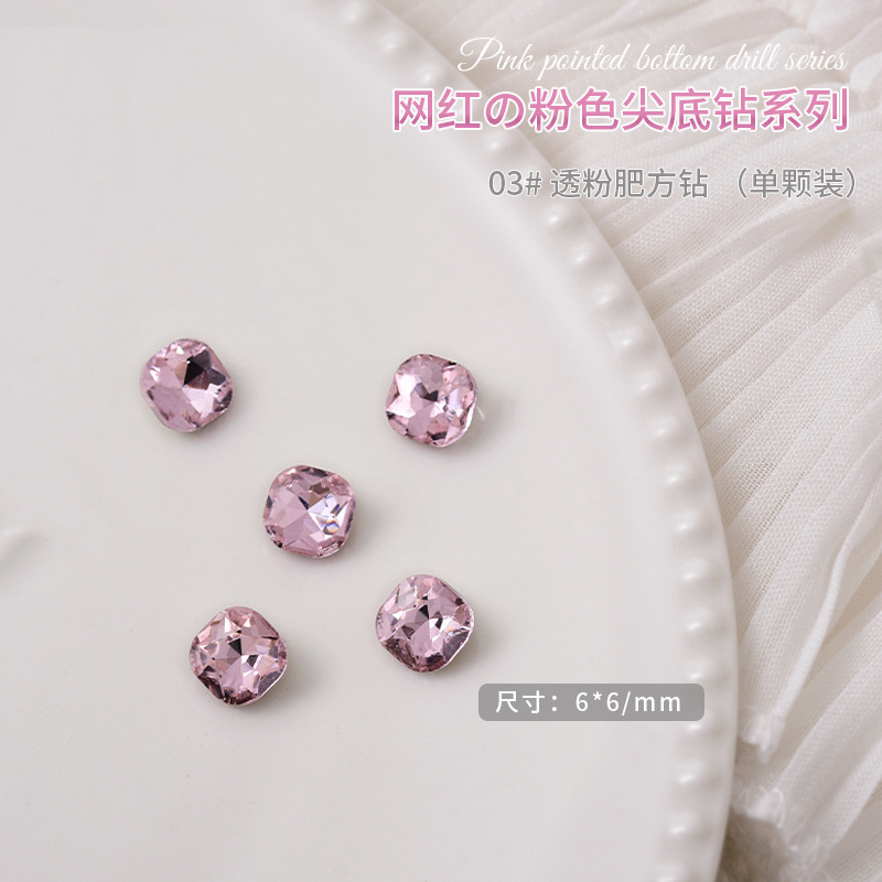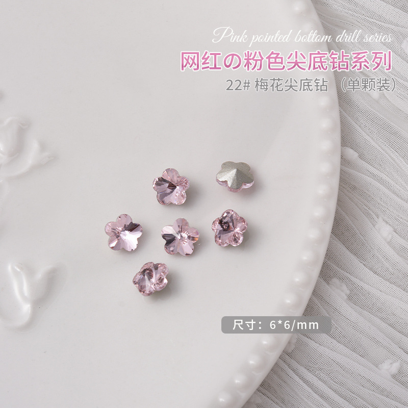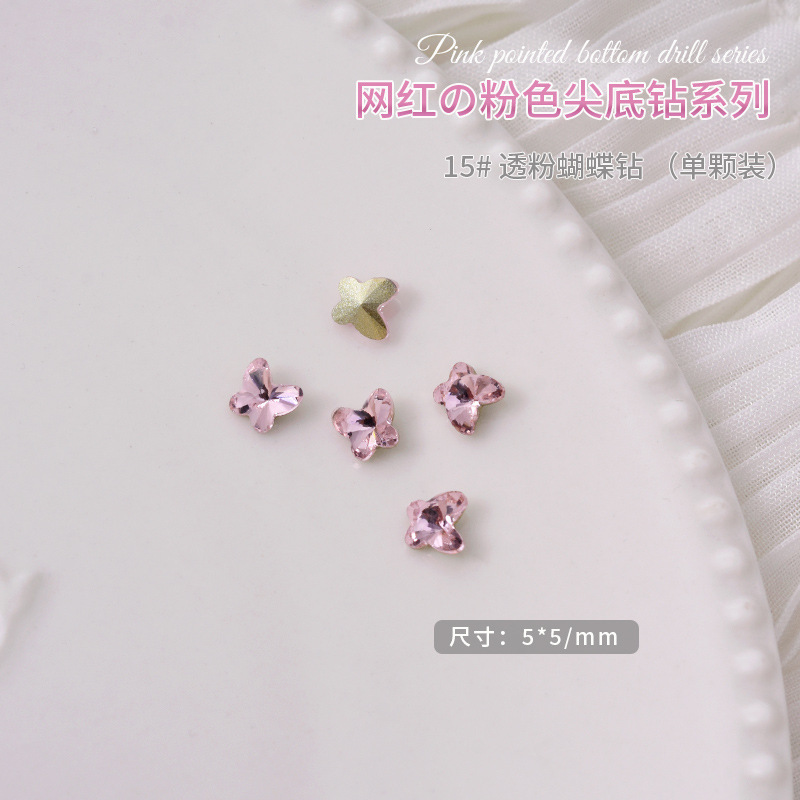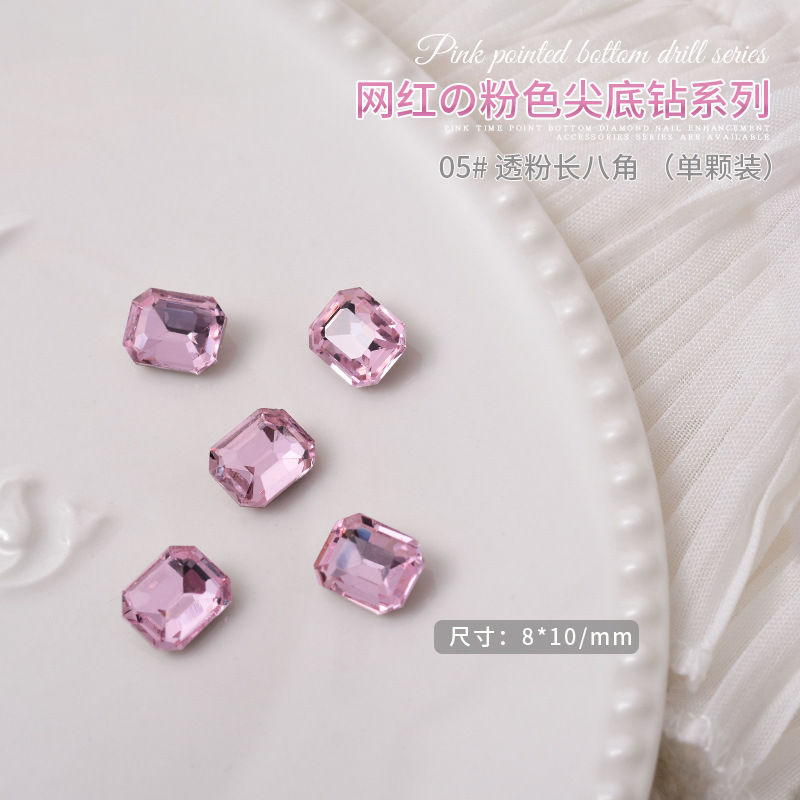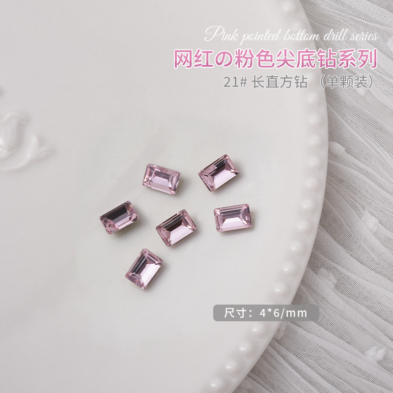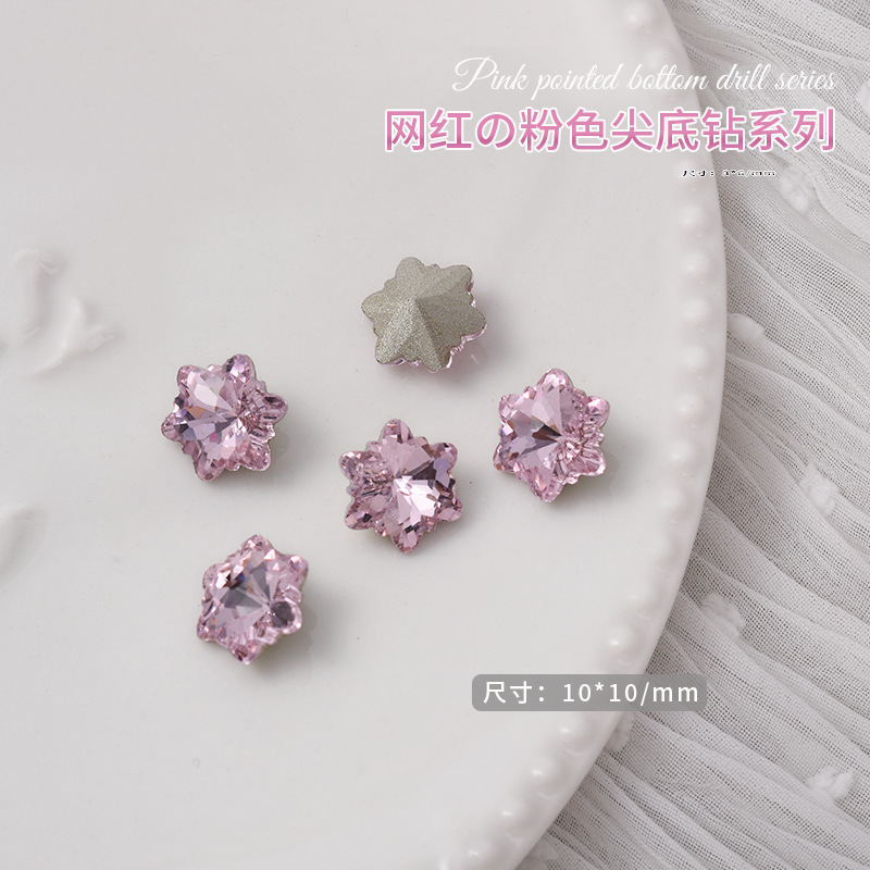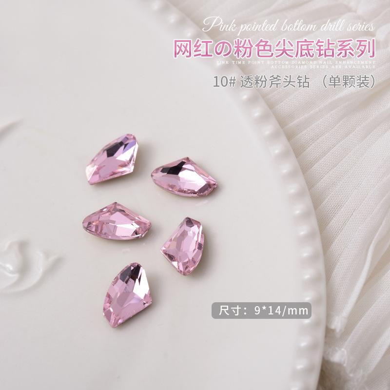 인터넷 연예인 소녀 핑크색 뾰족한 하트 다이아몬드 네일 액세서리 슈퍼 반짝이는 편심한 하트 다면체 유리 다이아몬드 크리스탈 쥬얼리스토어 가기