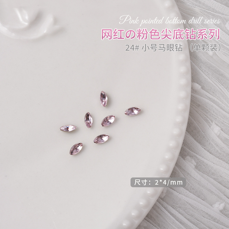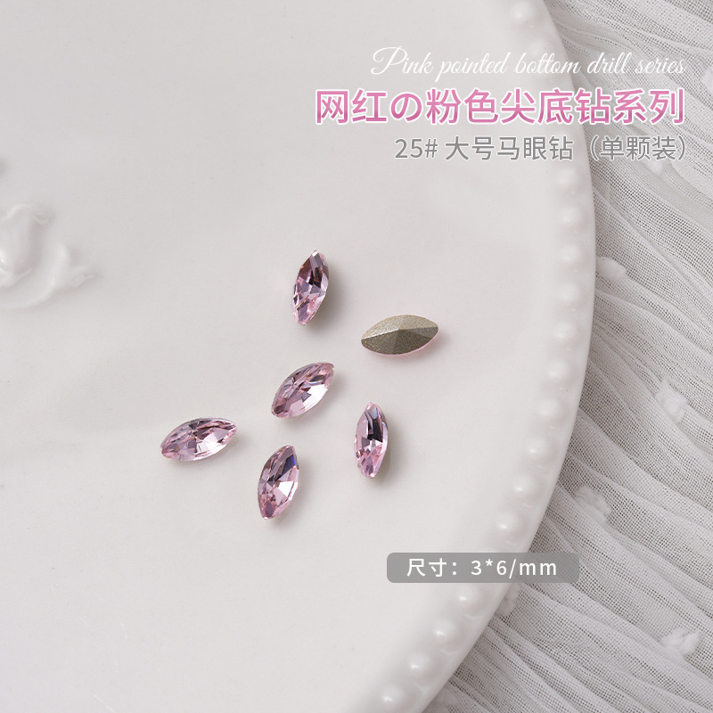 인터넷 연예인 소녀 핑크색 뾰족한 하트 다이아몬드 네일 액세서리 슈퍼 반짝이는 편심한 하트 다면체 유리 다이아몬드 크리스탈 쥬얼리