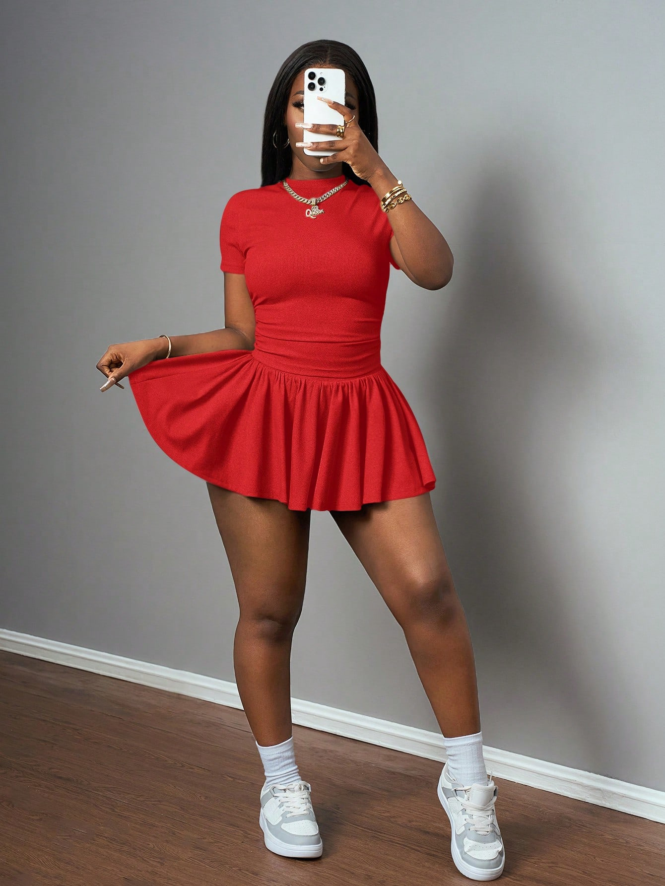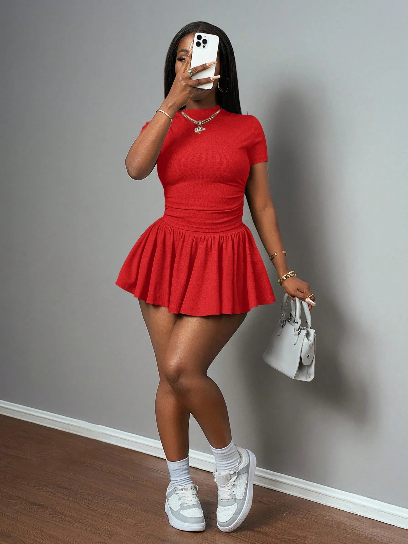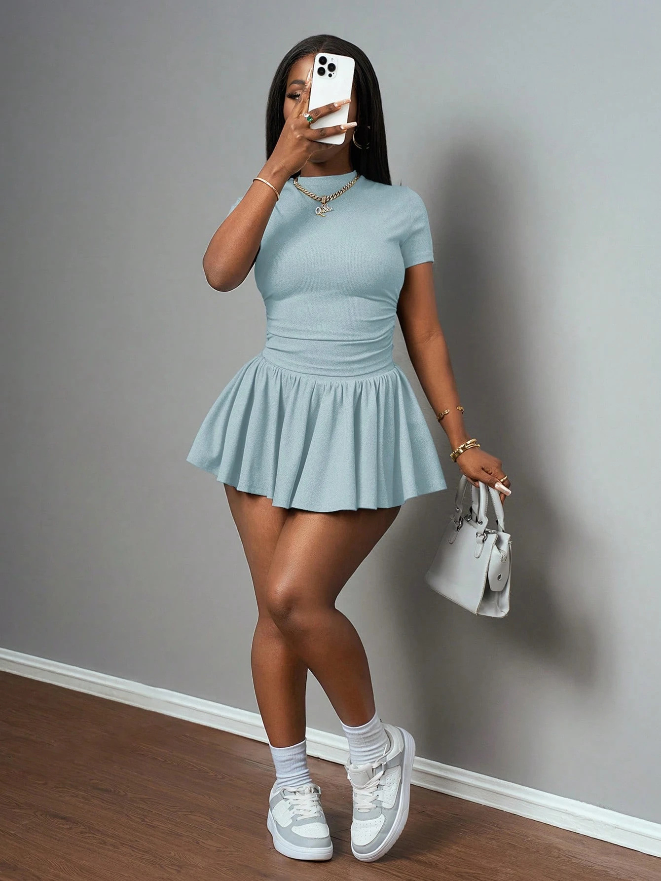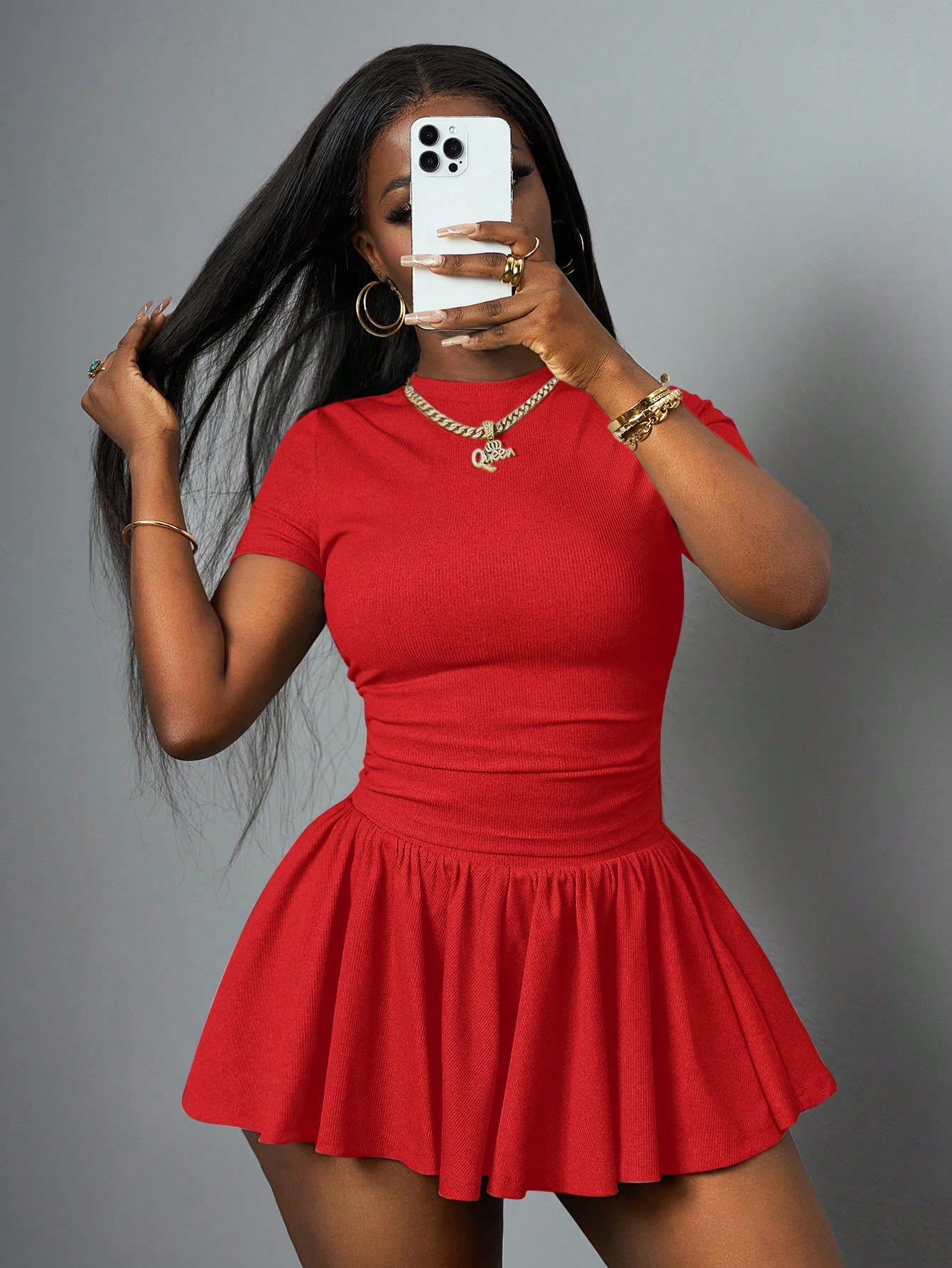 2025 새로운 아마존 유럽과 미국 새로운 여름 우아한 여성용 갈비뼈 짧은 소매 스커트 세트