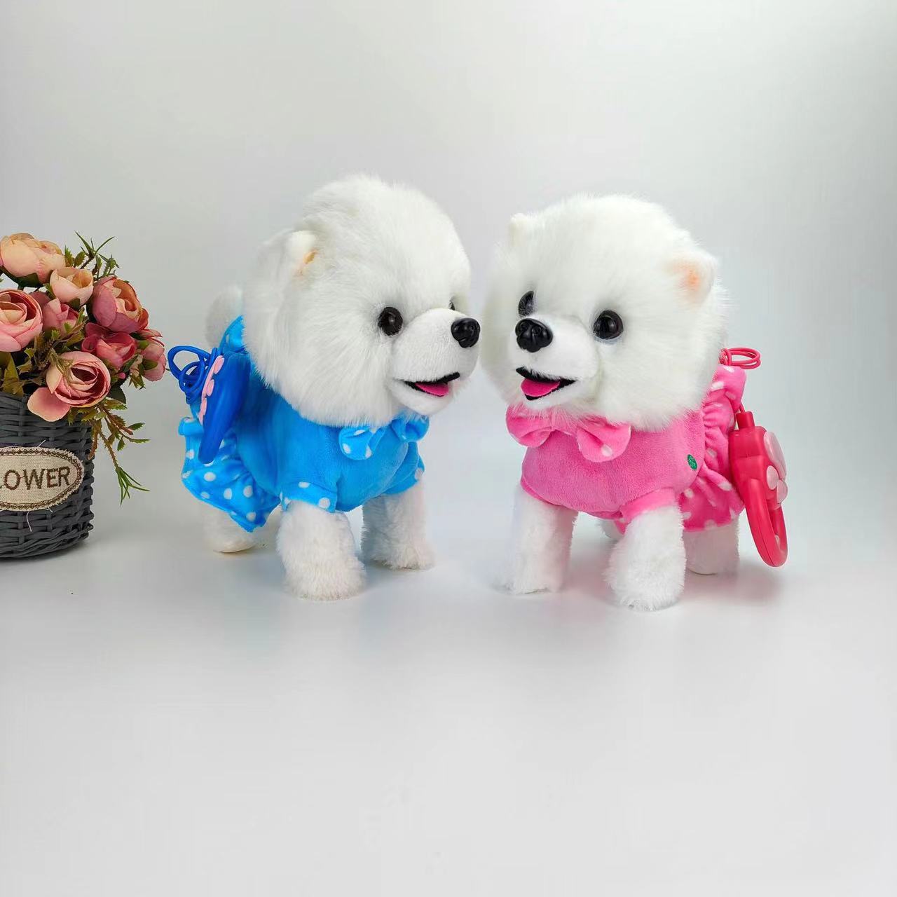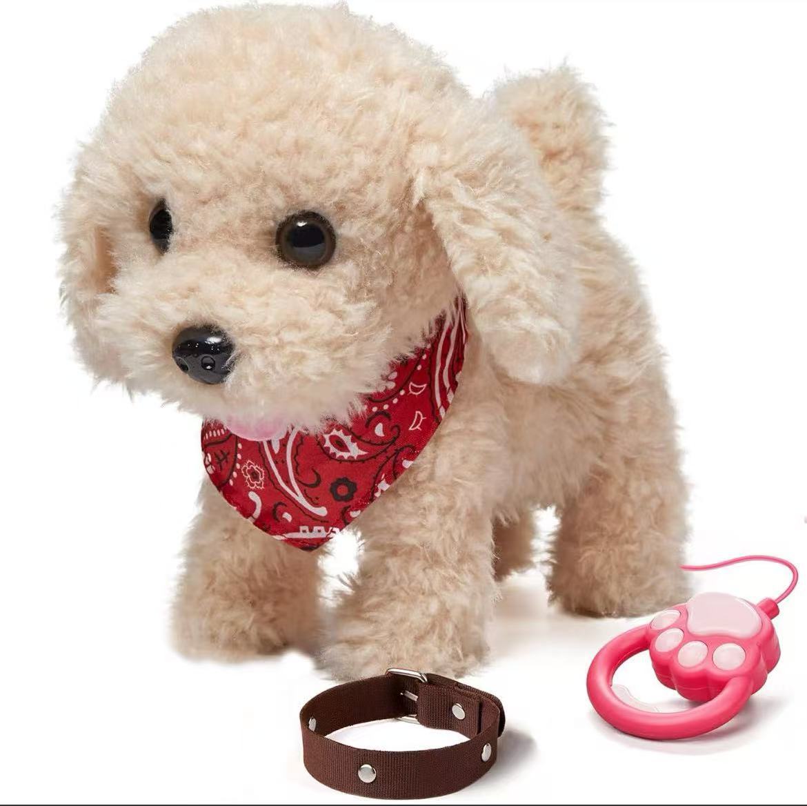 插线款功能:未插手环线:触摸头会走路汪汪叫撒娇+声控走 路汪汪叫+摇尾巴点头;