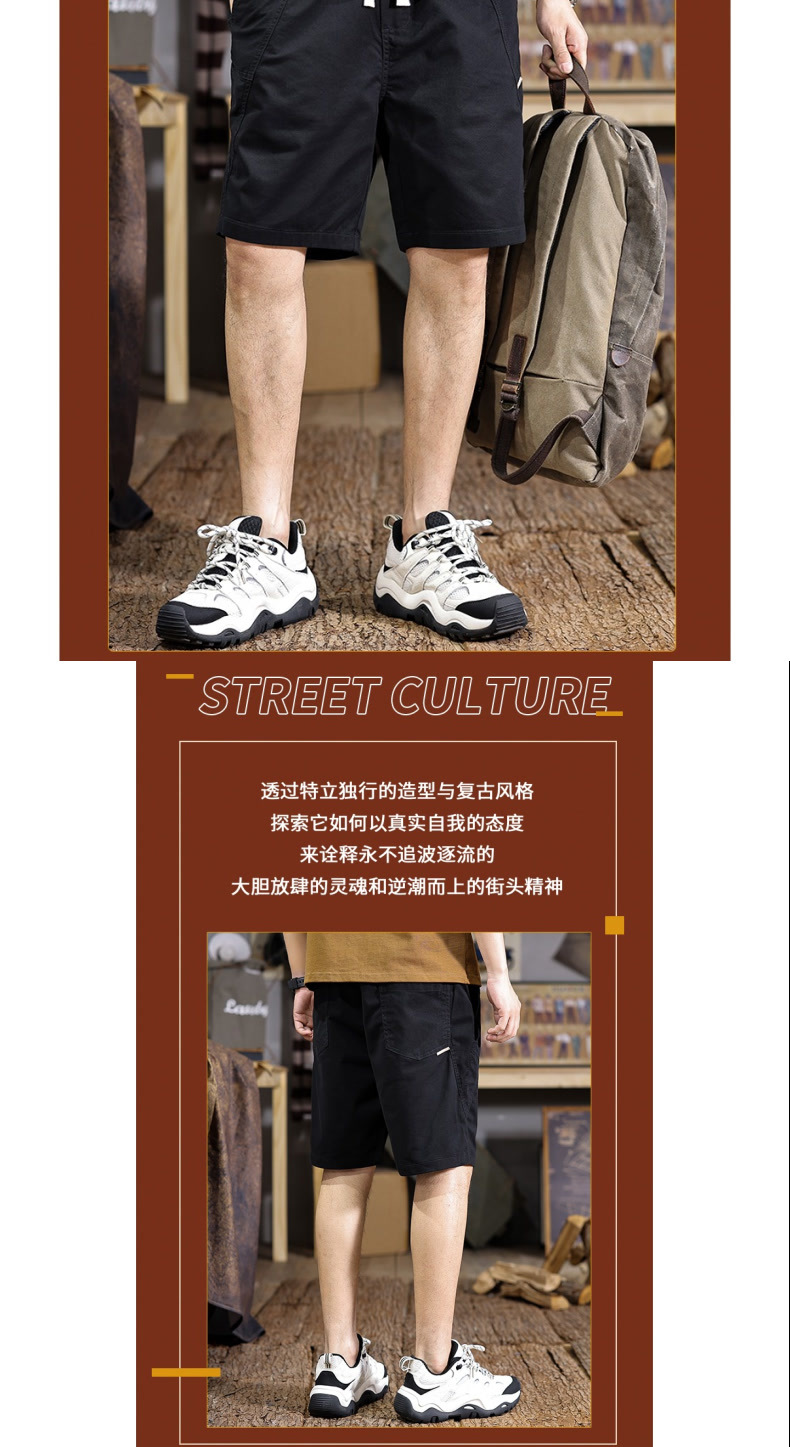 2025 여름 얇은 순면 트렌디 브랜드 카고 반바지 남성 루즈한 대형 남성 중간 길이 스포츠 캐주얼 5부 바지스토어 가기