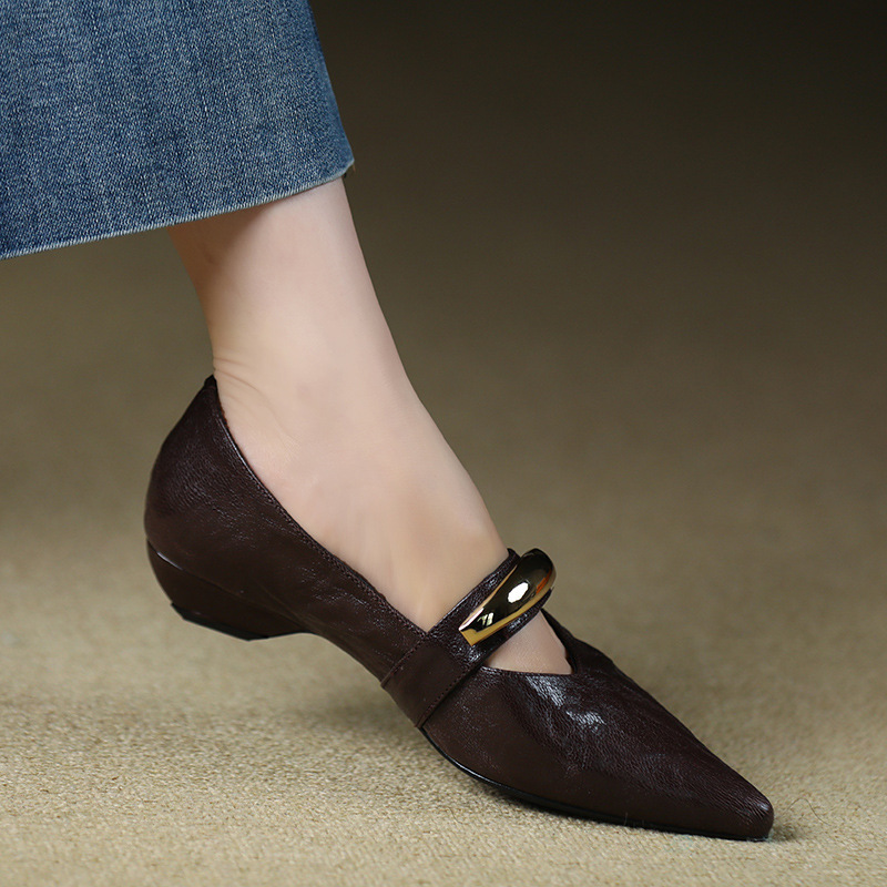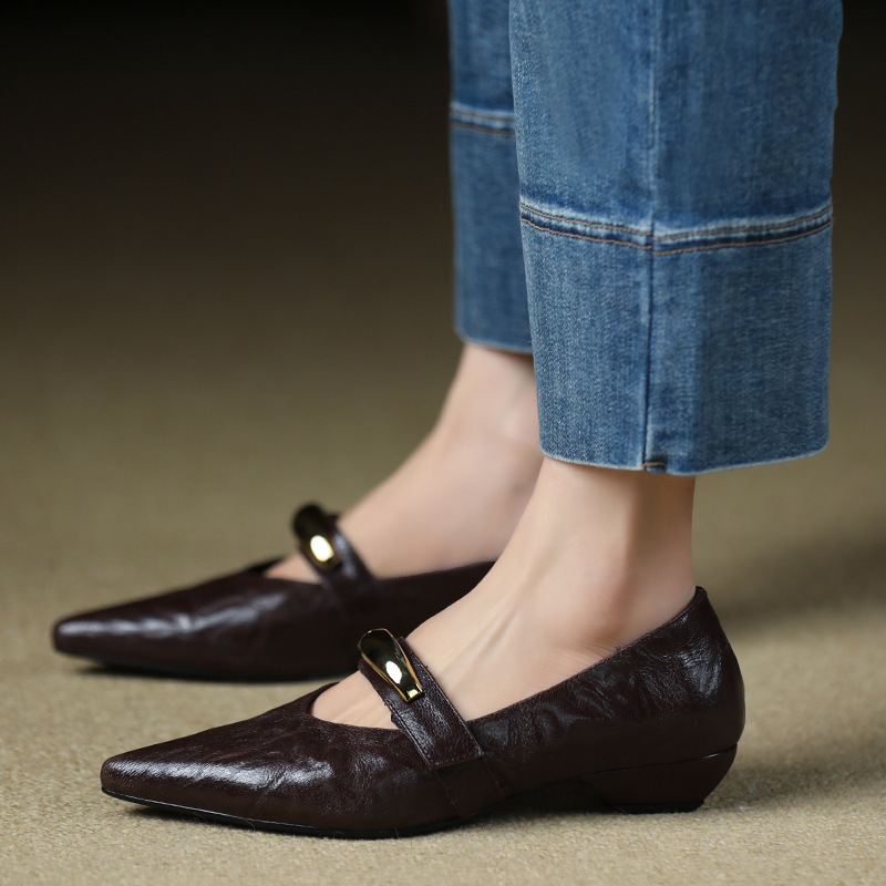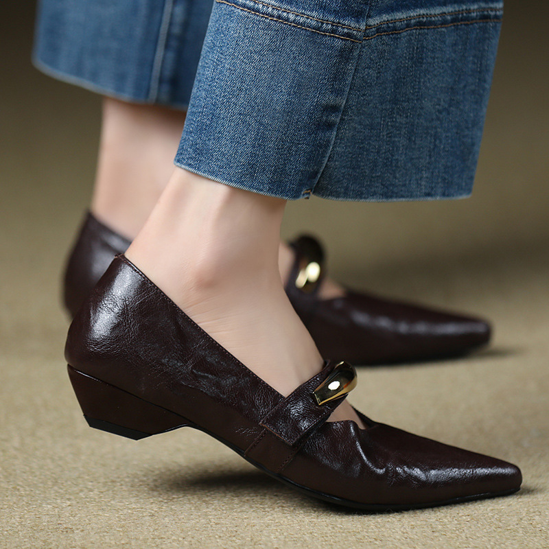 새로운 영국 스타일 포인티드 로우 힐 메리 제인 신발 여성용 펌프 싱글 슈즈 여성용 플랫 힐 작은 가죽 신발