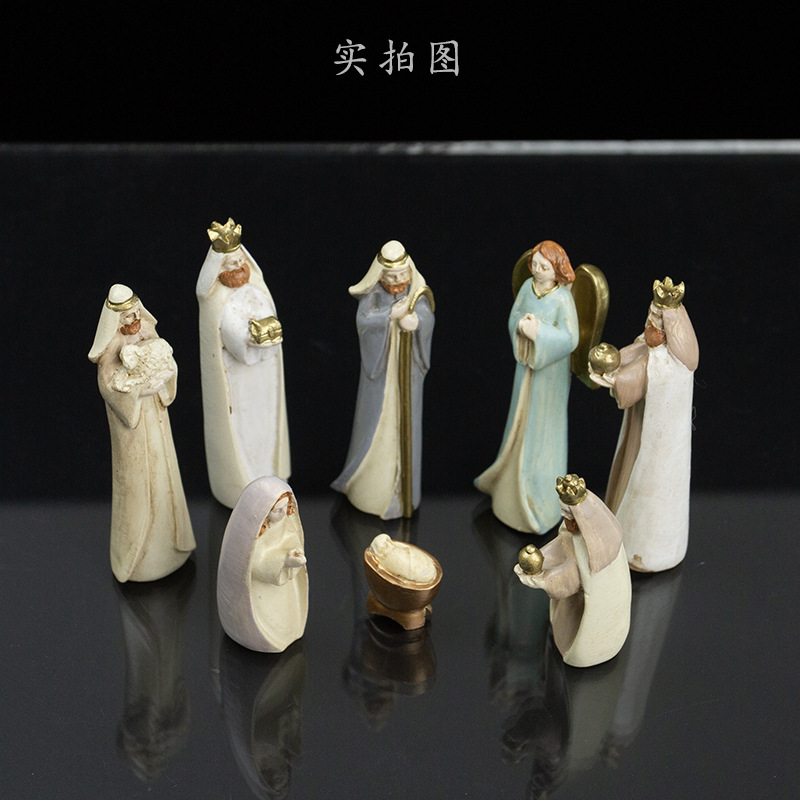 유럽의 창조적 인 수지 크리스마스 예수의 탄생 먹이통 그룹 장면 장식 홈 공예 창 탁상 장식품스토어 가기