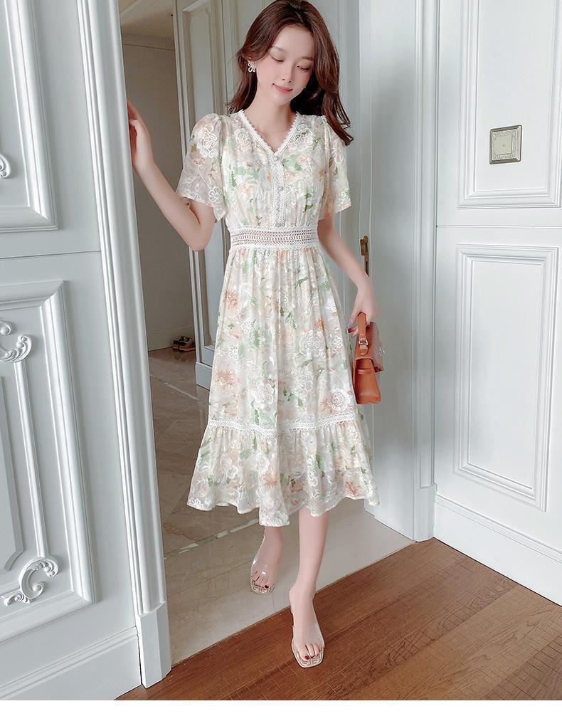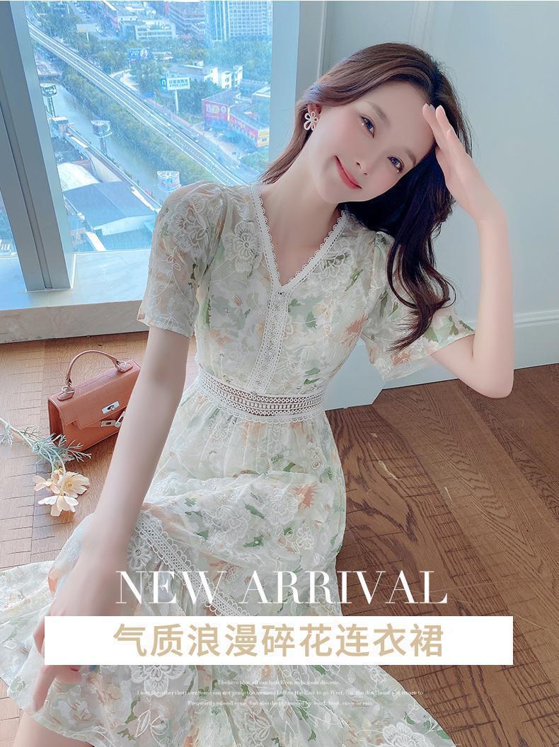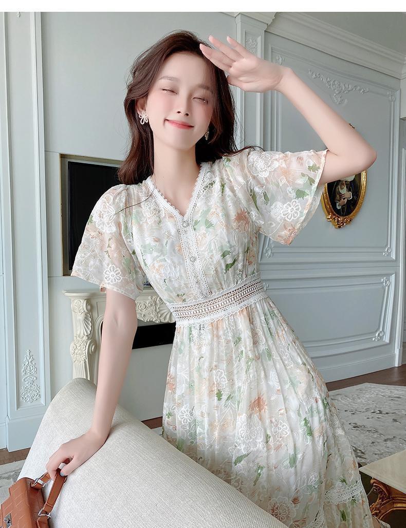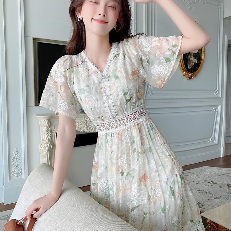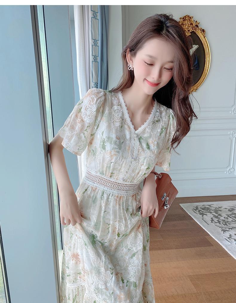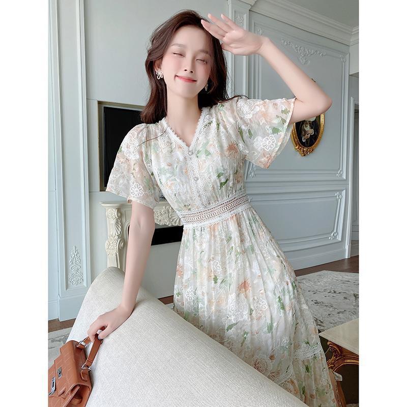 꽃무늬 드레스 여성 여름 얇은 2024 새로운 스타일 허리 슬리밍 롱 스커트 휴가 스타일 쉬폰 요정 스커트 여름스토어 가기