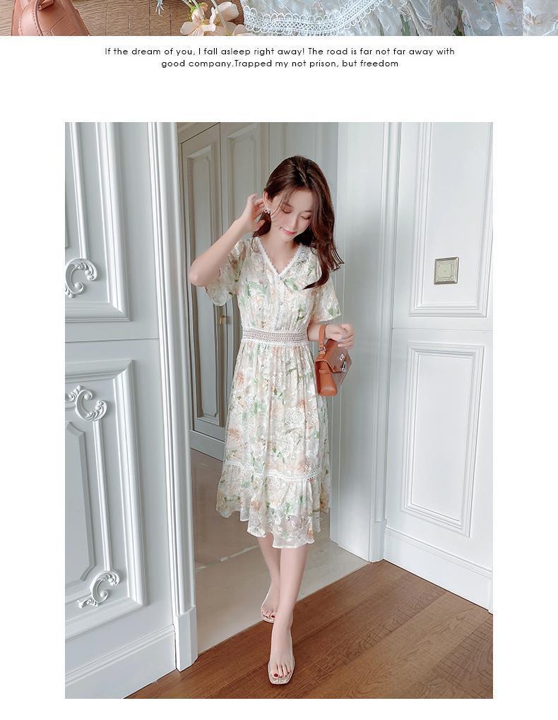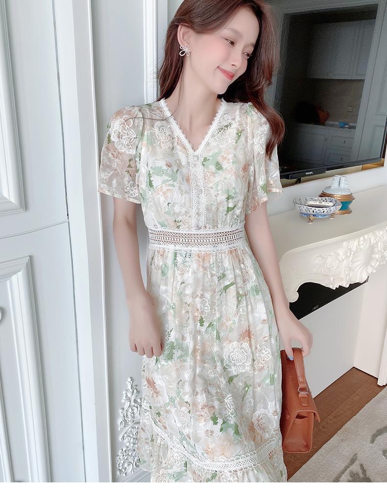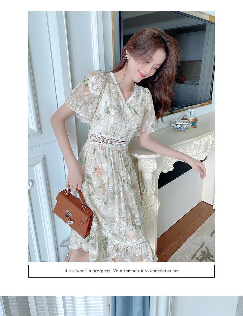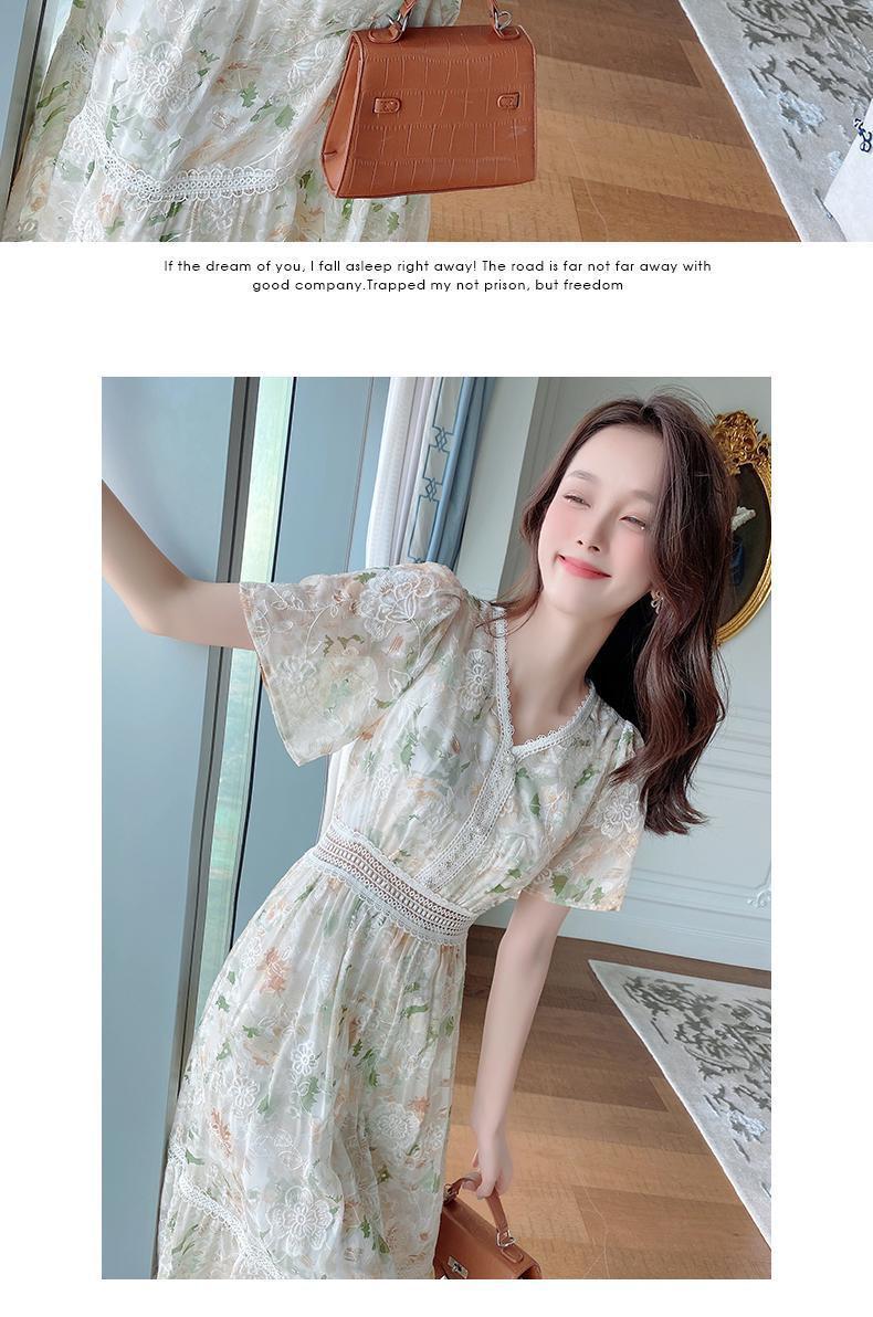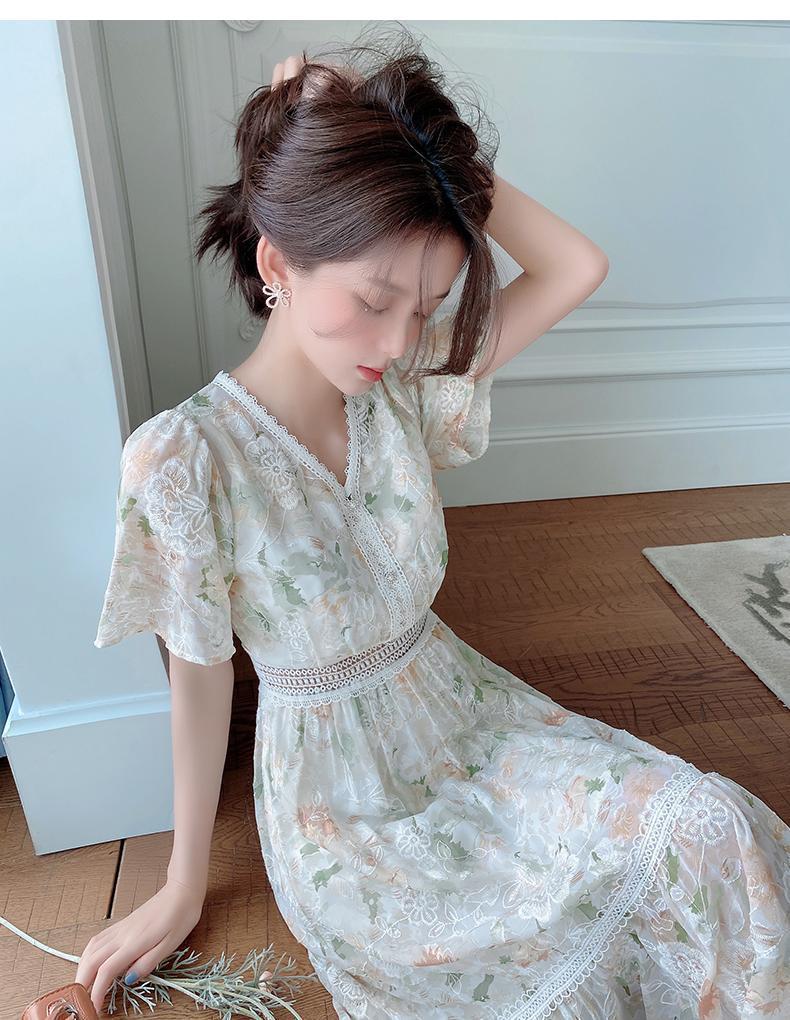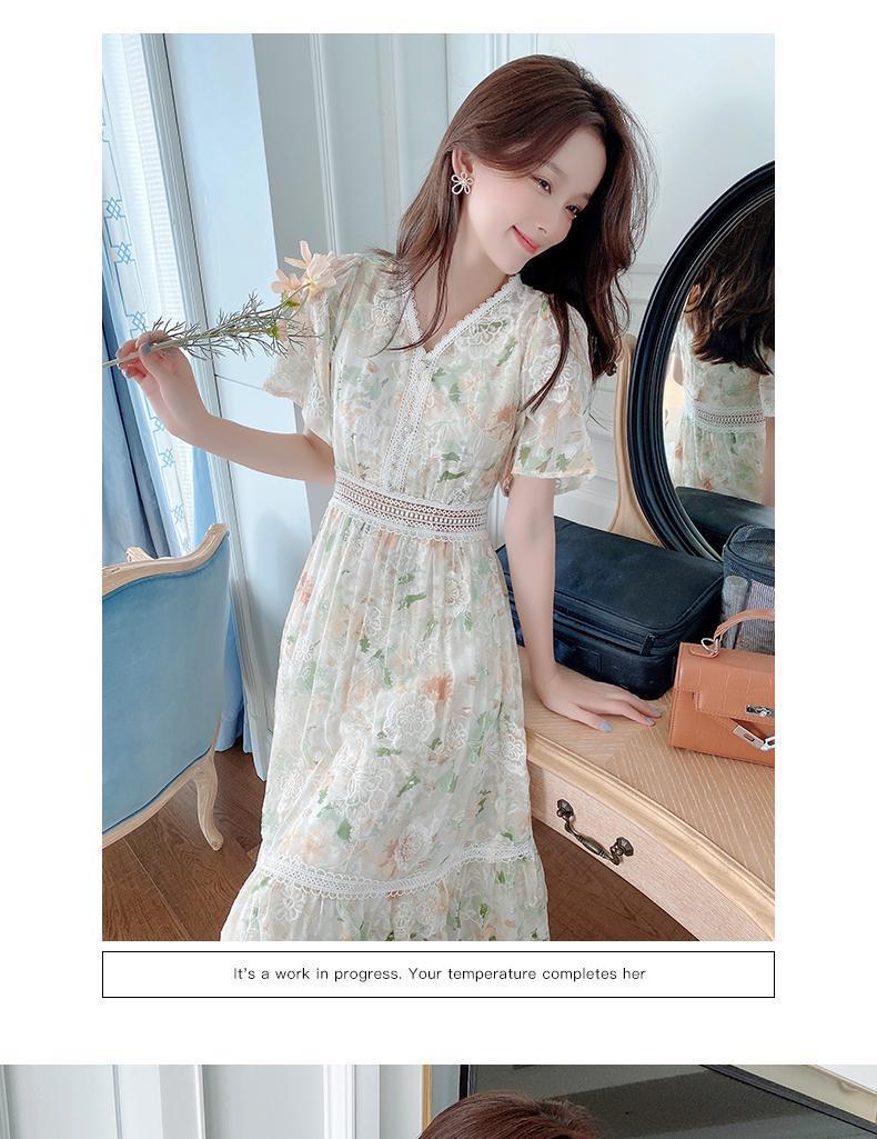 꽃무늬 드레스 여성 여름 얇은 2024 새로운 스타일 허리 슬리밍 롱 스커트 휴가 스타일 쉬폰 요정 스커트 여름스토어 가기