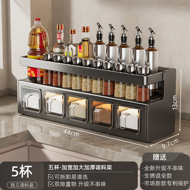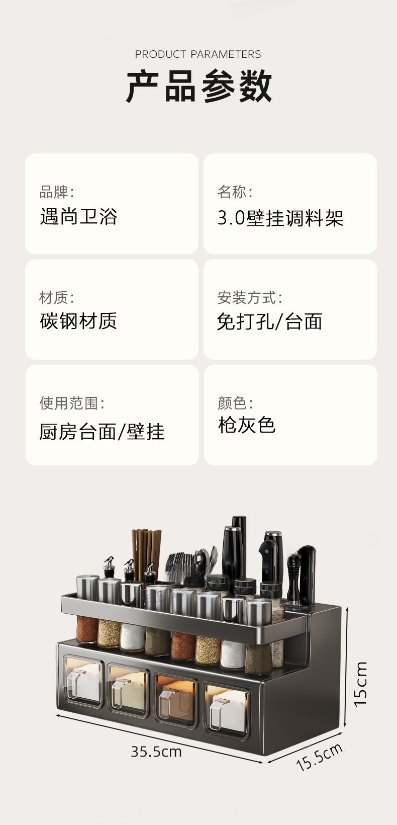 • 새롭게 업그레이드된 4컵 스파이스 랙 + 칼 홀더(벽걸이/조리대 겸용)