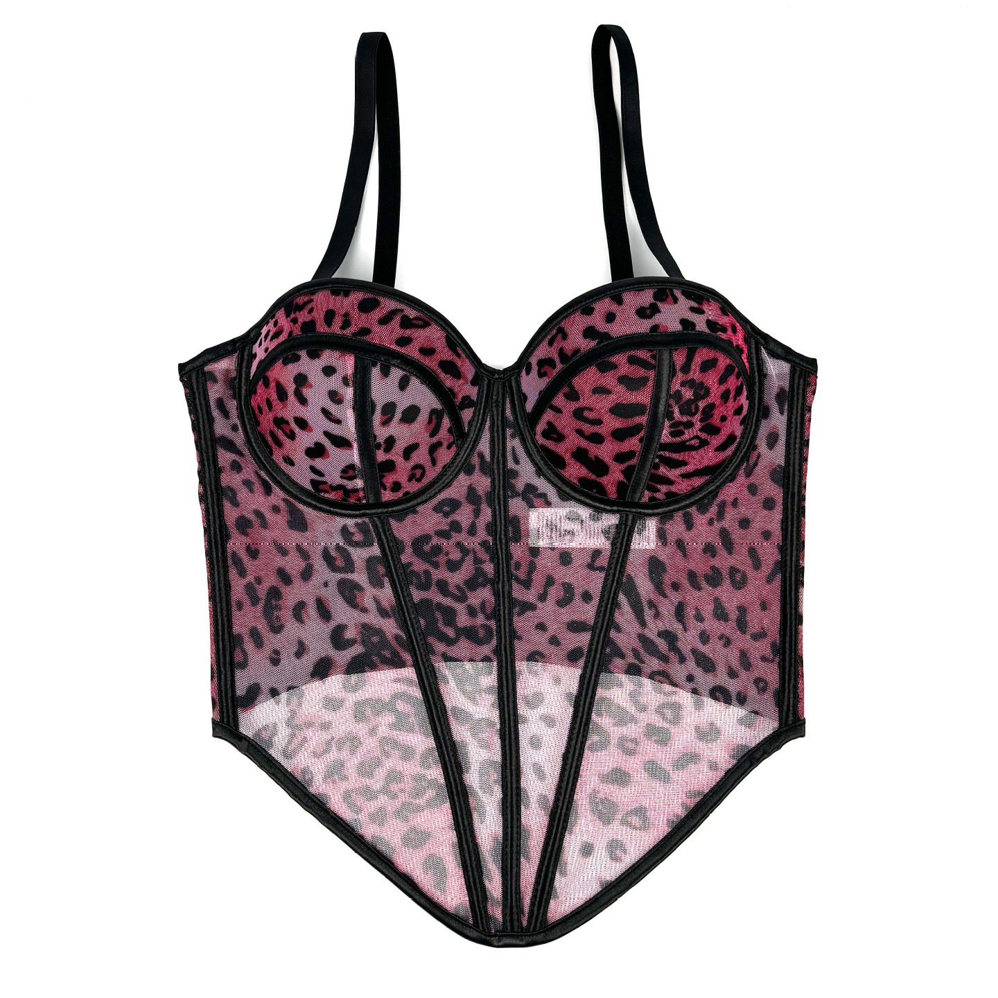 섹시한 레오파드 도트 패턴 스플라이스 브라와 슬링, 하이엔드 이너 메쉬 레이스 시스루 아우터 피쉬본 브라 쉐이핑