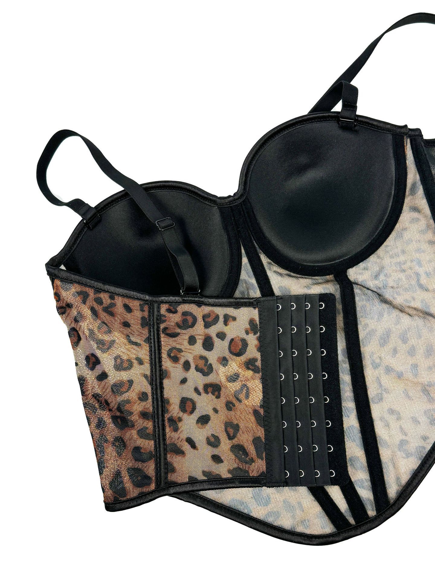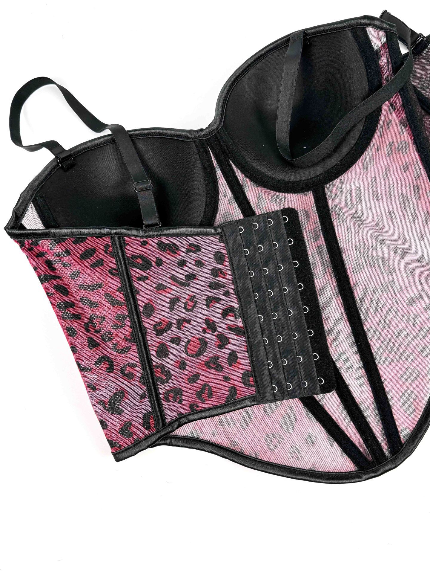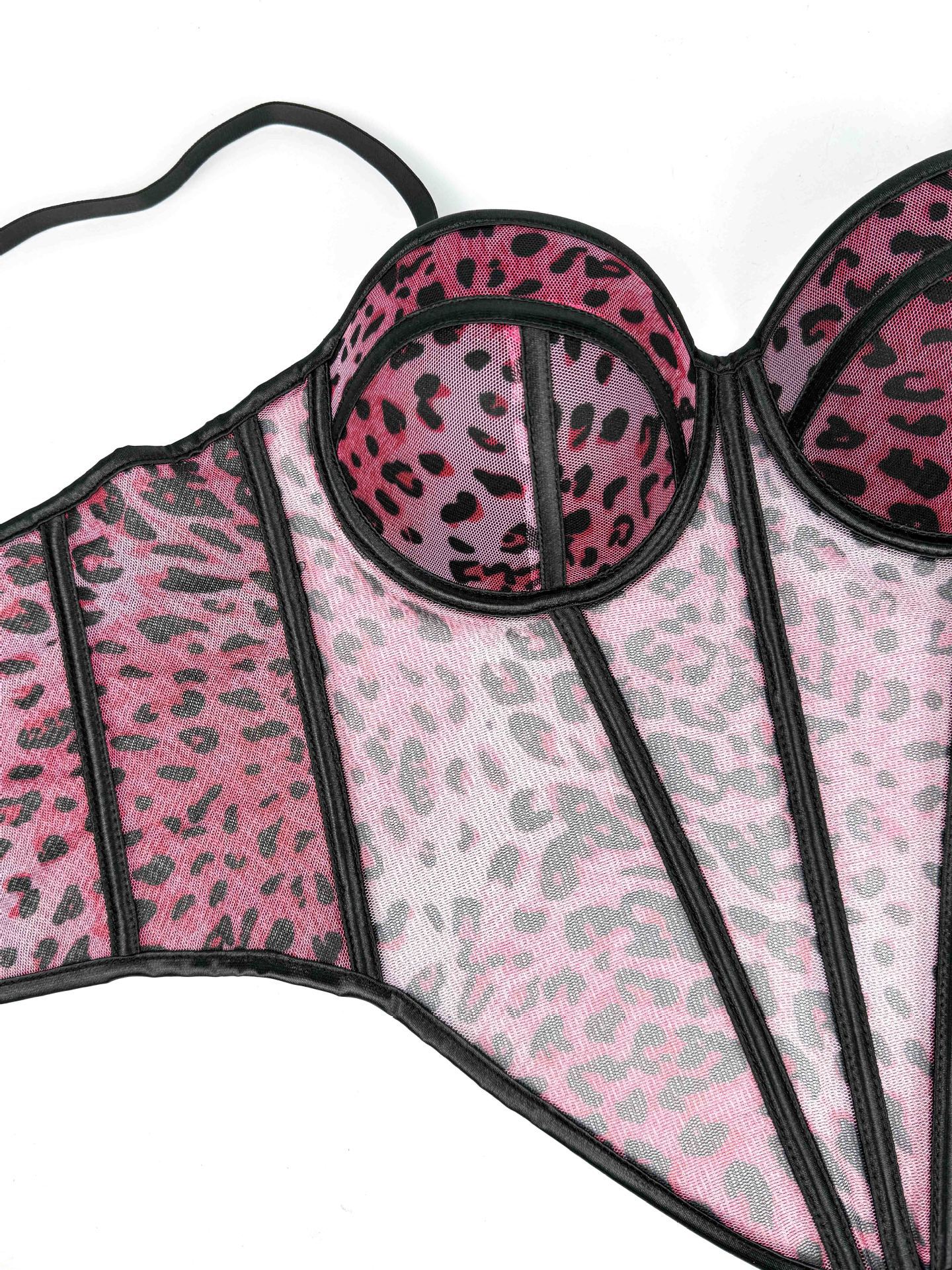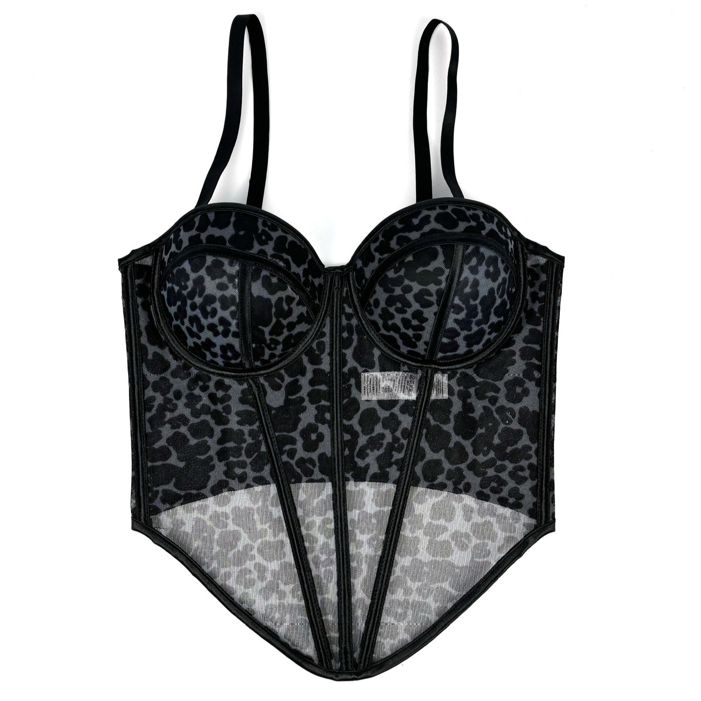 섹시한 레오파드 도트 패턴 스플라이스 브라와 슬링, 하이엔드 이너 메쉬 레이스 시스루 아우터 피쉬본 브라 쉐이핑스토어 가기