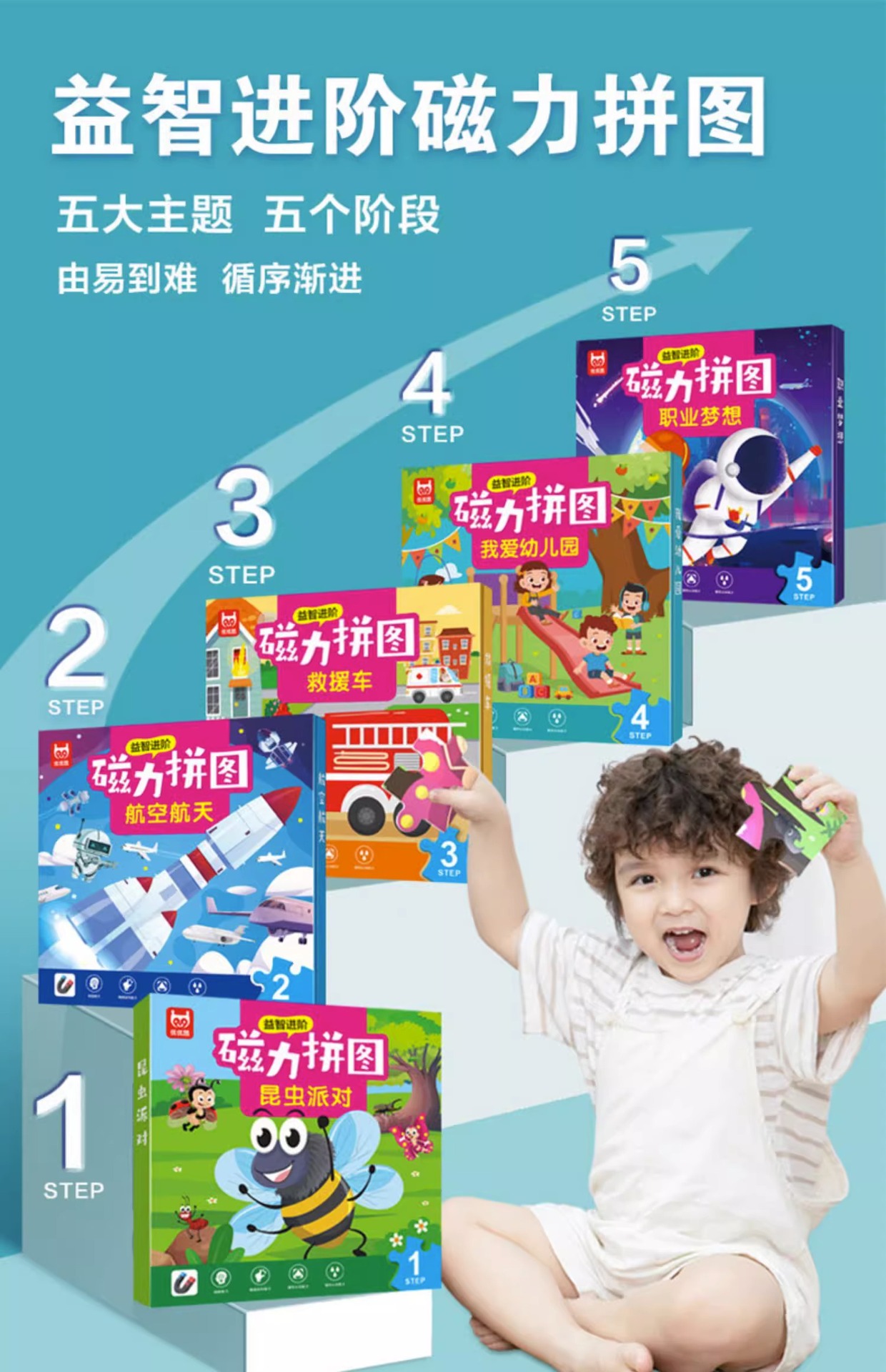 어린이 고급 자석 퍼즐 유아 아기 조기 교육 교육 장난감 자기 평면 그림 사다리 퍼즐 3 ~ 6 세 45스토어 가기