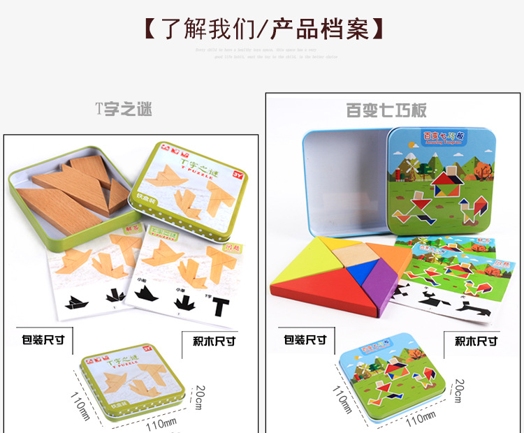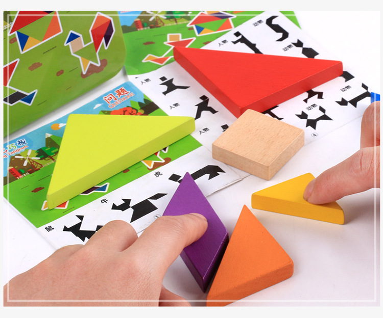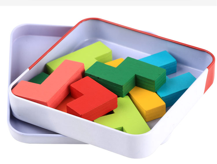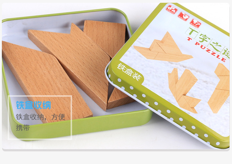 나무 철 상자 tangram T자형 퍼즐 4 tangram 테트리스 퍼즐 퍼즐 빌딩 블록 어린이 장난감스토어 가기