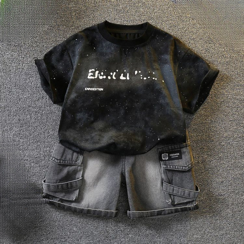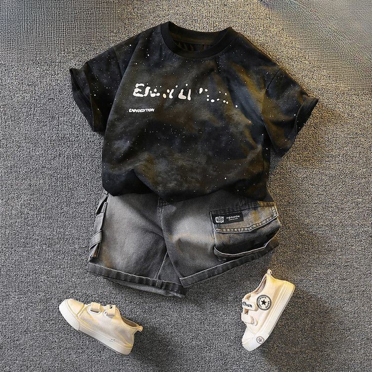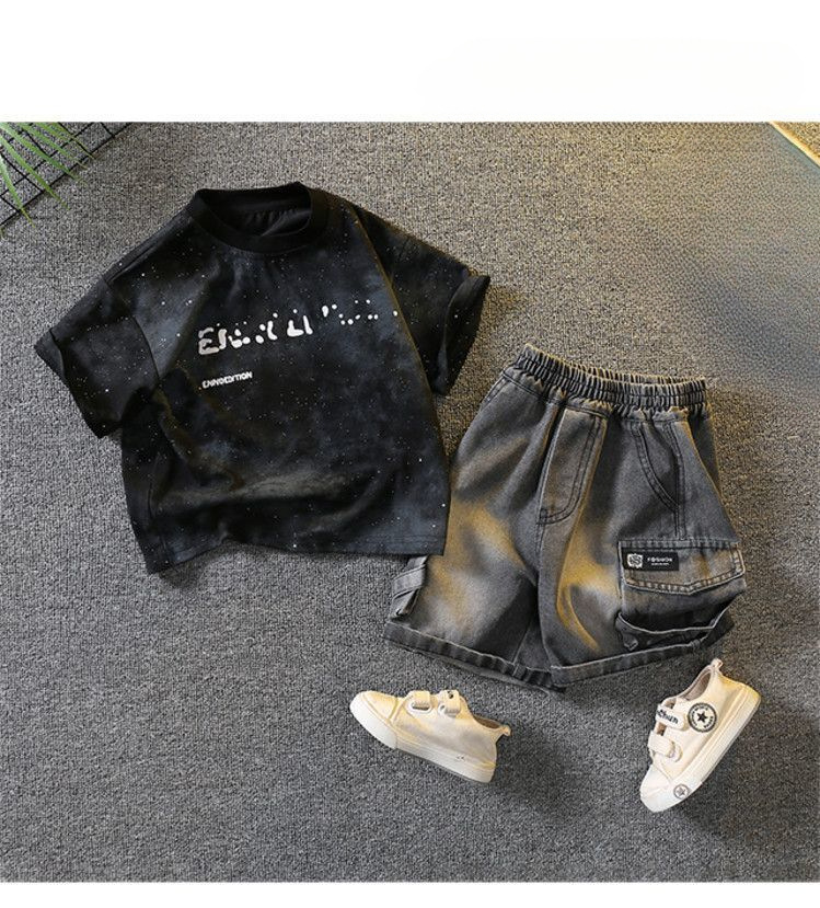 소년 여름 세트 2025 새로운 스타일 어린이 얇은 민소매 옷 아기 반바지 조끼 2 피스 유행 세트