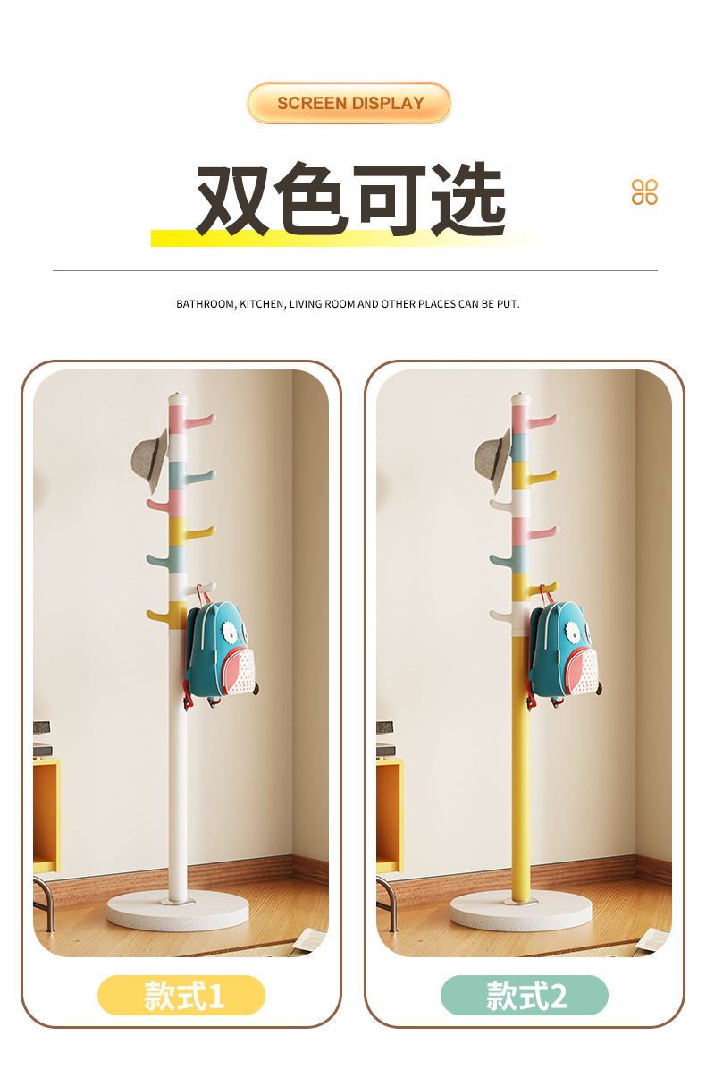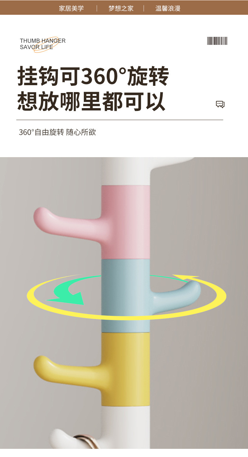 플로어 스탠딩 가정용 마카롱 옷걸이 일본과 한국 스타일 회전식 수납 옷걸이 귀여운 아동복 걸이