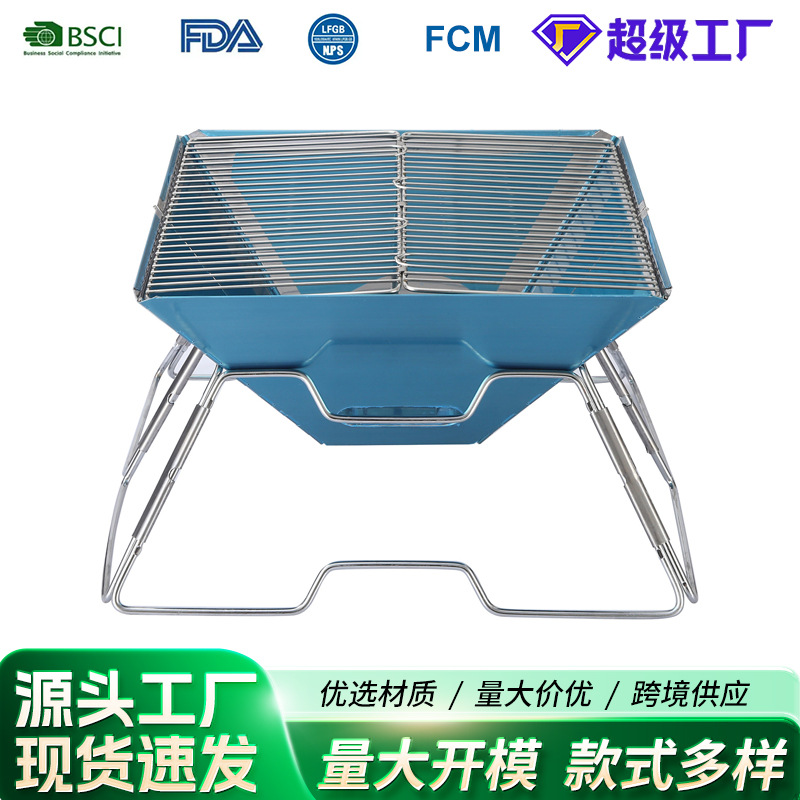 소형 4각 스테인레스 스틸 휴대용 접이식 맞춤형 바베큐 그릴 분할 야외 캠핑 바베큐 그릴 도매스토어 가기