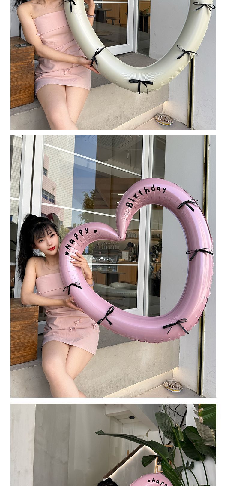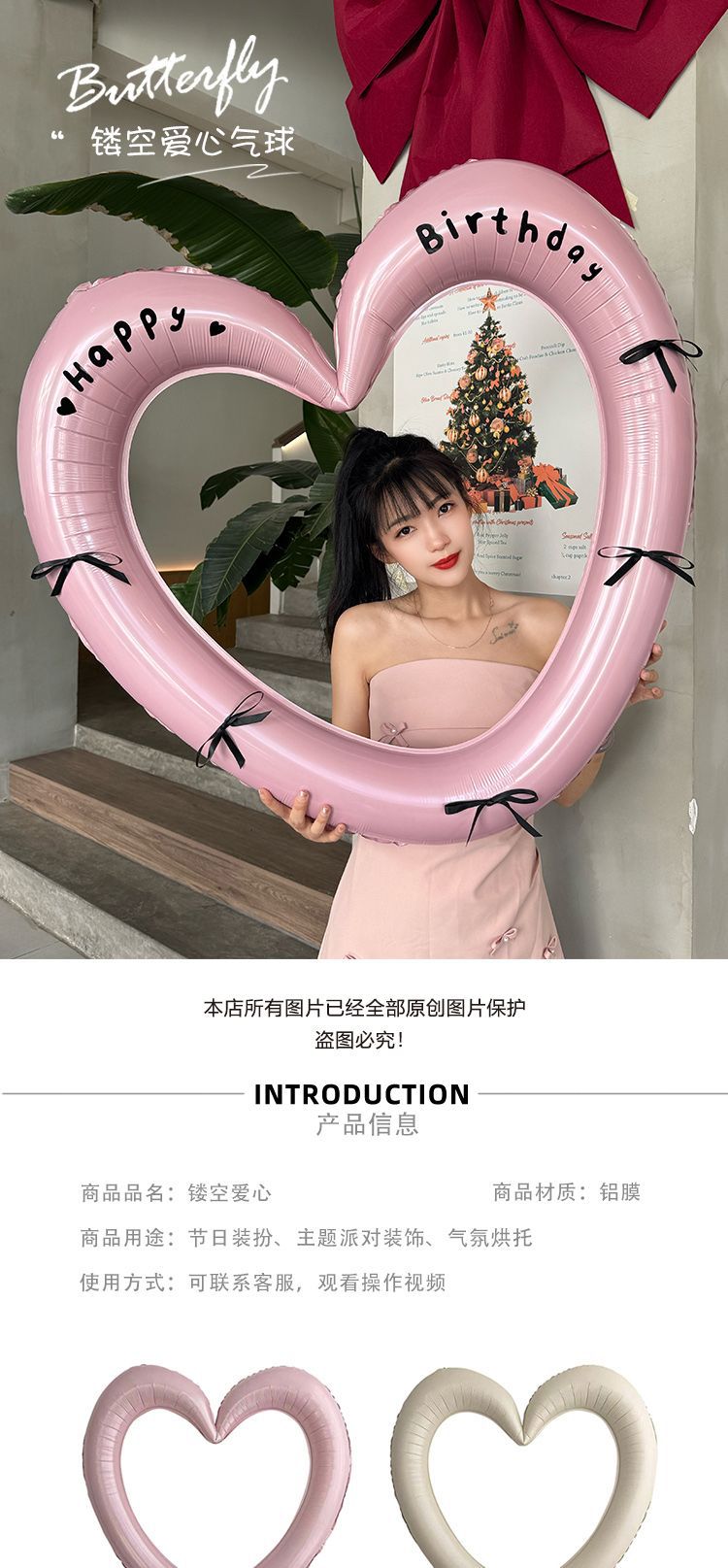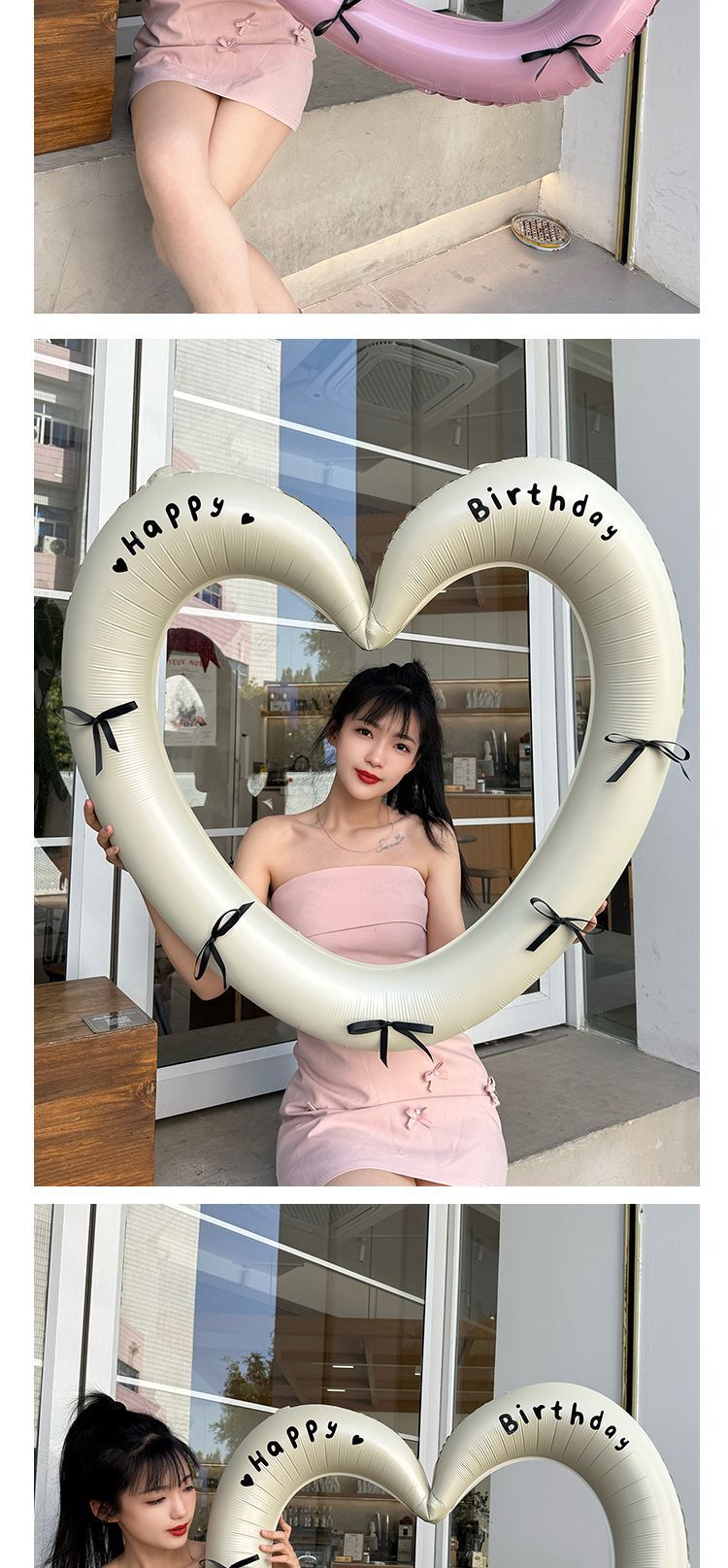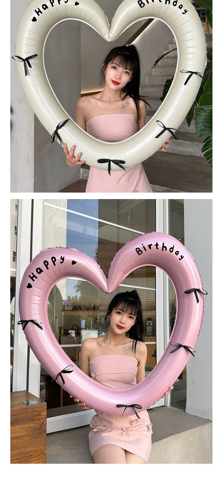 • 크림 컬러 할로우 러브 풍선 40inch개 (스티커 + 리본)