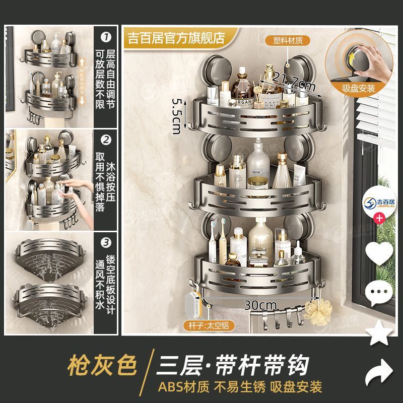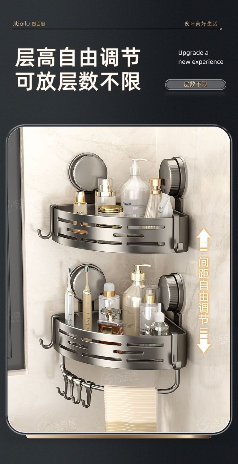 공장에서 펀치 없는 욕실 선반, 다층 삼각대, 샤워 젤 보관함, 보관함을 공급합니다.스토어 가기