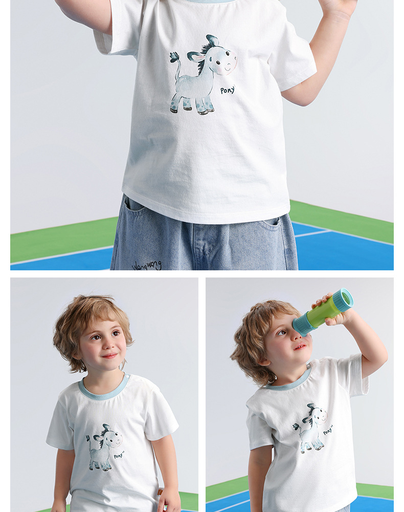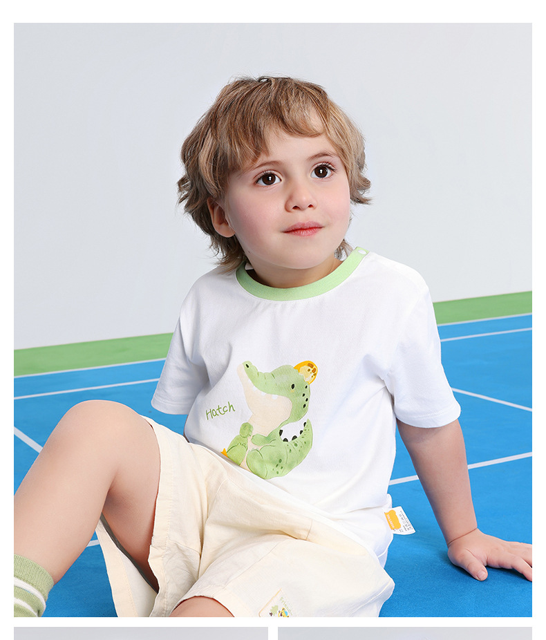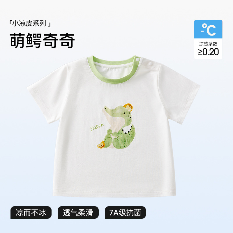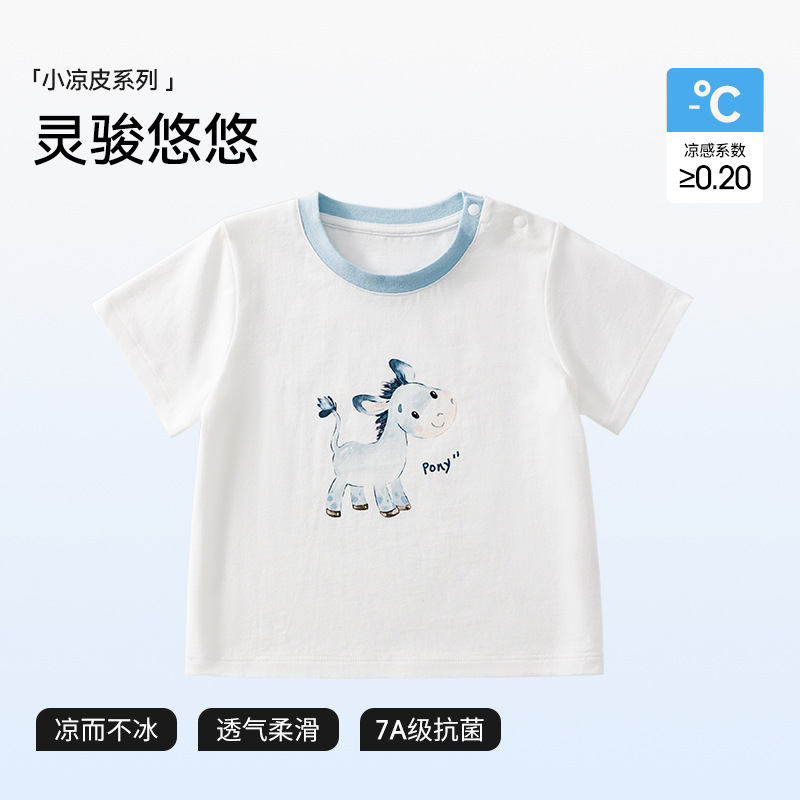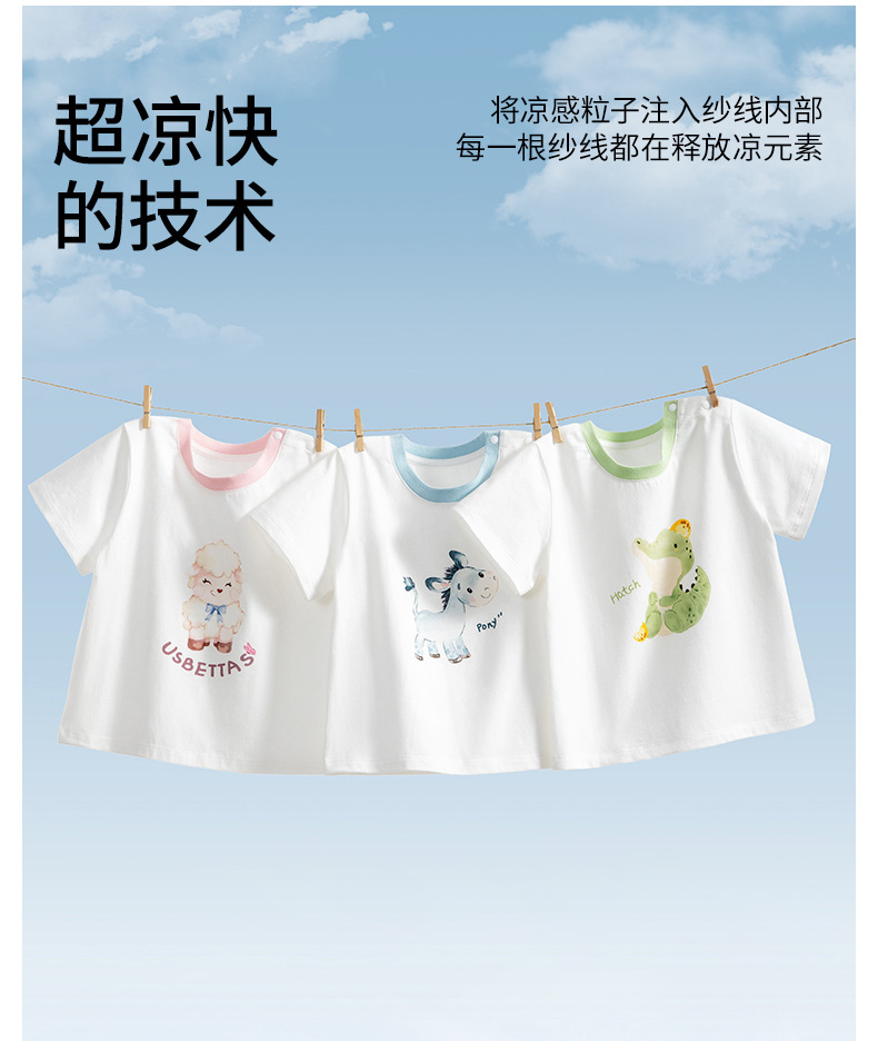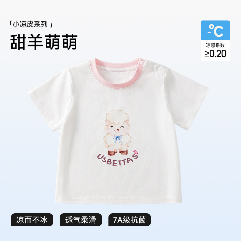 BETUS 어린이 반팔 2025 새로운 여름 소년과 소녀 아기 순면 항균 통기성 반팔 라운드 넥 티셔츠스토어 가기