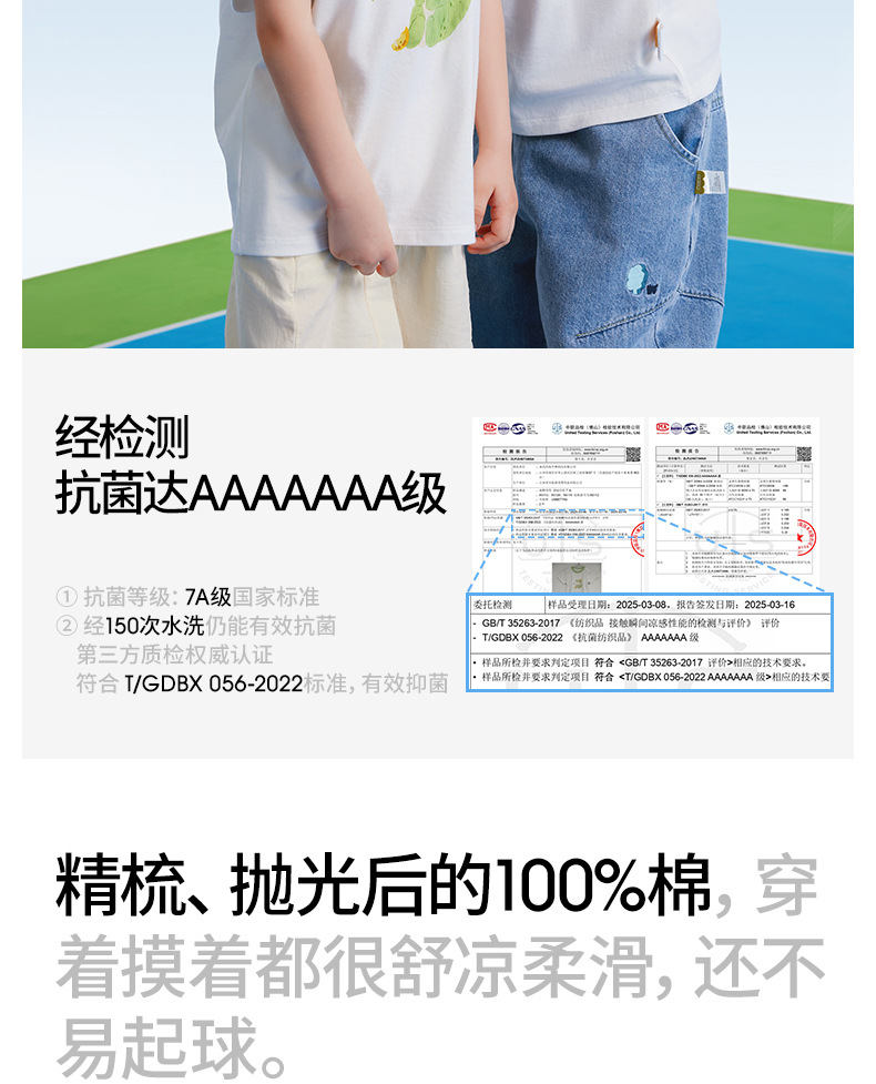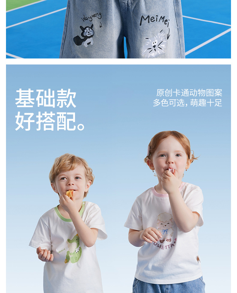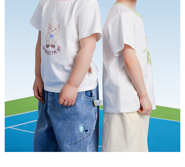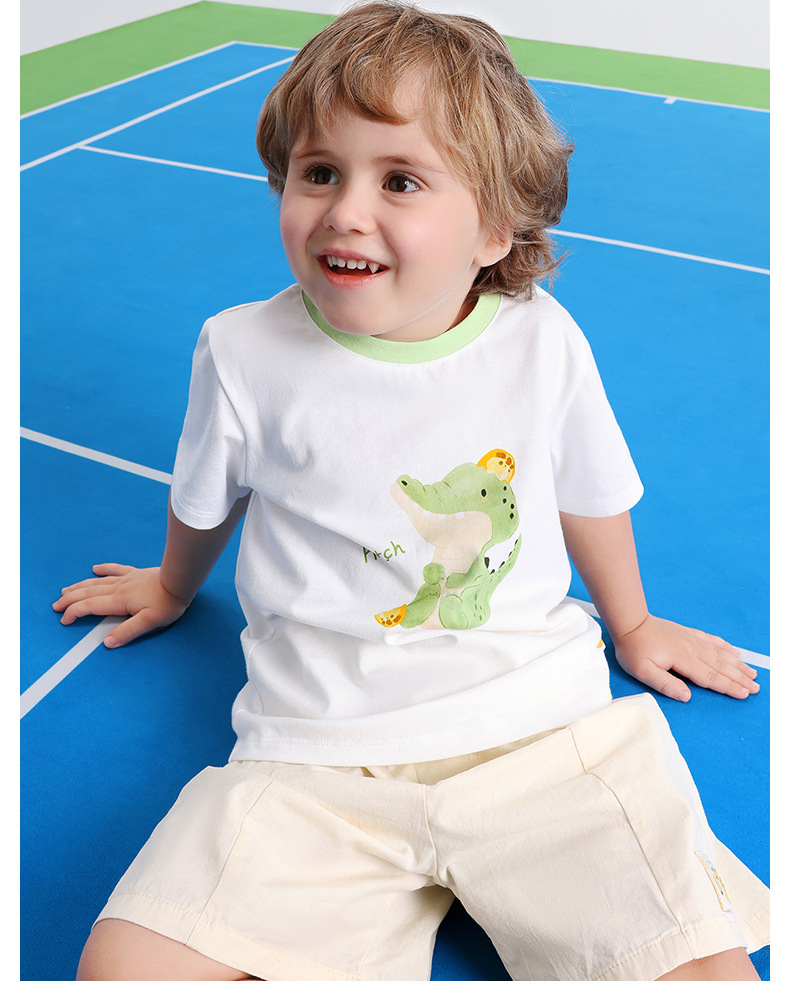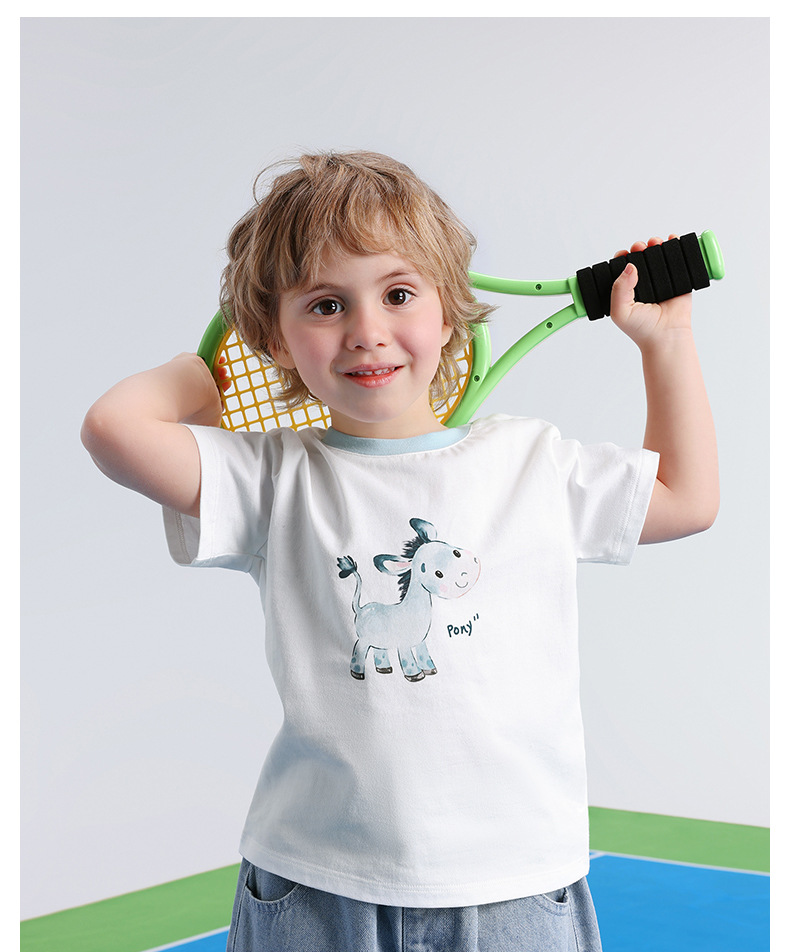 BETUS 어린이 반팔 2025 새로운 여름 소년과 소녀 아기 순면 항균 통기성 반팔 라운드 넥 티셔츠스토어 가기