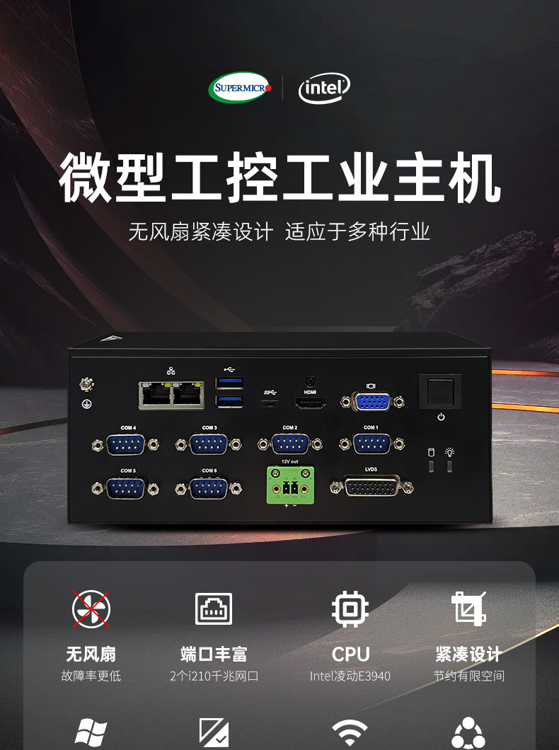Insinoth E100 산업용 제어 호스트 E3940 쿼드 코어 저전력 소비 듀얼 네트워크 포트 6COM 포트는 세 개의 디스플레이를 지원합니다.