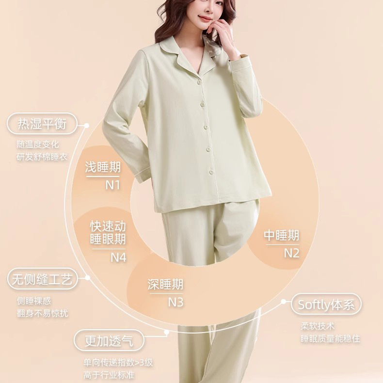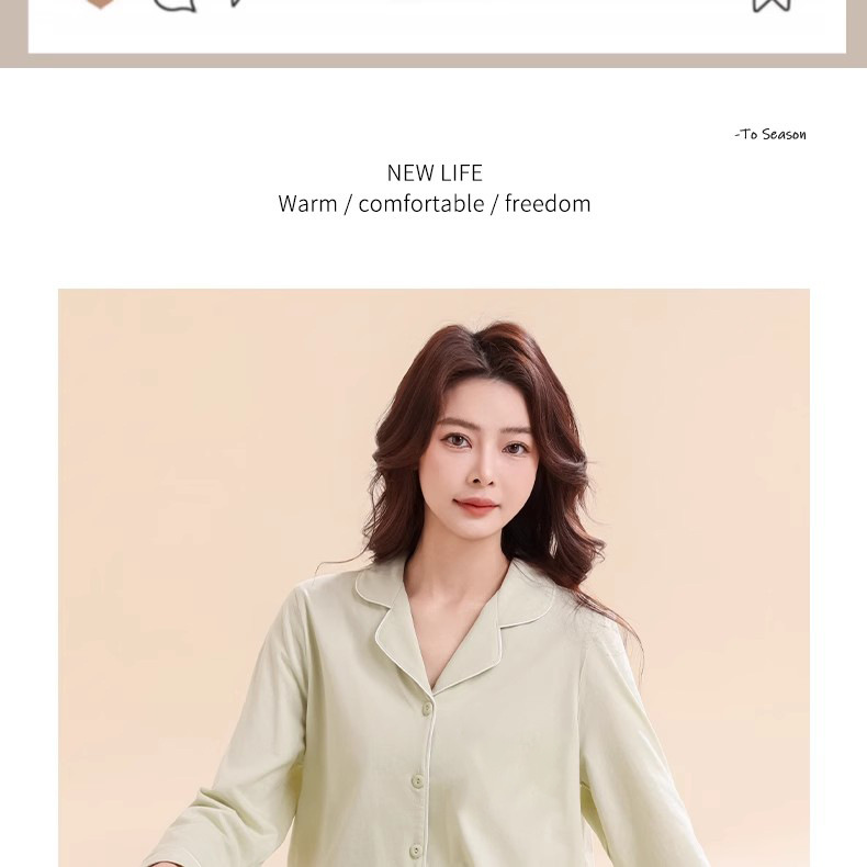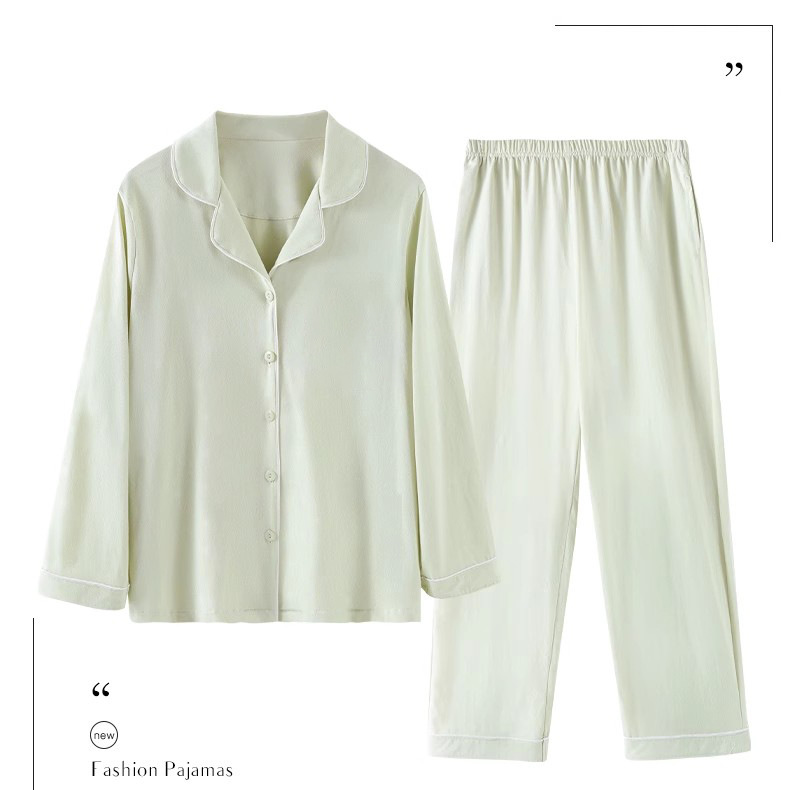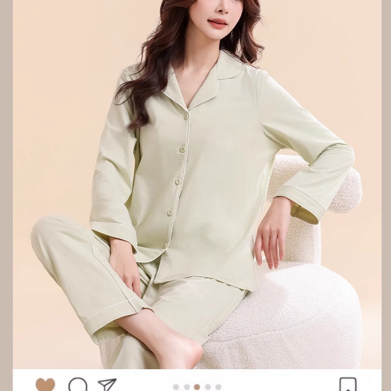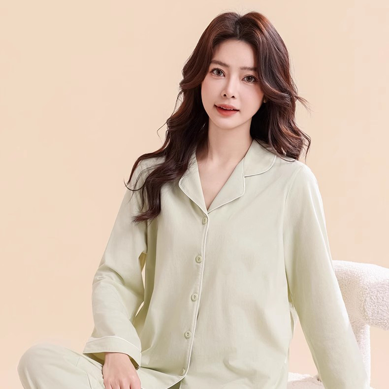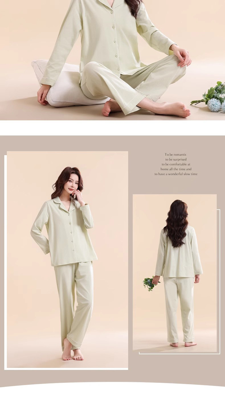 여성용 잠옷, 여아용 면 100% 가정복, 면 통기성 단색 가디건, 캐주얼 긴팔 바지 세트스토어 가기