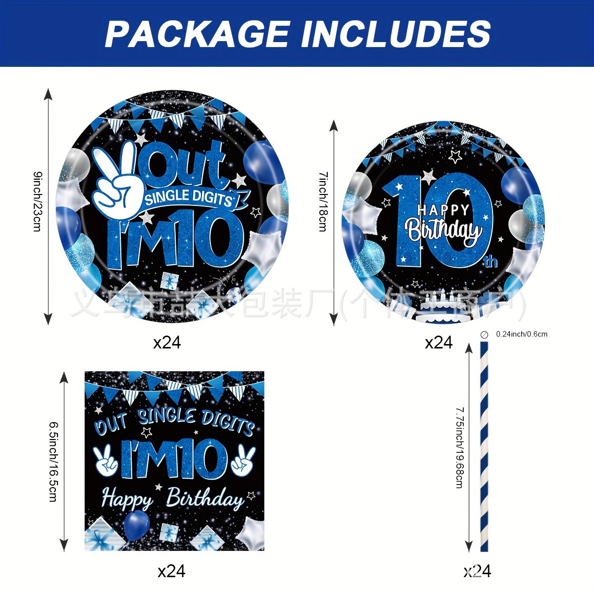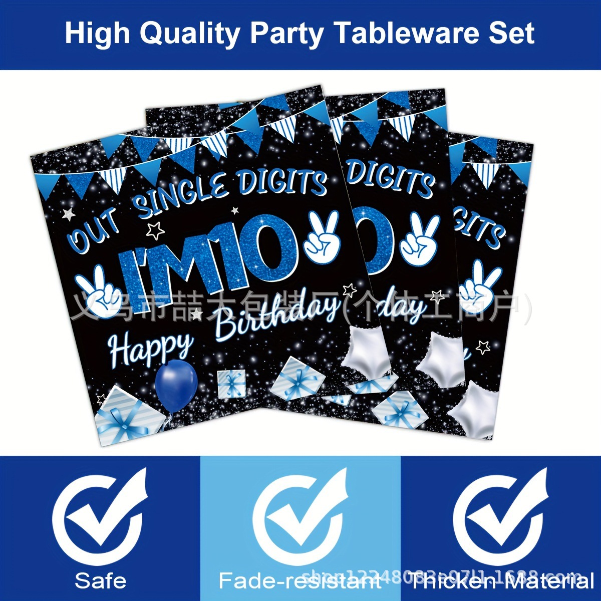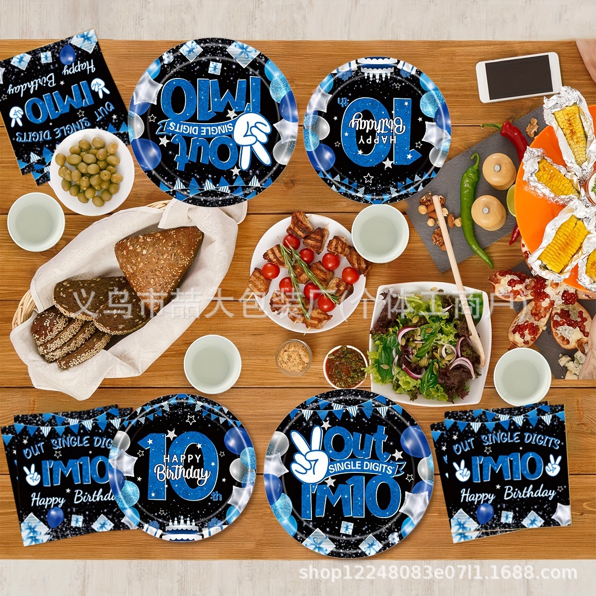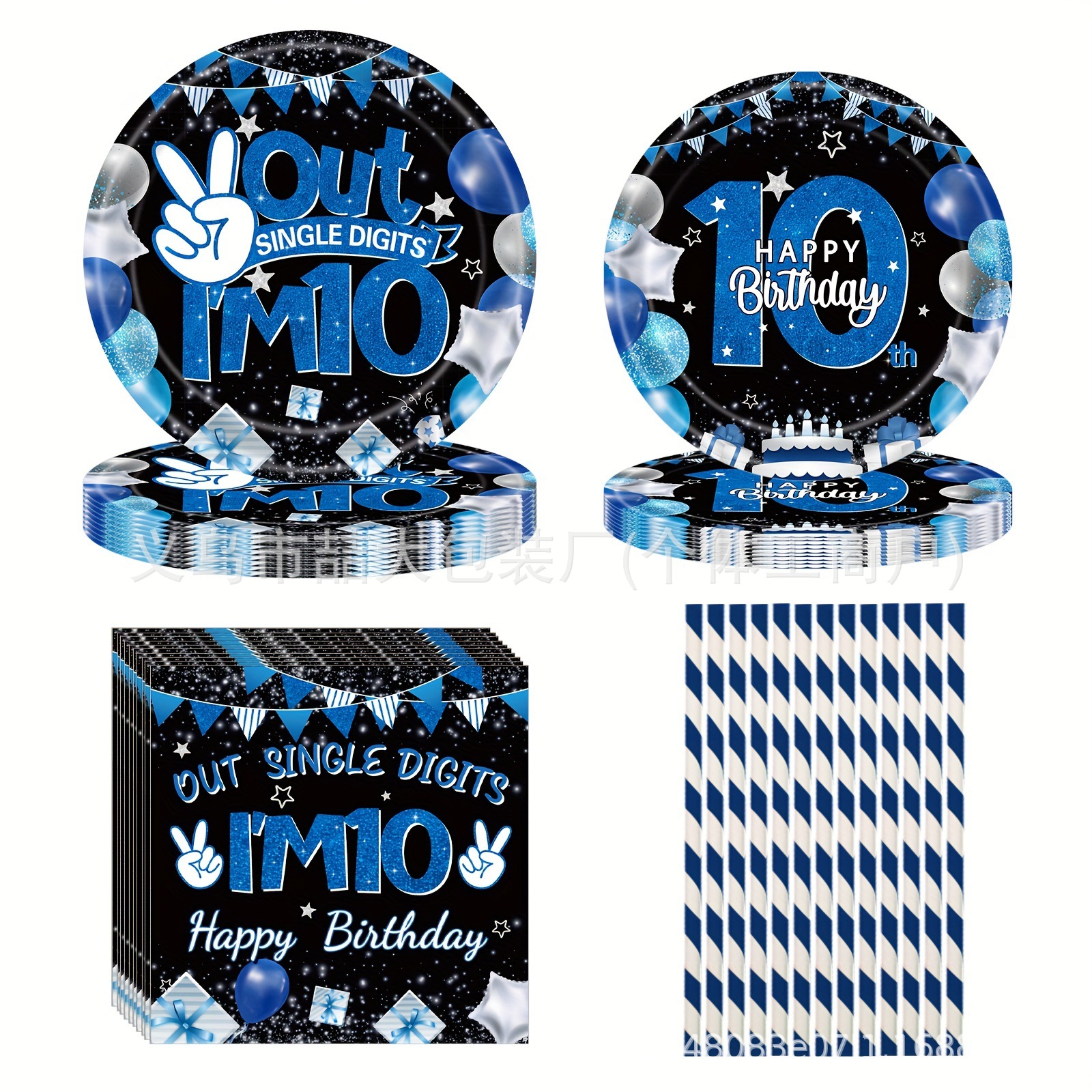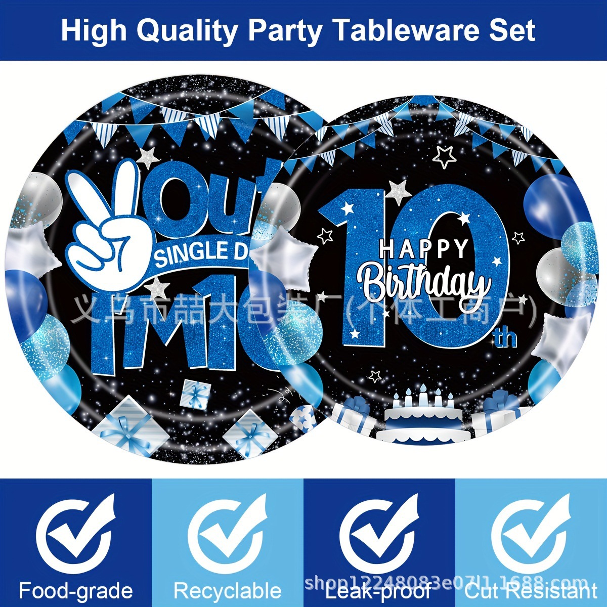 진한 파란색 소년 풍선 10 세 테마 파티 일회용 식기 세트 10 세 종이 접시 티슈 파티 장식스토어 가기