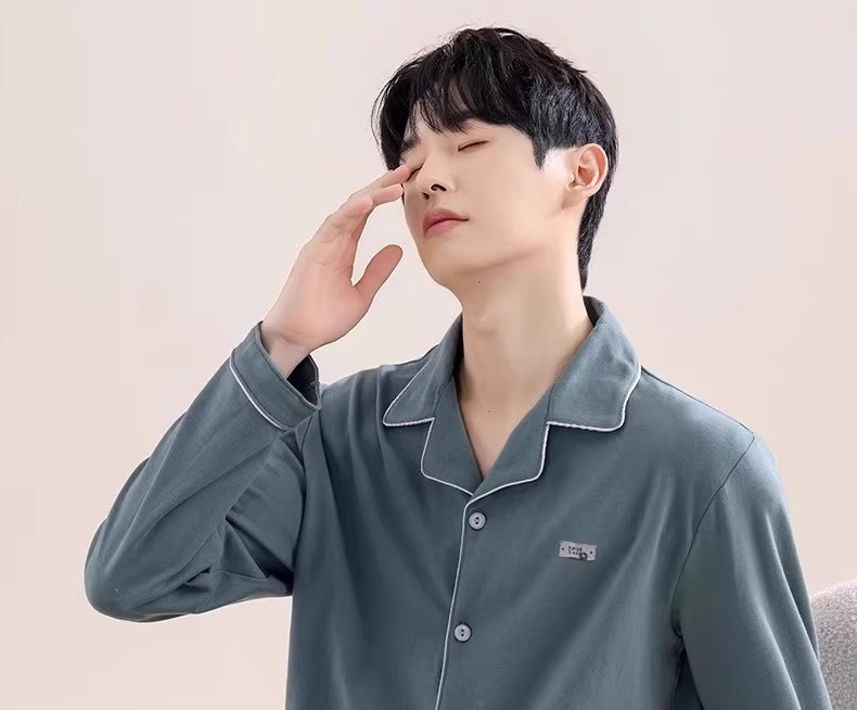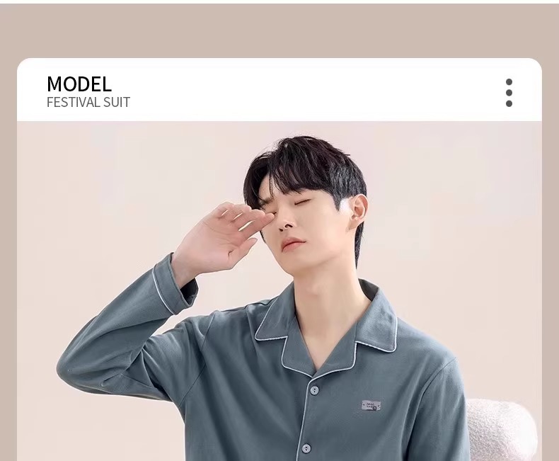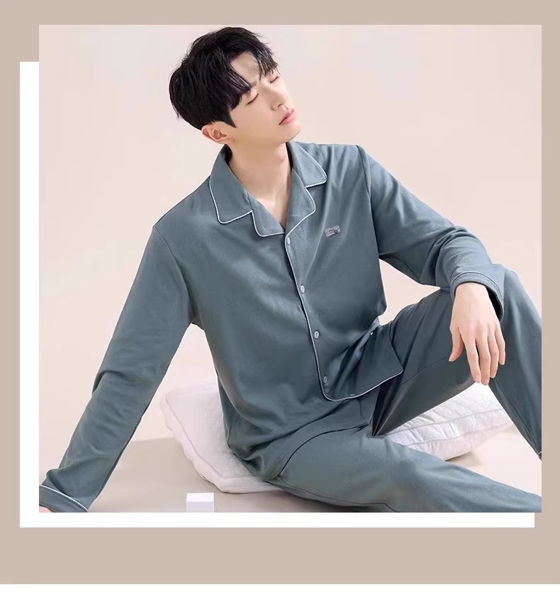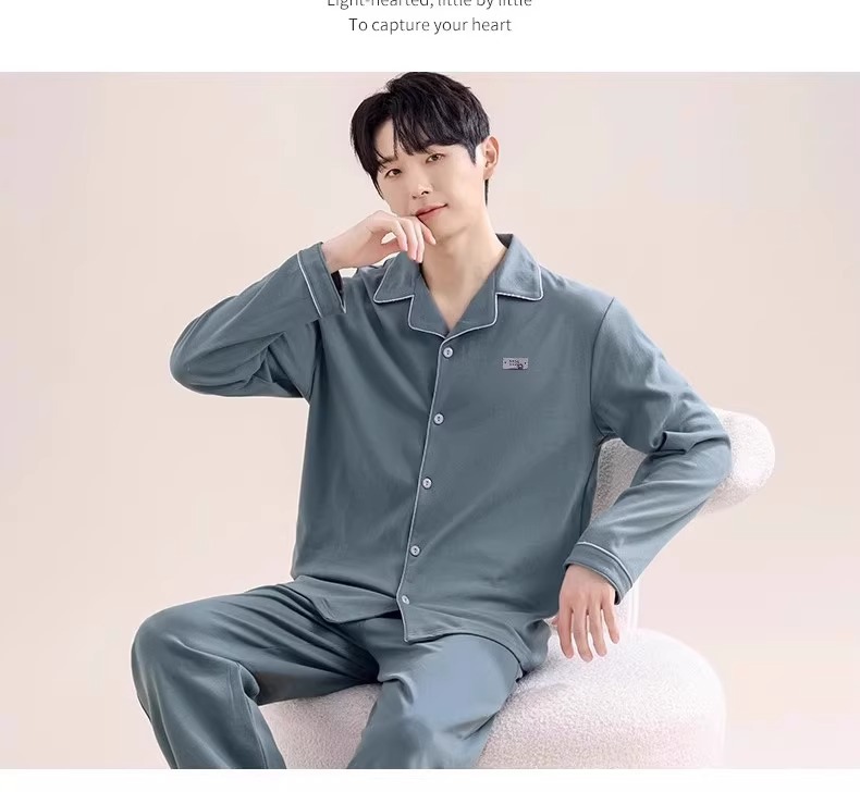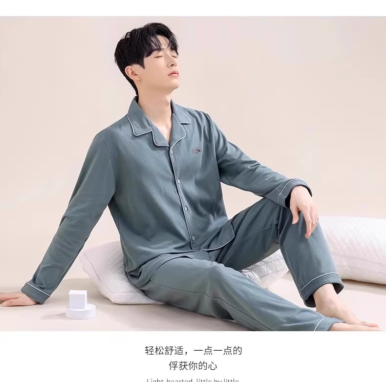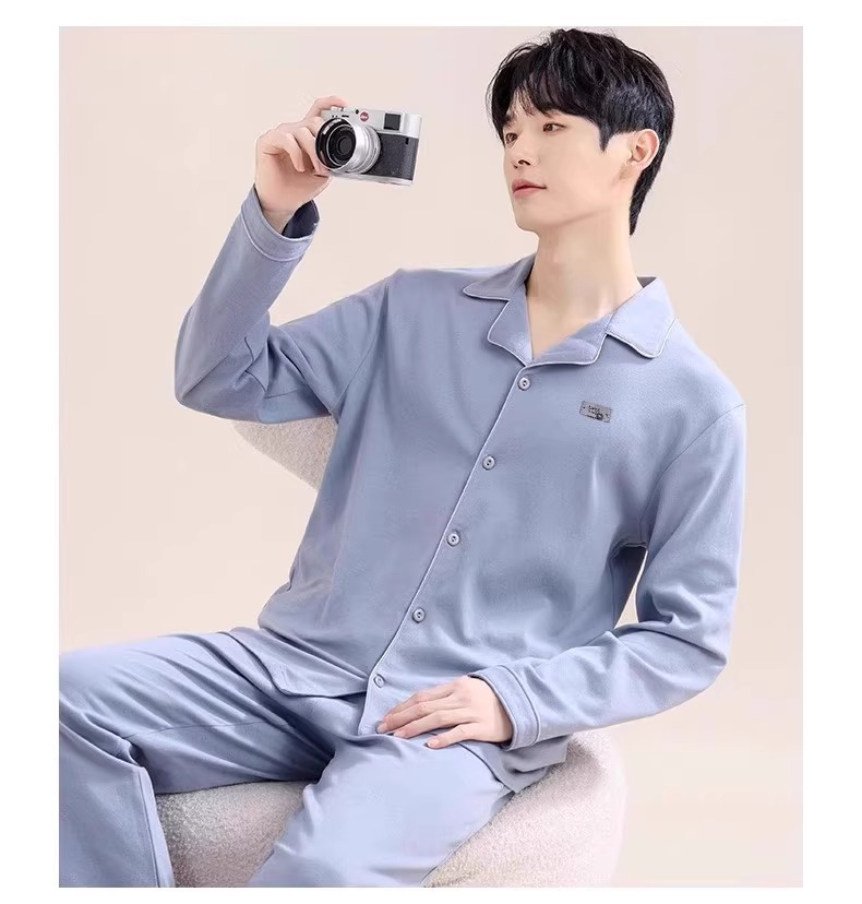 남성 잠옷 남성용 순면 홈웨어 여름 루즈핏 긴팔 긴바지 순면 세트 2025 신상 봄 가을 스타일스토어 가기