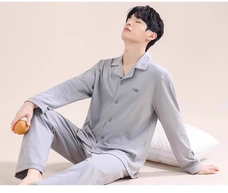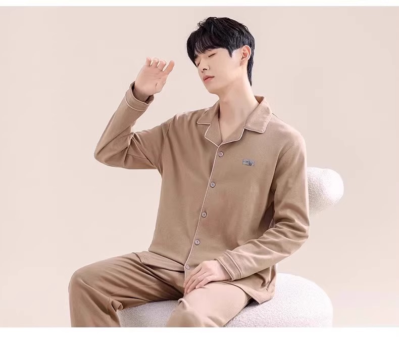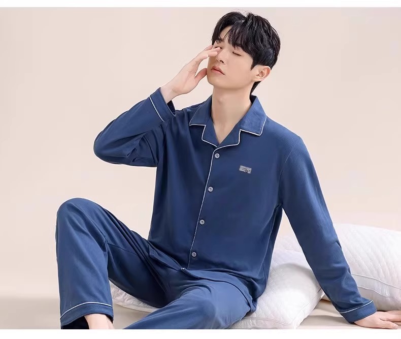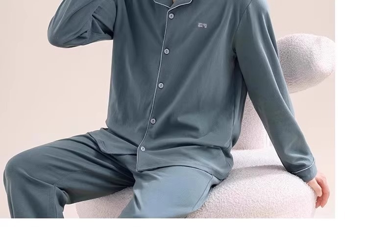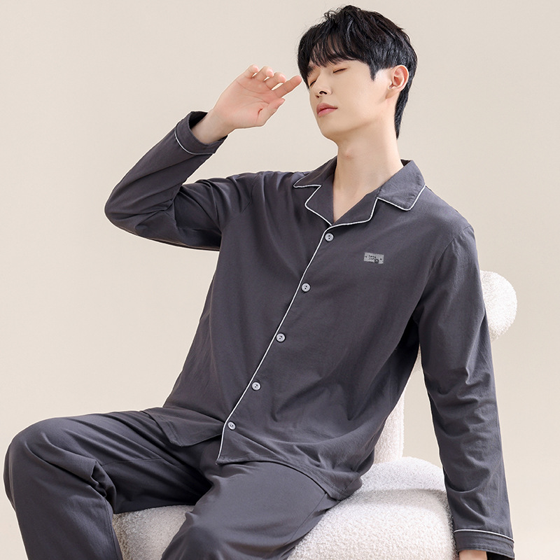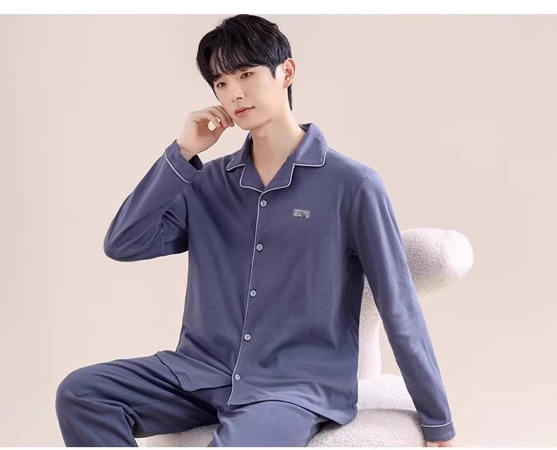 남성 잠옷 남성용 순면 홈웨어 여름 루즈핏 긴팔 긴바지 순면 세트 2025 신상 봄 가을 스타일스토어 가기