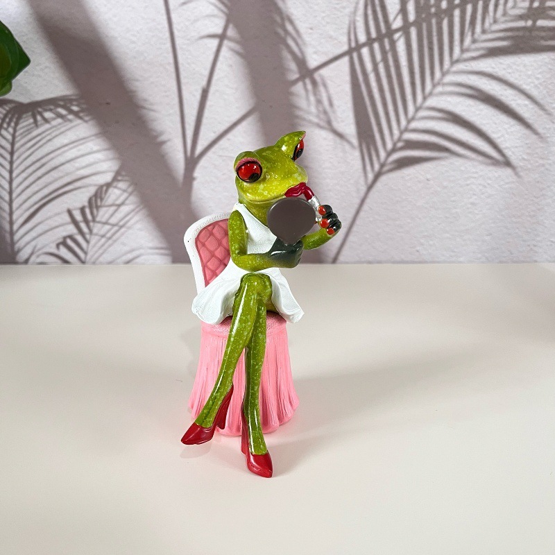 국경 간 개구리 장식품 유럽과 미국의 목가적 인 스타일 립스틱 홈 인테리어 거실 데스크탑 안뜰 정원 수지 공예품