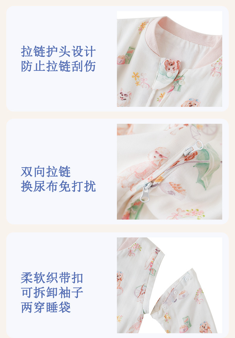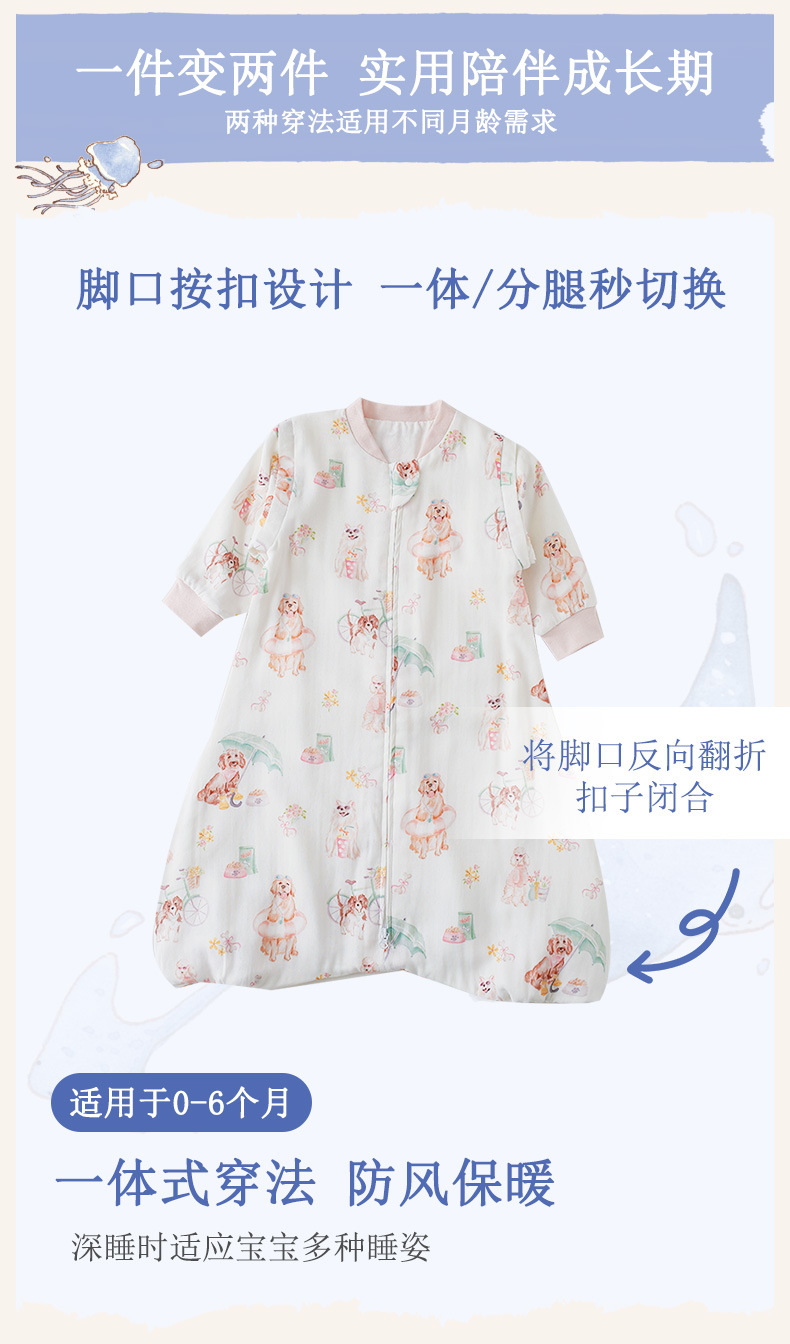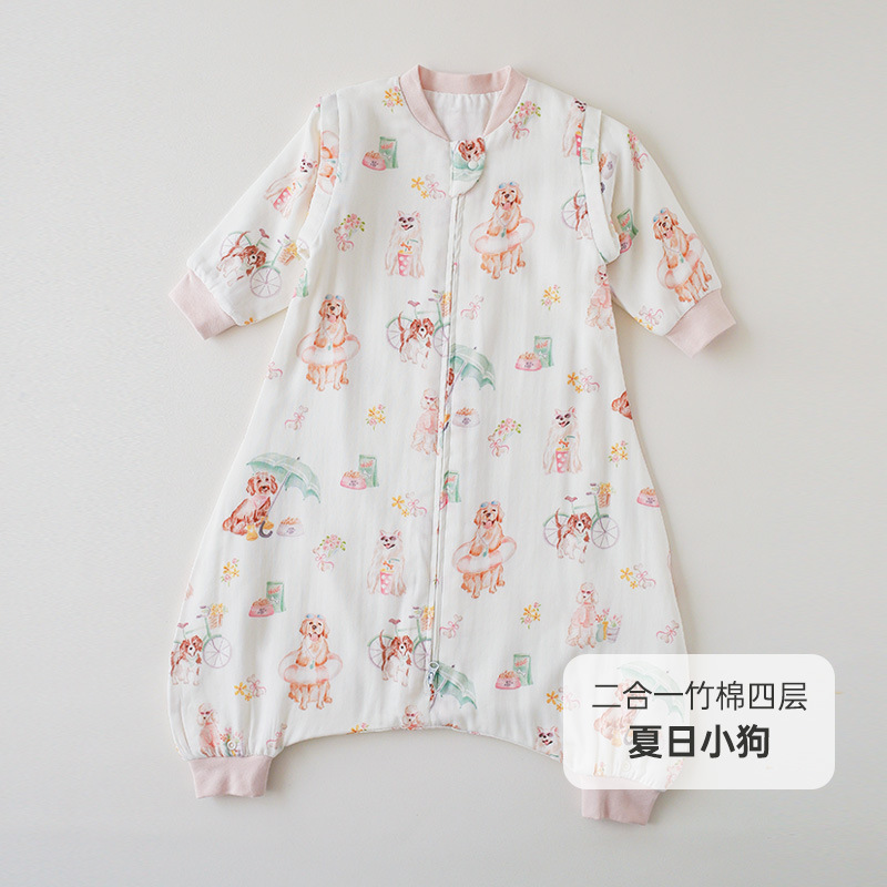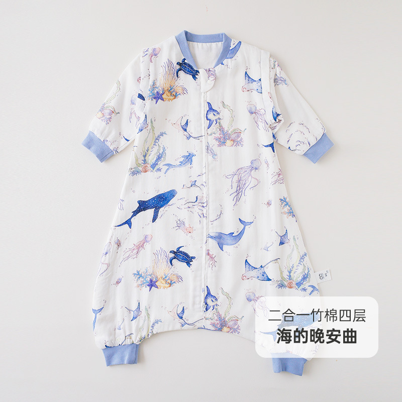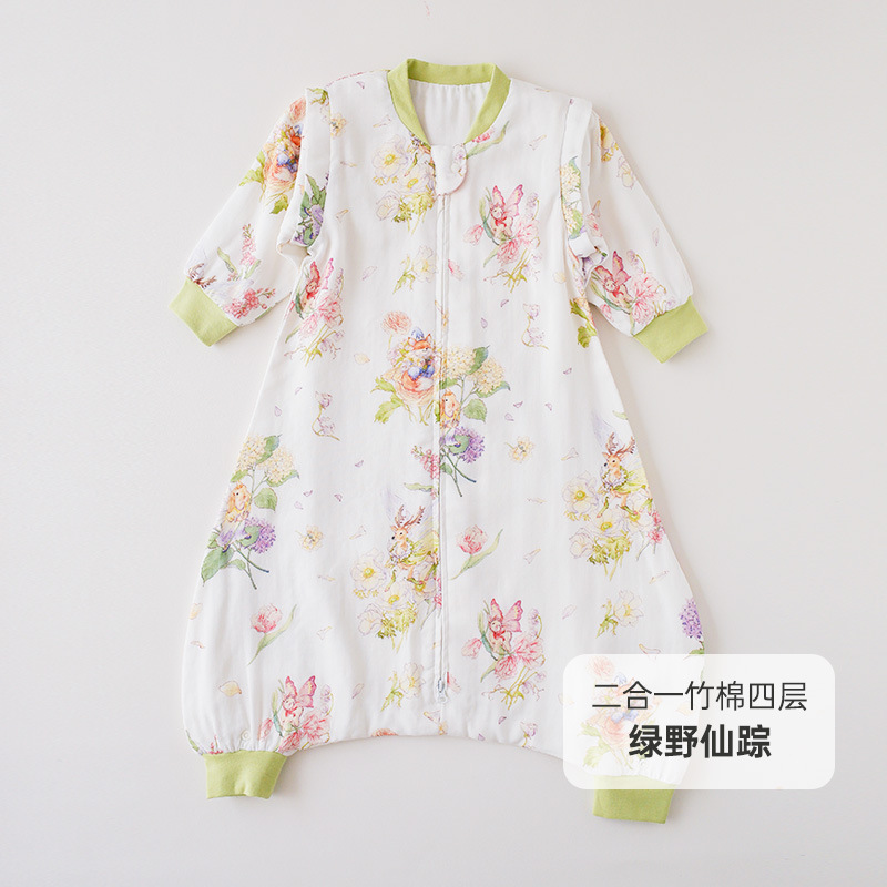 안단26 신제품 4겹 대나무 면 거즈 2-in-1 아기 침낭 탈부착 가능한 소매가 있는 사계절용 아기 침낭