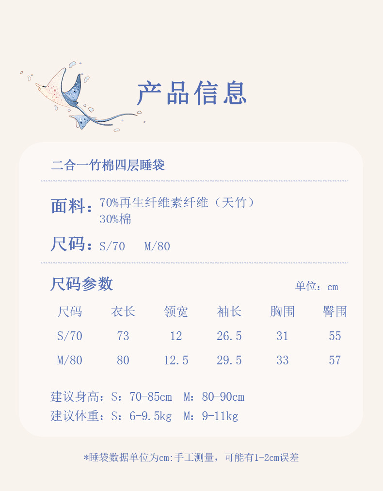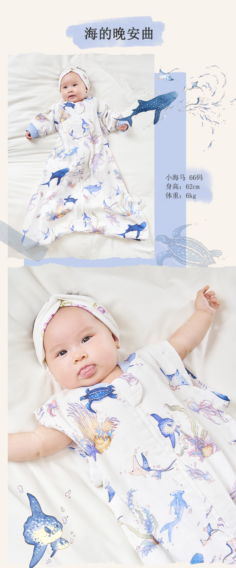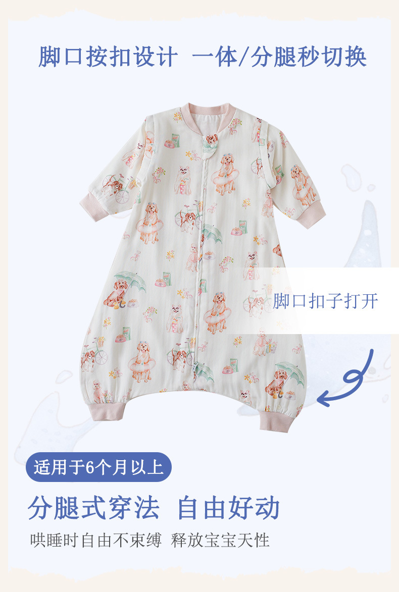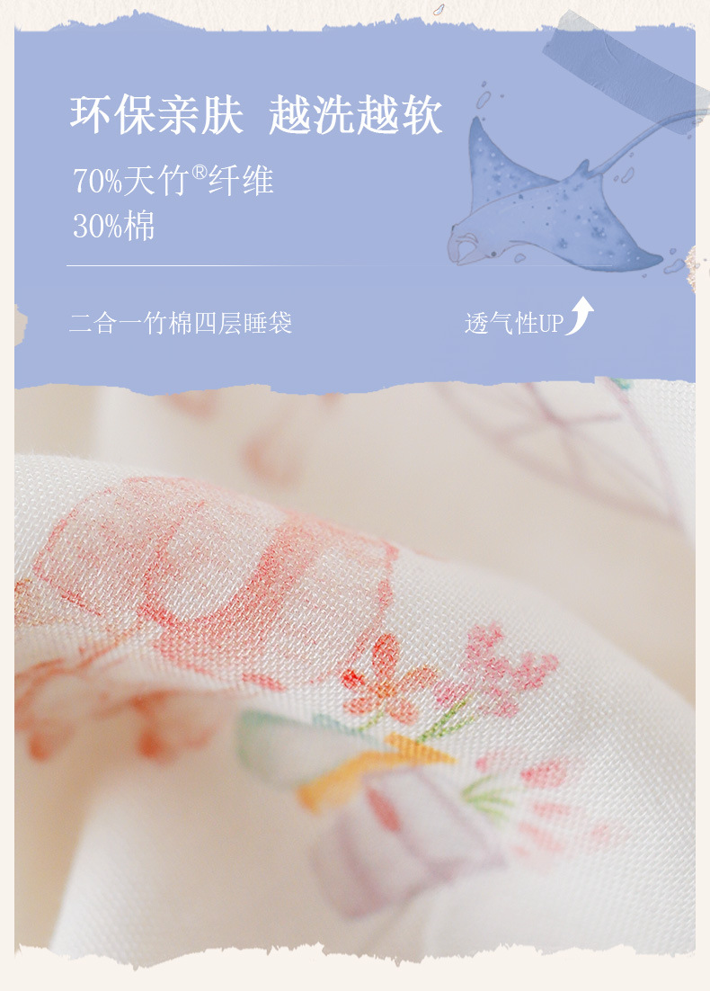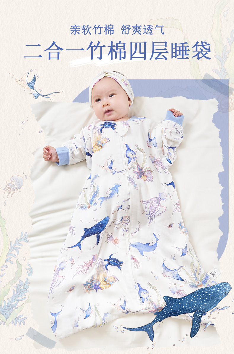 안단26 신제품 4겹 대나무 면 거즈 2-in-1 아기 침낭 탈부착 가능한 소매가 있는 사계절용 아기 침낭