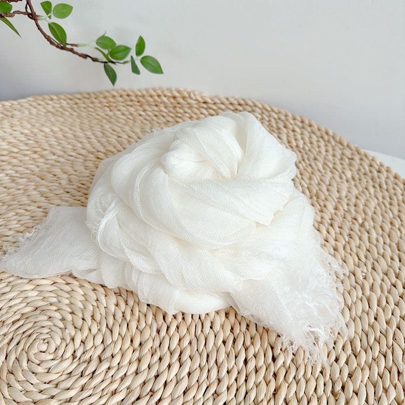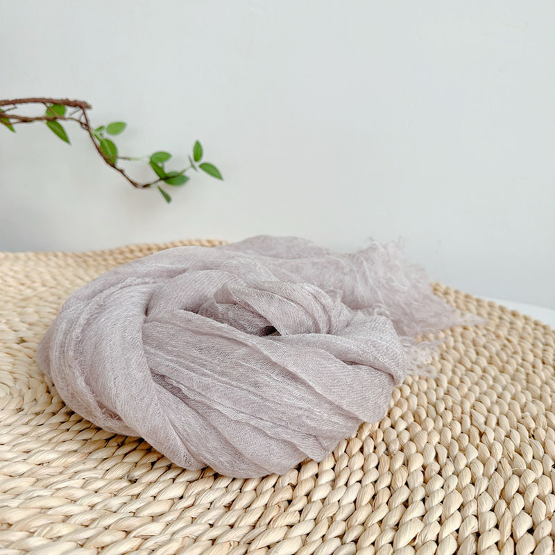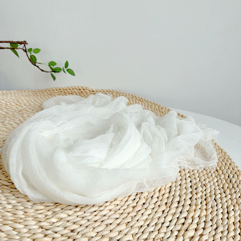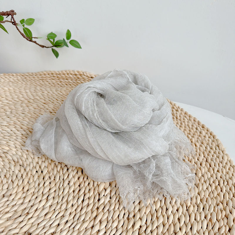 레트로 주름 솔리드 컬러 텐셀 울 스카프, 다용도 여름 목 보호, 이중 목적 대형 숄, 여성용 가볍고 통기성이 뛰어난 실크 스카프