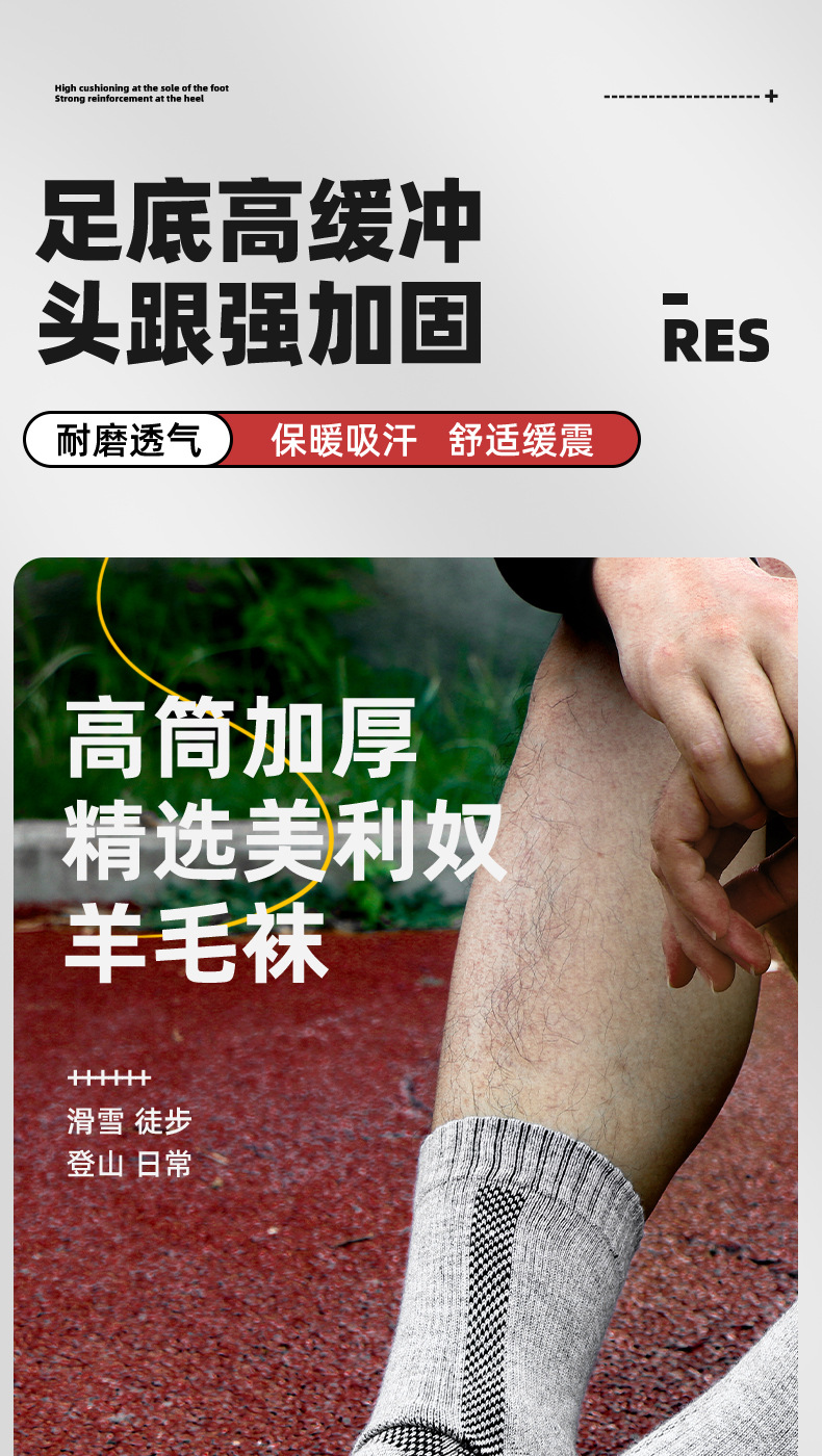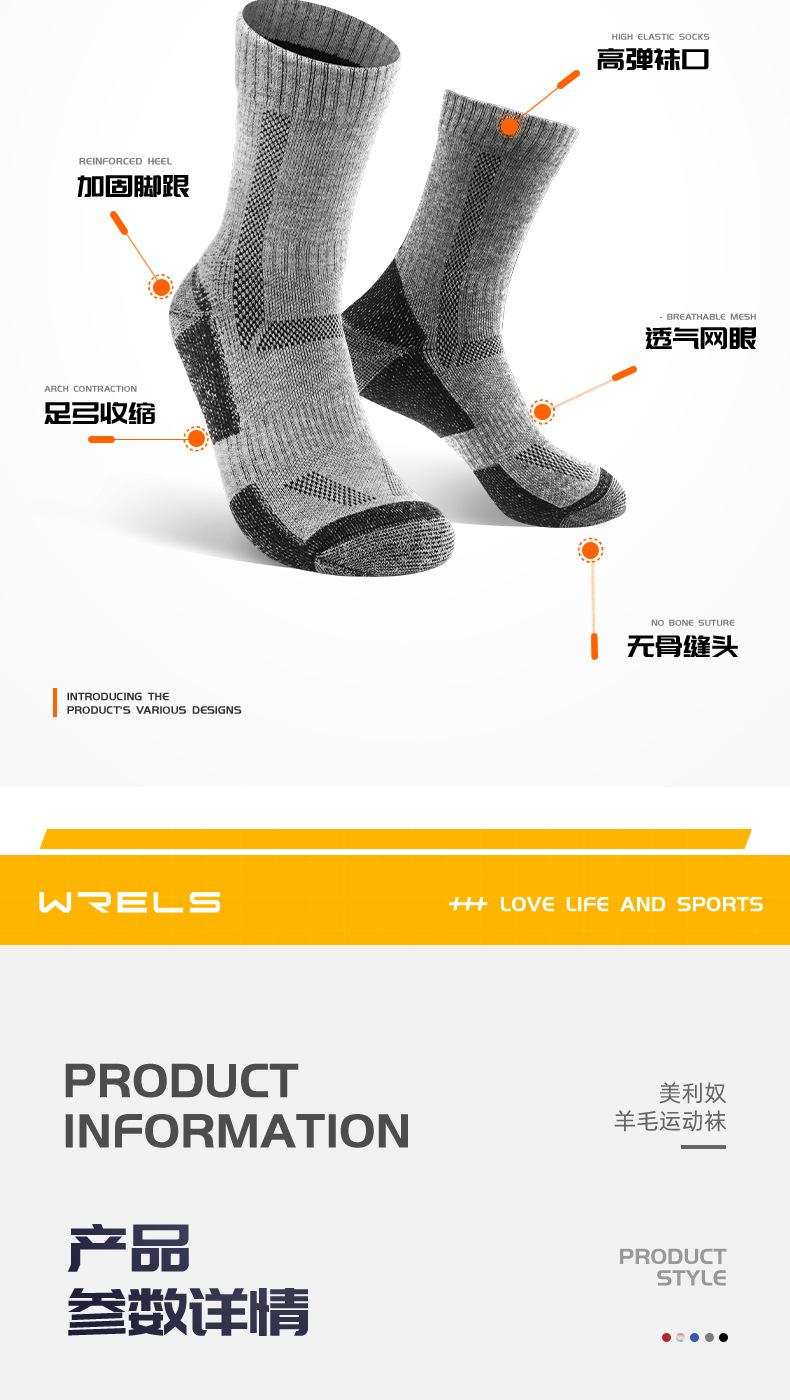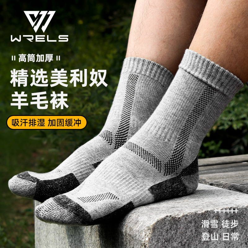 WRELS 야외 메리노 울 양말 스키 양말 남자 하이 튜브 두꺼운 가을과 겨울 따뜻한 사이클링 스포츠 양말