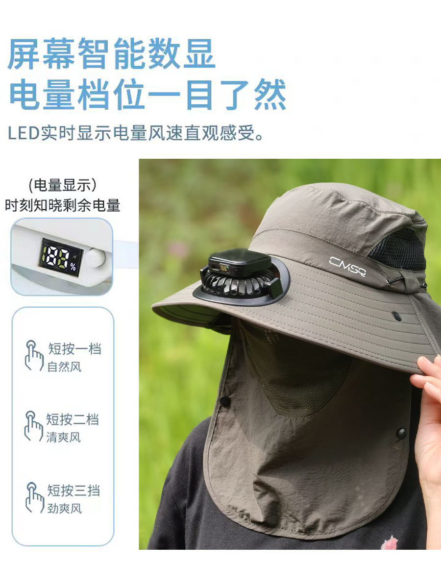 태양 팬 모자 남자 야외 등산 모자 여름 태양 보호 낚시 모자 선풍기와 성인 모자스토어 가기