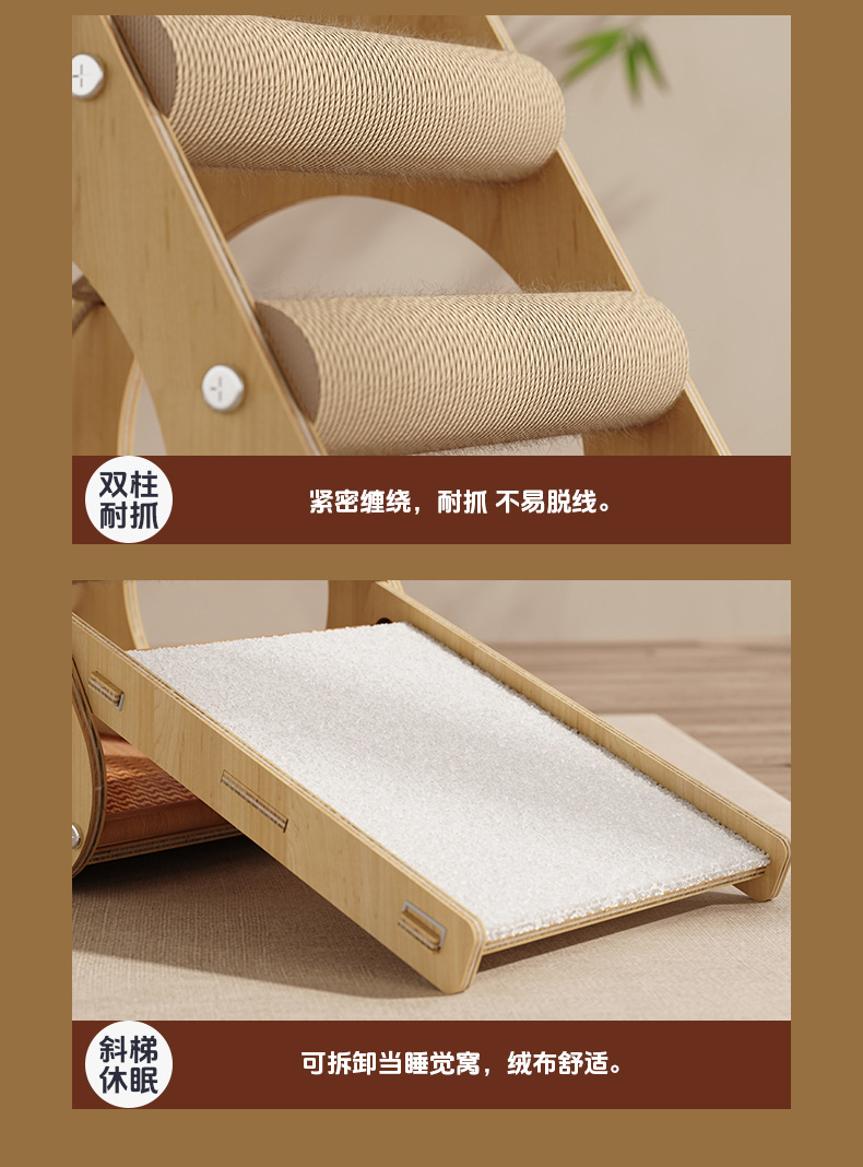 고양이 클라이밍 프레임, 원목 사마귀 고양이 스크래치 보드, 고양이 둥지, 일체형 사마귀, 내마모성 및 비분해성 고양이 장난감, 애완동물 용품스토어 가기