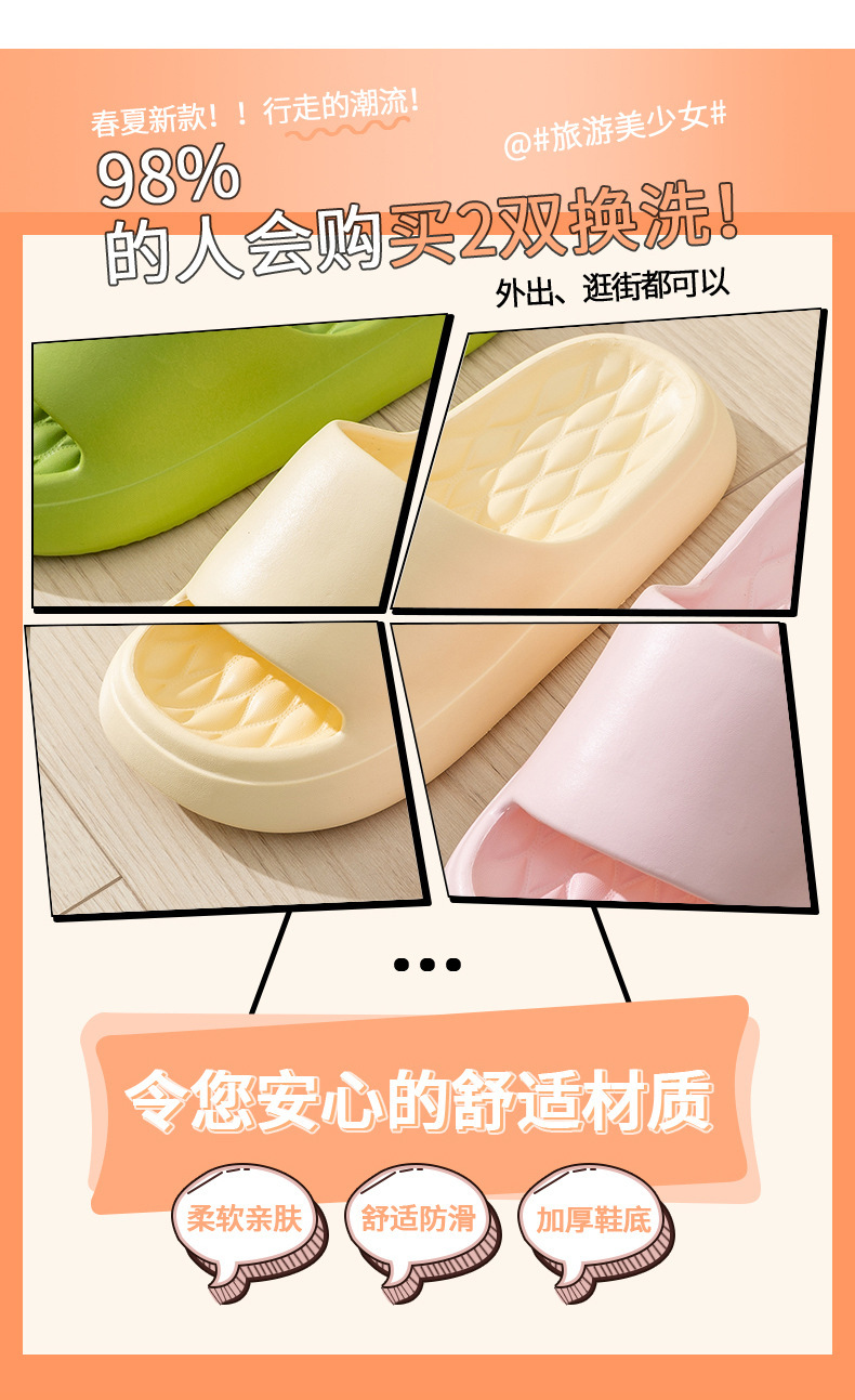 Stomp Feeling EVA 슬리퍼 여성 여름 가정용 미끄럼 방지 욕실 커플 두꺼운 밑창 내마모성 홈 남성용 부드러운 밑창 샌들과 슬리퍼스토어 가기