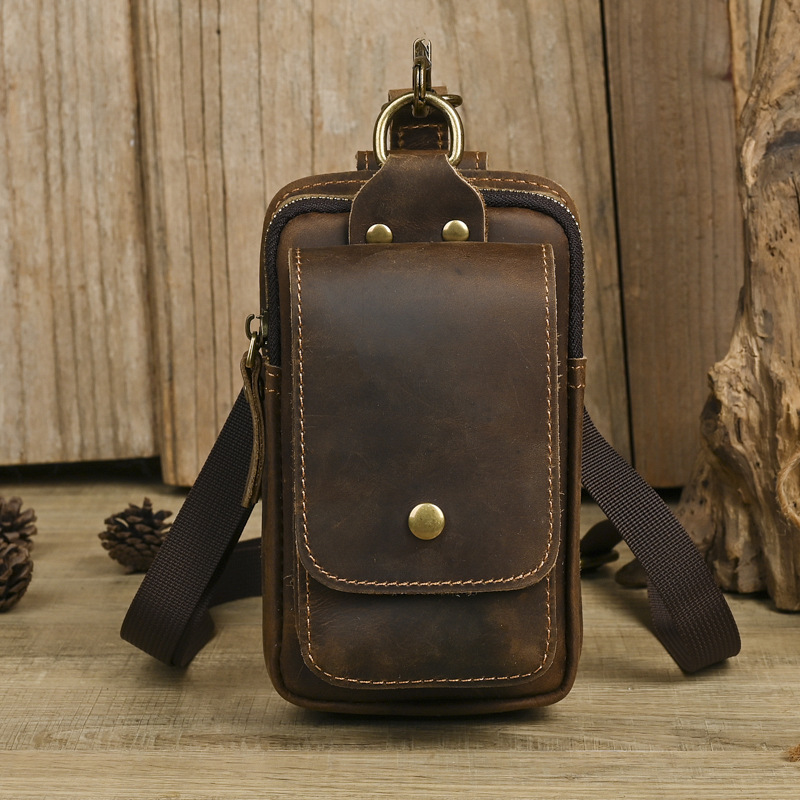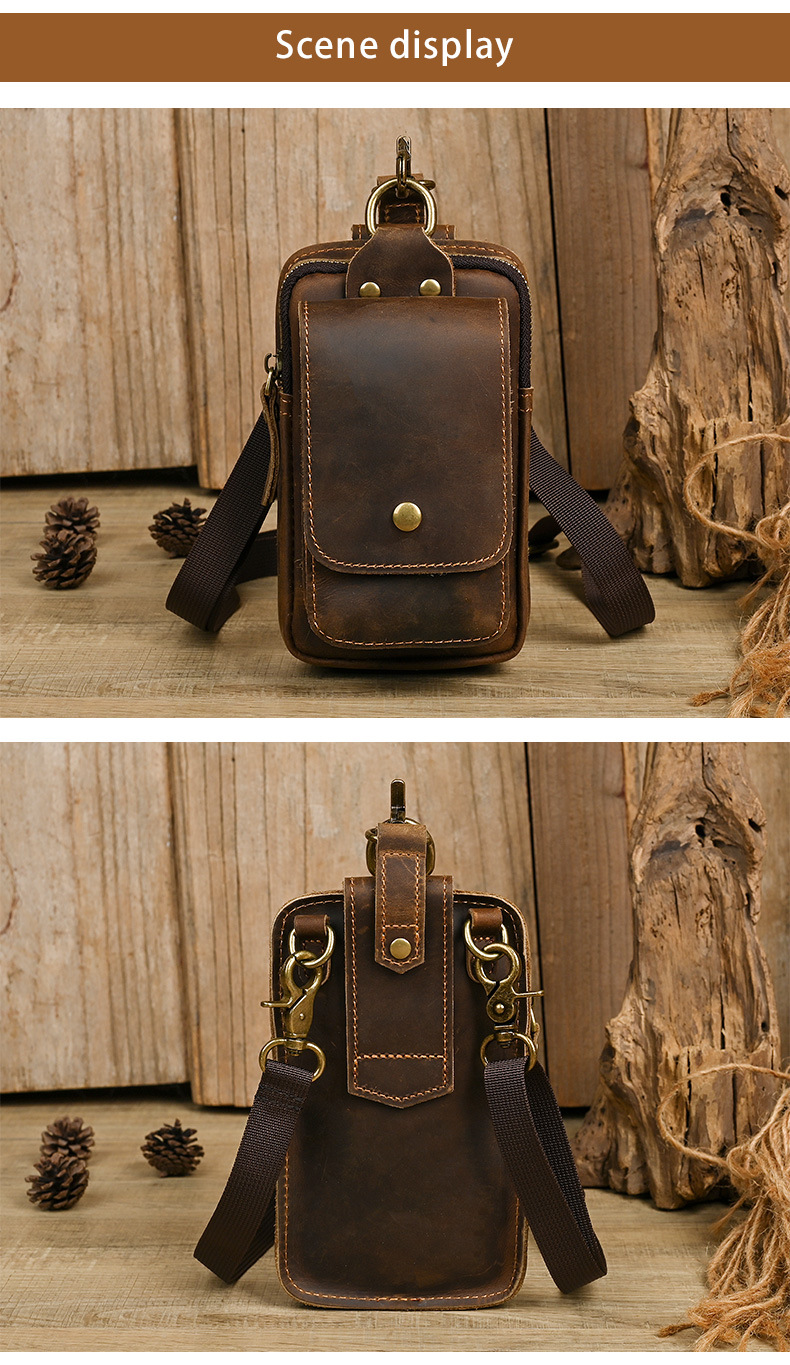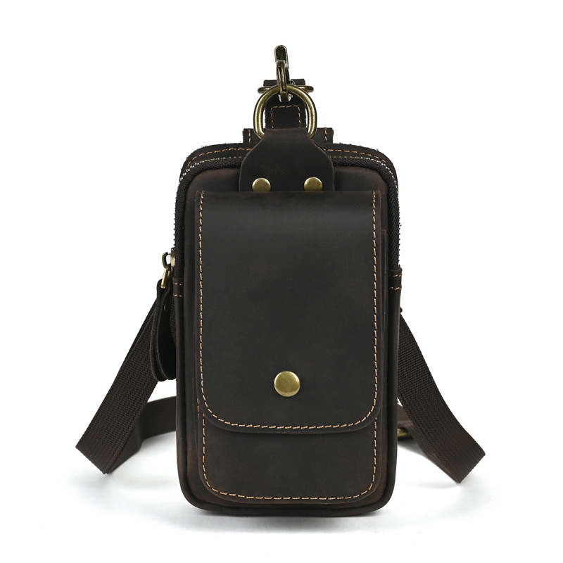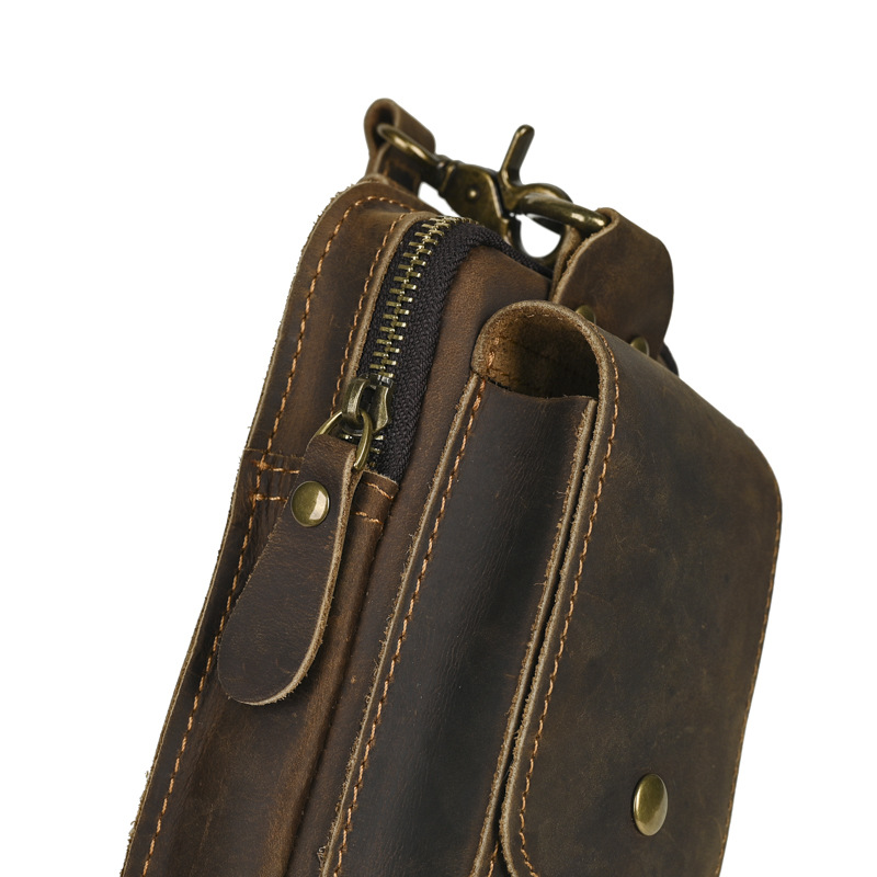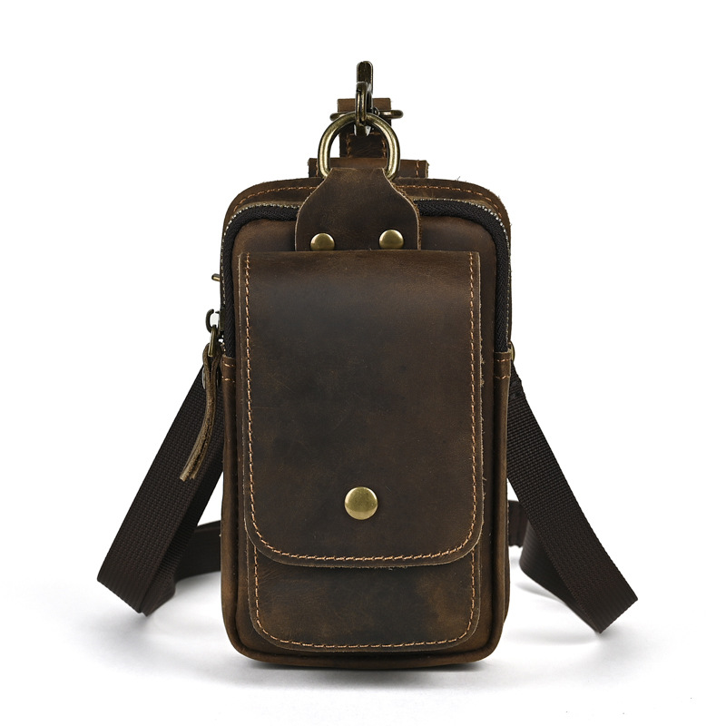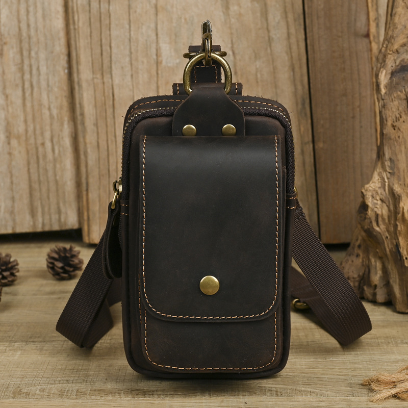 국경 간 정품 가죽 남성 허리 가방 상단 레이어 Cowhide 야외 배낭 미친 말 가죽 벨트 휴대 전화 가방