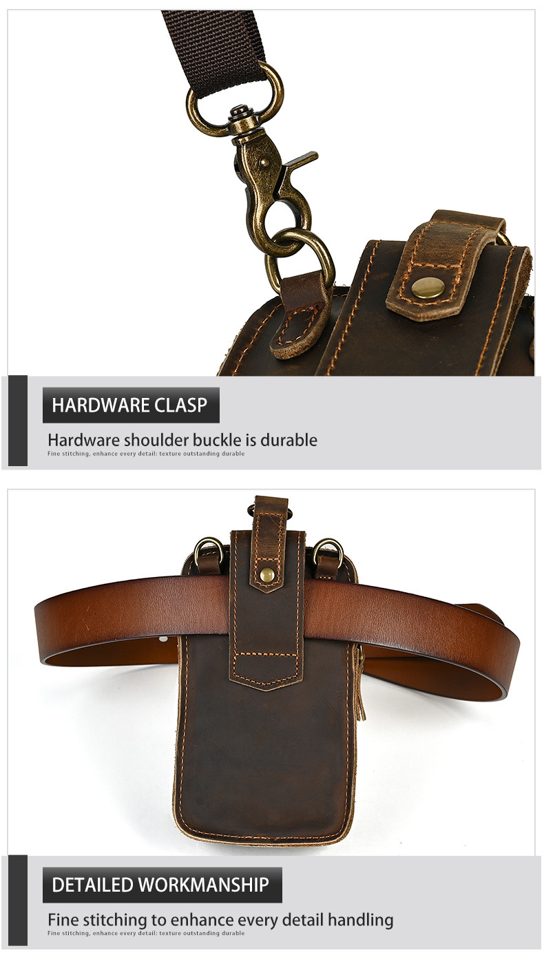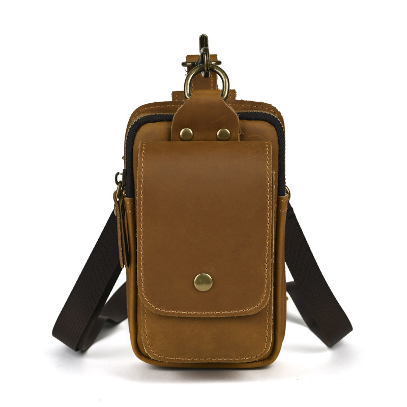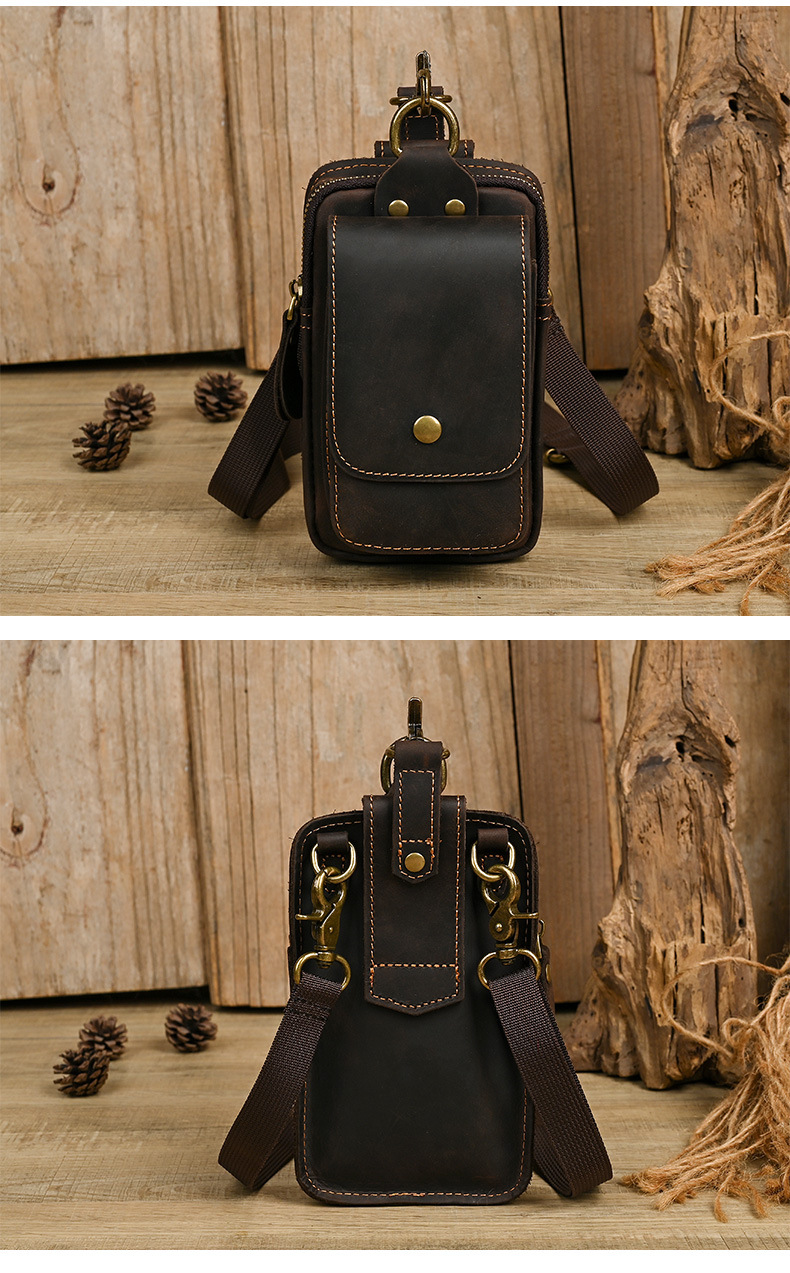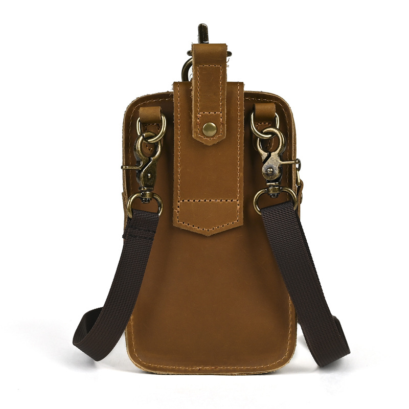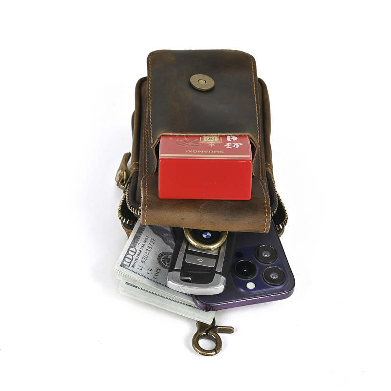 국경 간 정품 가죽 남성 허리 가방 상단 레이어 Cowhide 야외 배낭 미친 말 가죽 벨트 휴대 전화 가방